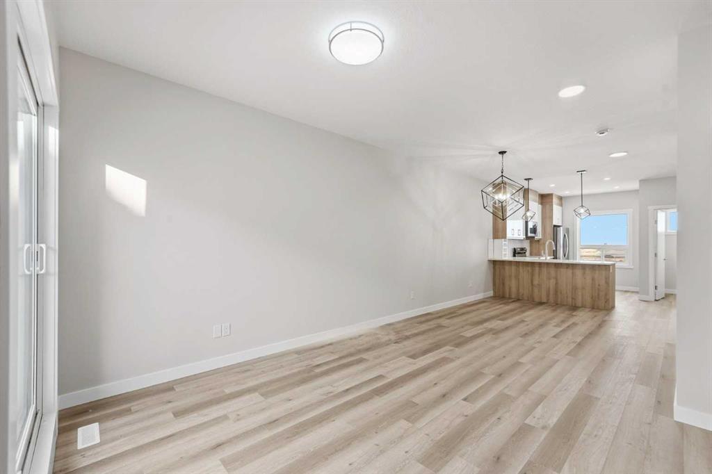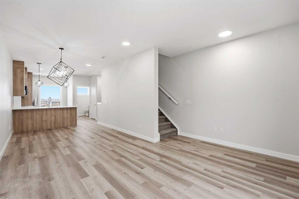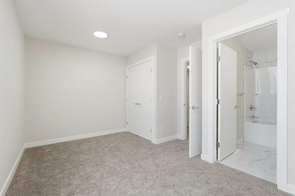 A rare combination of privacy, natural light, and functional design defines this contemporary 3-storey townhouse offering 3 spacious bedrooms, each with its own private ensuite—ideal for families, professionals, or multi-generational living. The entry level welcomes you with a practical foyer and a flexible bedroom that works perfectly as a guest suite, home office, or private retreat. The main floor is bright and inviting, featuring large windows, an open-concept layout, and a modern kitchen equipped with stainless steel appliances, sleek lighting, and a functional breakfast bar—perfect for entertaining or everyday living. A convenient powder room and a cozy balcony complete this level. Upstairs, you’ll find two generous primary bedrooms, both with private ensuites. One suite offers a walk-in closet and dual vanity for added comfort. A stacked laundry closet completes the top floor. Additional highlights include a single attached garage, low condo fees, ample visitor parking, and future nearby green space. With quick access to Stoney Trail, commuting and daily errands are seamless. Modern comfort, flexible living, and a convenient location—this move-in-ready home checks all the boxes.