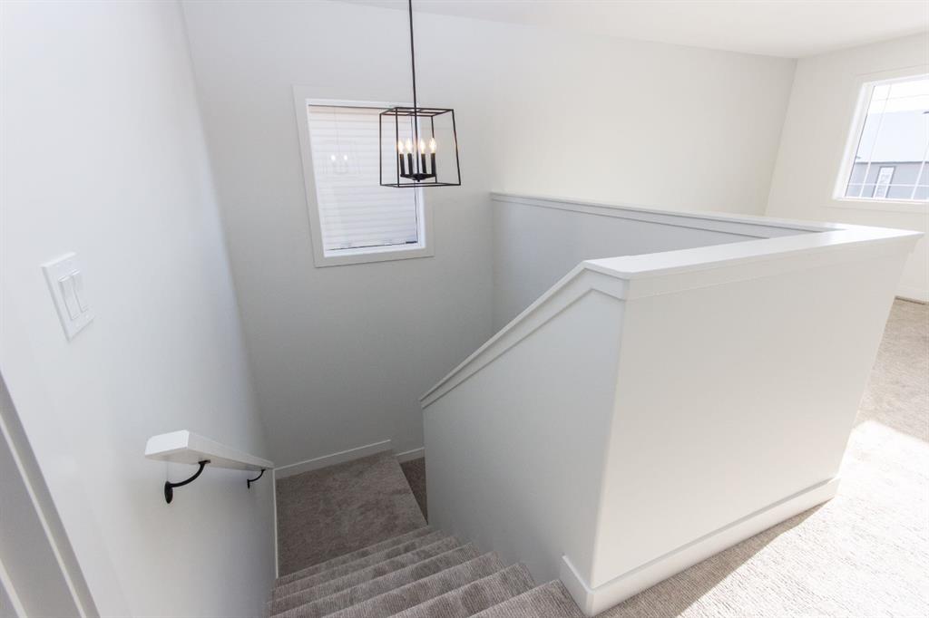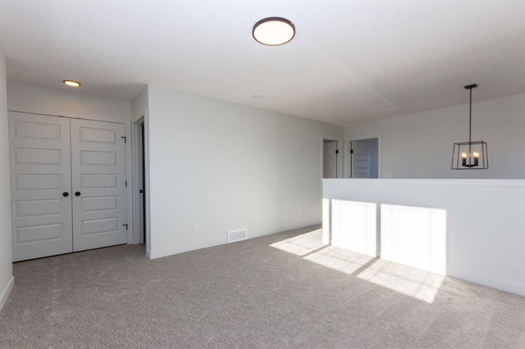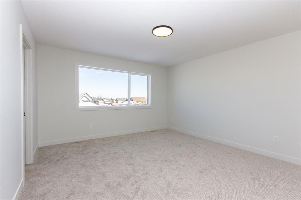 Only steps from a huge park and playground reserve, and within walking distance to the high school, this brand new Laebon built home in beautiful Meadowlark Estates will be ready for possession in mid April! Designed with family in mind, this spacious 1897 sq ft plan offers a wide open living space with vinyl plank flooring, large windows, and modern finishes throughout. A nicely appointed kitchen offers raised cabinetry, stainless steel appliances, quartz countertops, a large island with an eating bar, and a walk in pantry. The living area is bright and spacious, and the adjacent dining area offers access to the back deck through large sliding patio doors. Upstairs you'll find a spacious bonus room, two nicely sized kids rooms, a shared 4 pce bathroom, and conveniently located laundry. The large primary suite offers a 4 pce ensuite with a large soaker tub, walk in shower, private water closet, and a spacious walk in closet. The attached garage is insulated, drywalled, and taped. If you need more space, the builder can complete the basement development for you, and allowances can also be provided for a washer and dryer to make this a completely move in ready package. Front sod and rear topsoil to grade are completed. 1 year builder warranty and 10 year Alberta New Home Warranty are included. Taxes have yet to be assessed. This home is currently under construction and has an estimated completion date of mid April 2026. Photos and renderings are examples of a previous home built with the same floor plan, finishes and colours will not be identical to photos.