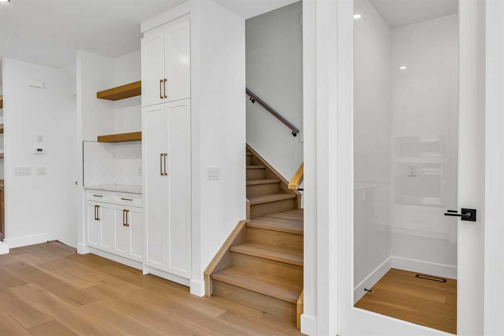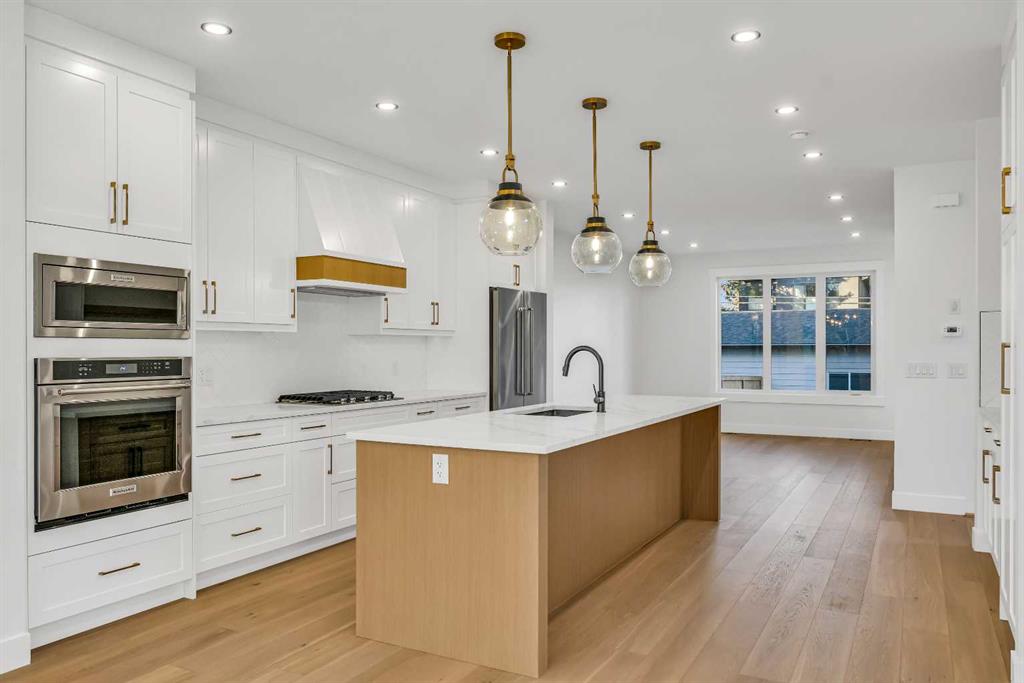***OPEN HOUSE FRIDAY NOV 7th 4:30-8:00PM*** Located on a quiet, tree-lined street in Mount Pleasant, this brand-new home combines sophisticated craftsmanship with a functional family-friendly layout. The modern HARDIE BOARD exterior is paired with a SOUTH-FACING FRONT PATIO encouraging peaceful morning coffees. Step inside to a bright front foyer with CUSTOM MILLWORK BUILT-INS leading to a formal beautiful dining room accented by a WOOD FEATURE WALL that sets the tone for the home’s elegant design. The GOURMET KITCHEN is a chef’s dream with a galley-style layout that encourages culinary creativity. High-end KITCHENAID APPLIANCES include a GAS COOKTOP and BUILT-IN WALL OVEN and MICROWAVE, complemented by STONE COUNTERS, UNDER-CABINET LIGHTING, a GARBAGE PULLOUT, and an OVERSIZED CRUSHED GRANITE SINK. A walk-through area off the kitchen offers both a WALL PANTRY with APPLIANCE COUNTER and a separate ENCLOSED ROOM that can serve as a PANTRY or MAIN FLOOR OFFICE. The open-concept living room is warm and welcoming with CUSTOM BUILT-IN SHELVING and a GAS FIREPLACE overlooking the BACKYARD—perfect for quiet evenings or gatherings with friends. A MUDROOM with abundant STORAGE and a tucked-away POWDER ROOM with a WATERFALL-EDGE VANITY complete the main level. A GLASS-RAILED staircase with HARDWOOD TREADS leads to the UPPER LEVEL where you’ll find HARDWOOD FLOORING throughout. A BONUS ROOM with a WOOD FEATURE WALL creates separation between the PRIMARY and SECONDARY BEDROOMS for enhanced privacy. The PRIMARY SUITE is a true retreat with a COFFERED CEILING, LARGE WALK-IN CLOSET, and a LUXURIOUS ENSUITE featuring a STEAM SHOWER, FREE-STANDING TUB, and DUAL VANITY. Two spacious additional bedrooms, a 4-piece main bath, and a convenient LAUNDRY ROOM complete this level. The FULLY DEVELOPED BASEMENT continues the home’s elevated design with a WET BAR and BEVERAGE CENTER for easy entertaining. The REC ROOM features ENTERTAINMENT BUILT-INS and ample space for relaxation or family movie nights. There’s a FOURTH BEDROOM with LARGE WALK-IN CLOSET, a 4-PIECE BATHROOM, and an ENCLOSED FLEX ROOM ideal for a FIFTH BEDROOM, GYM, or HOME OFFICE. Enjoy the PRIVATE BACK YARD with EXTENDED GREEN SPACE for kids and pets large patio area for barbeques and unwinding. Additional features include ROUGH-IN FOR AIR CONDITIONING, a DOUBLE DETACHED GARAGE with 8-FOOT DOOR, EV CHARGER READY OUTLET, and a PAVED BACK LANE. This home offers an exceptional blend of modern luxury and timeless craftsmanship—all in a walkable inner-city location close to CONFEDERATION PARK, SAIT, and the restaurants and cafés along 19 Street NW. A refined residence for those who value quality, design, and comfort in equal measure.