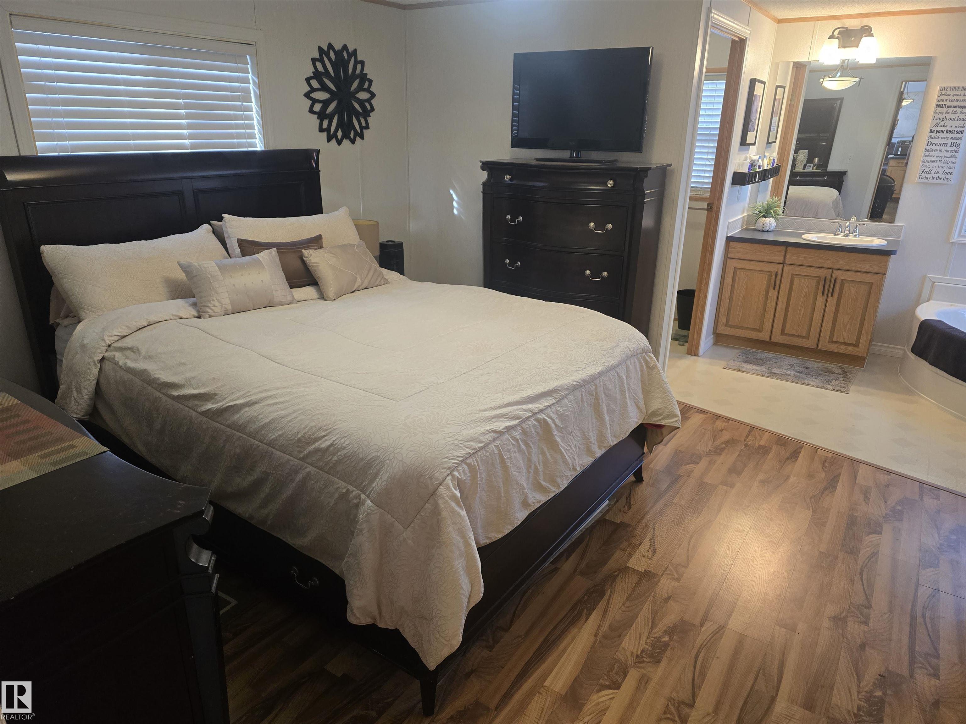 A beautifully maintained home, 1216 sq ft Home backing onto a green space. This home shows pride of ownership, sitting on a large lot with new garden shed, large deck with gazebo, fire pit, fully fenced. The home offers 3 bedrooms, a large living room and a primary suite with open ensuite with corner tub. The community offer many parks, restaurant, convenience store with gas station. Ideally located in Edmonton's North East quadrant.