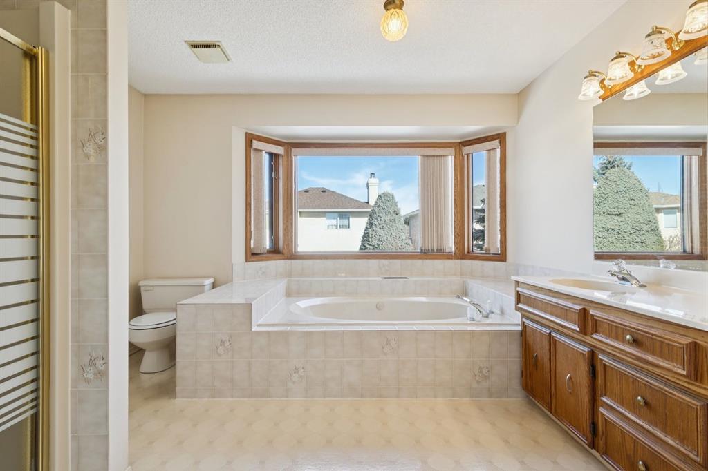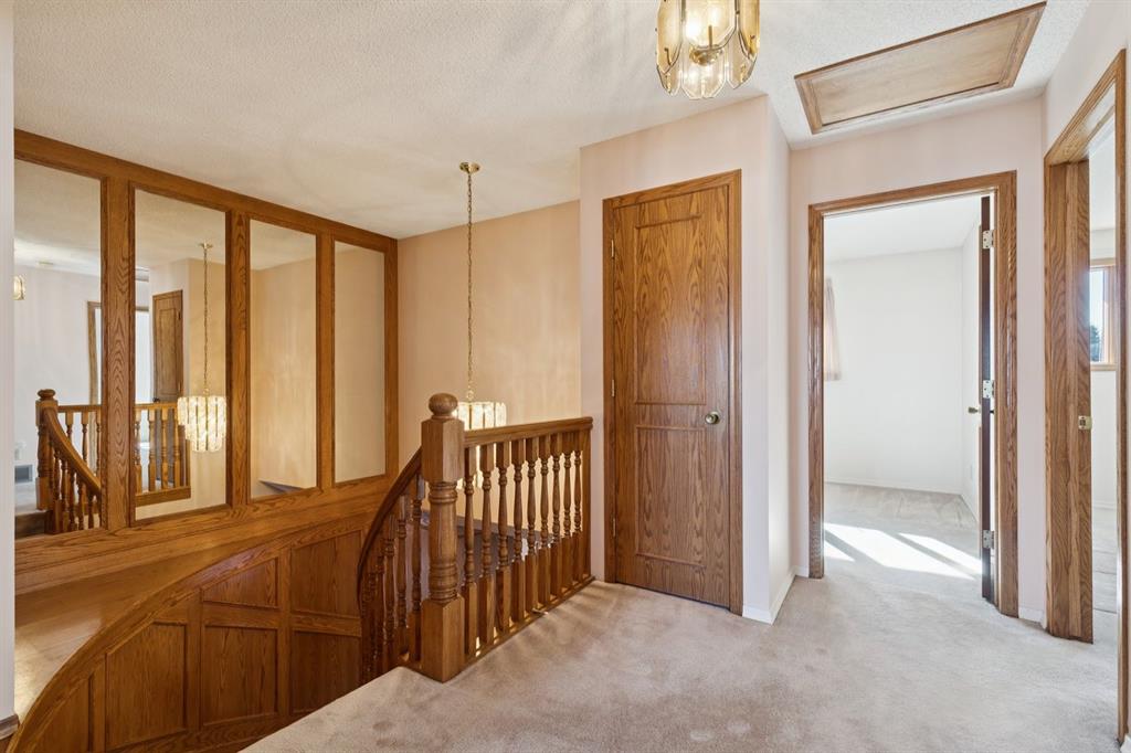 In close proximity to Fish Creek Park and the Canyon Meadows Golf & Country Club, this oversized family home is ready for its next chapter! Woodlands is an incredible community to grow roots and raise a family. With Costco and all of the other shops at Buffalo Run, you never have to travel far to get what you need and there are schools and daycares right in the neighbourhood. Lovingly cared for by the original owner for nearly 40 years, this spacious home has great bones for your renovation ideas! With over 3,200 total square feet in this home, there is space to spread out. The main floor has wow-factor when you first enter, featuring custom tile flooring and a spiral staircase with solid wood bannister & panelling. The hardwood flooring is in immaculate condition in this home! There is ample space for any kitchen layout - bring your ideas! - and the sliding doors to the backyard make entertaining and gardening a breeze. Wood-burning fireplace in the rear family room with custom built-ins plus a powder room nicely tucked away on this level. Upstairs there is even more wow-factor when you enter the double doors to the most enormous primary suite! Bring all of your furniture and all of your clothes - there is room for it all :) Two additional bedrooms with oversized main bathroom. The basement is fully finished with a vintage bar, large rec room, storage/laundry, 3-piece bath and a storage room/den that could be converted to a 4th bedroom. New shingles in 2016 and new furnaces in Dec 2024 along with newer fridge, washer & dryer. Fun feature - the attached garage has a vented wood smoker that the family used for smoked meats over the years! Come and create lasting family memories in this immaculate home in desirable Woodlands!