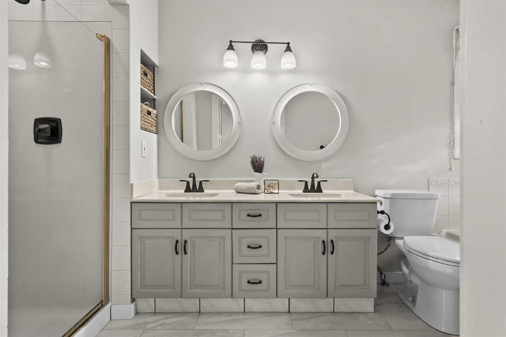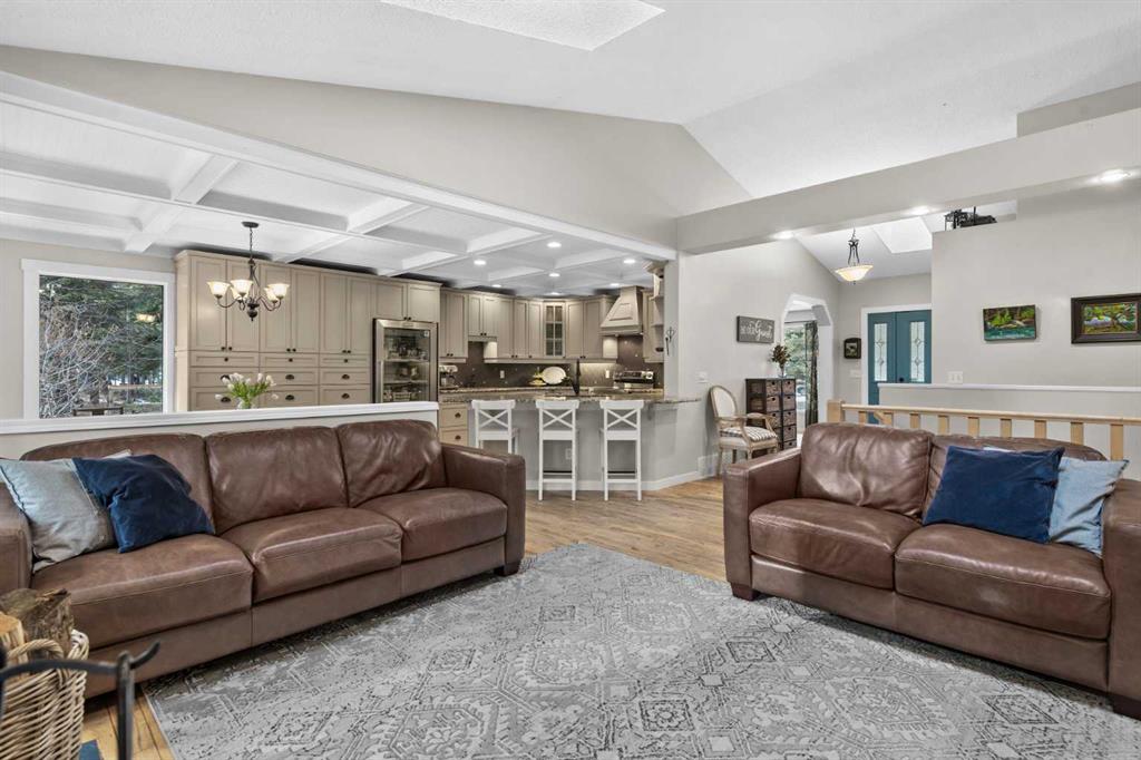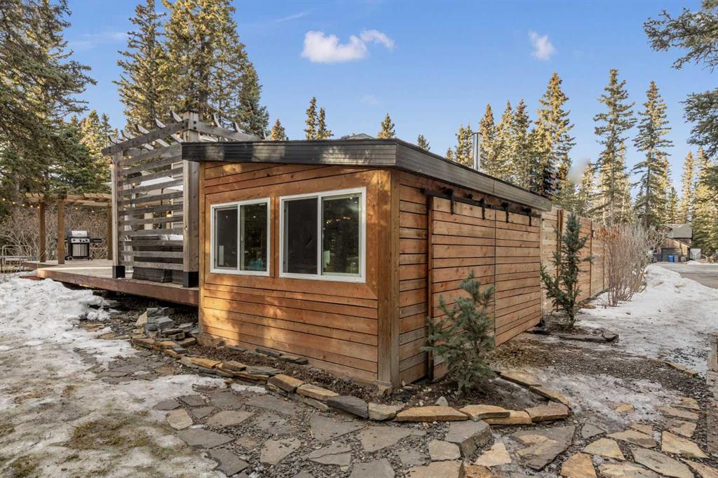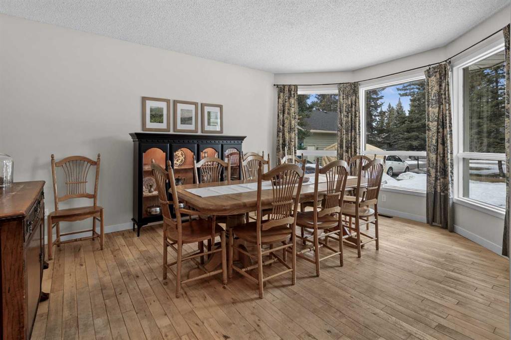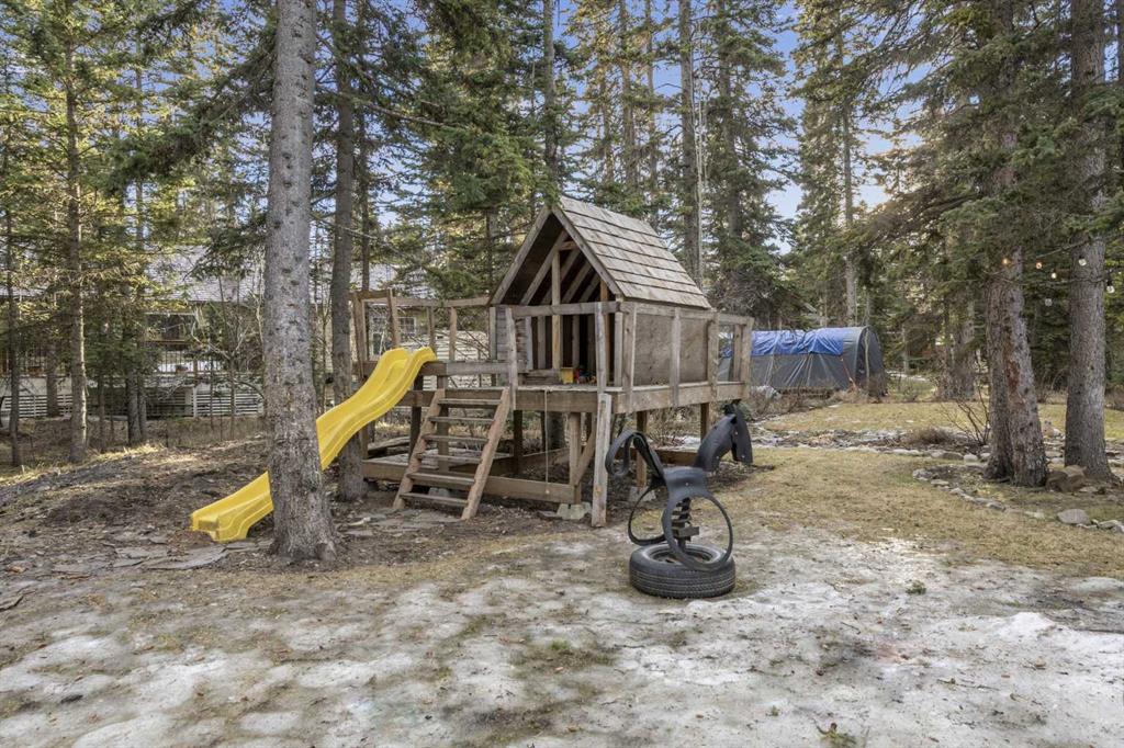 Tucked among mature trees on a picturesque .37 acre lot in Redwood Meadows, this spacious bungalow offers a relaxed, welcoming feel where timeless design meets everyday comfort. Thoughtfully laid out, the home showcases warm hardwood floors, an updated kitchen with granite counters and exceptional storage, and effortless entertaining in the expansive dining room. Inviting living spaces are anchored by a wood-burning fireplace in the main floor living room and cozy wood stove on the lower level—a perfect way to wind down in the evening. The primary suite is a true retreat, complete with a walk-in closet, spa-like 6-piece ensuite, and private access to the sunny, South facing rear deck. The fully developed lower level provides a generous rec room, oversized bedrooms, and plenty of storage for busy households. Outdoors, the property shines with a front porch, massive back deck, flagstone paths, perennial gardens, firepit, and space to enjoy both lawn and trees, all complimented by a double attached garage, garden shed, and dog run. Life in Redwood Meadows extends well beyond your front door, offering a vibrant, close-knit community with year-round recreation & activities, riverside walking trails along the Elbow River, Redwood Meadows Golf & Country Club, skating rink, playgrounds, tennis courts, playing fields and community centre (Redwood House) —an exceptional setting for those who value nature, connection, and an active lifestyle.
