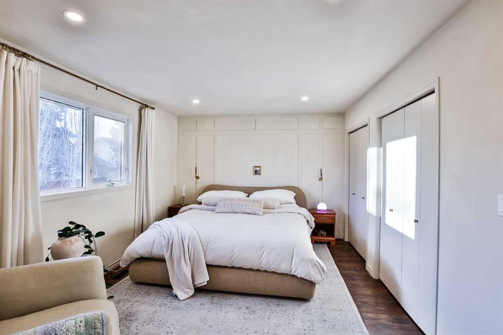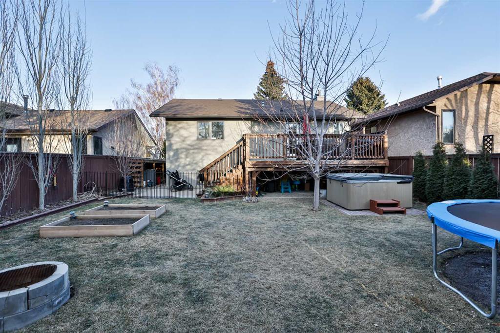The cutest, most charming house on the block is officially for sale. You'll love this home from the moment you drive up. The brick detail on the front and the beautiful landscaping with sitting area sets the tone for the pile of thoughtful updates throughout this home. Through the front door you are greeted with the coziest living room with vaulted wood detail ceiling. The wood burning stove in the corner with stone surround elevates the cozy factor in this space even more. Up a few stairs you'll find the open concept dining room and kitchen, with fresh white paint throughout. There's plenty of cupboards, and nice upgrades to the cabinets like the glass inserts to display your favourite things. The primary bedroom is a fantastic size and easily fits a king size bed. You'll love the elevated wood detail wall treatment, and two great size closets as well! There is a pocket door that leads to the well maintained four piece bathroom. Another bedroom and a broom closet round off this floor. The basement features large windows throughout the large family room with nice wood bar. There is another darling bedroom, laundry space, a 3 piece bathroom, and more storage space than you could ever need! This family even uses it as the kids playroom which is just perfect. The single attached garage is heated, and you will absolutely LOVE the yard. Mature trees line all 3 sides of the lot, giving you great privacy. There is a fantastic, large, updated deck that even has a slide attached! Garden beds, a hot tub, and lovely detailed landscaping make this a space you'll love to spend time in. Located in the highly desirable established neighbourhood of Ridgewood, you'll absolutely love living here with plenty of parks, walking paths, and playgrounds close by. You're just a couple minutes drive to groceries, restaurants, pharmacies, schools, and so much more. Give your REALTOR® a call and come see this charmer before it's gone!