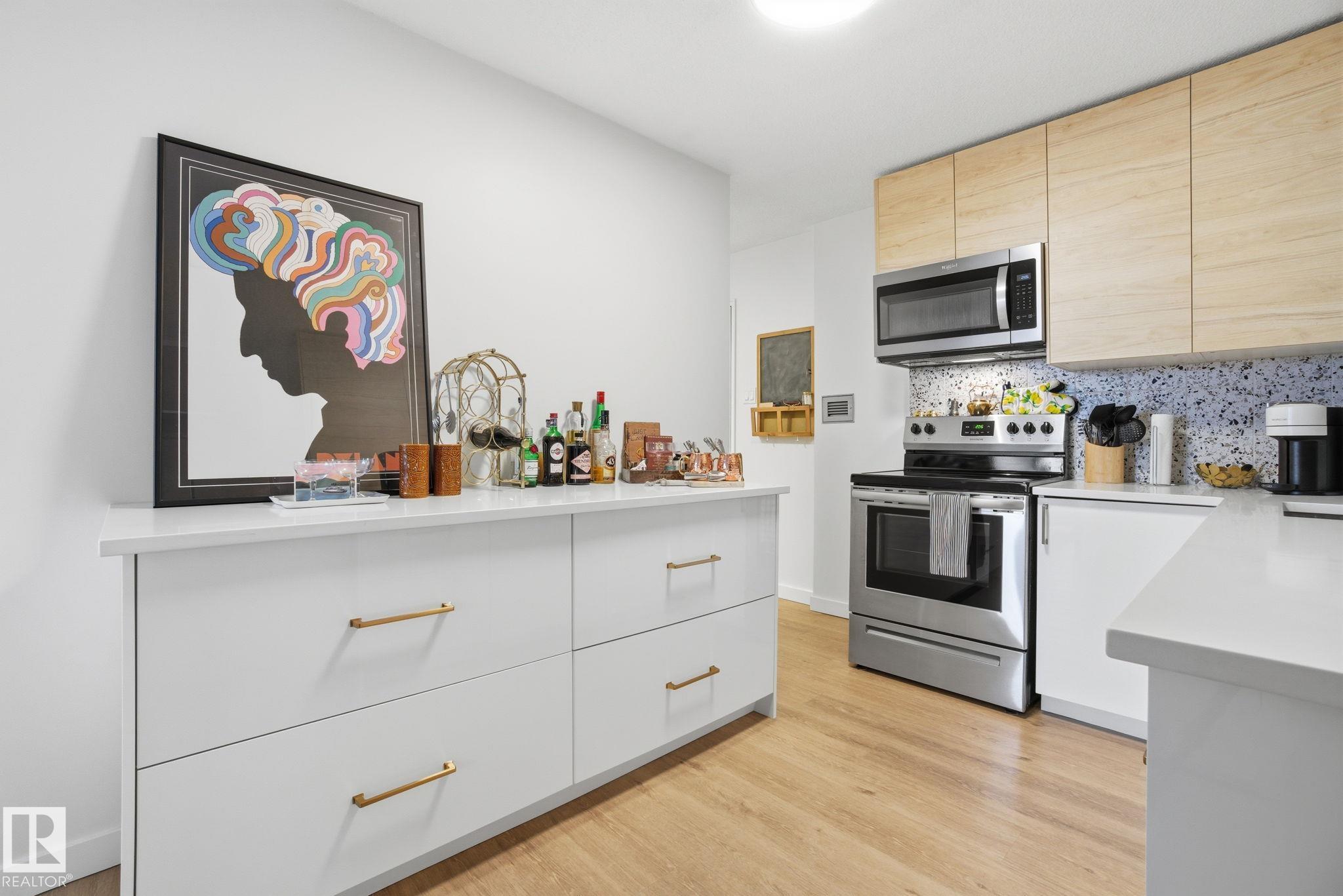 Experience the best of Edmonton living in this stunning, fully renovated condo located in the heart of Wîhkwêntôwin. Perched on the 7th floor, the unit is flooded with natural light, creating an airy and welcoming atmosphere the moment you step inside. The interior has been thoughtfully updated for modern life, featuring a new kitchen equipped with sleek quartz countertops and new appliances. You can also enjoy your morning coffee or evening sunset on one of two balconies. Beyond the walls of your new home, you are perfectly positioned to enjoy an active and convenient lifestyle. You are just steps away from the River Valley, offering immediate access to Edmonton’s premier hiking and biking trails and also walking distance to the downtown core, surrounded by the city’s best restaurants, cafes, and shops. Whether you are looking for a vibrant community or a peaceful escape near nature, this move-in-ready home offers it all. BONUS: the building is pet friendly and ALL utilities are included in the condo fee
