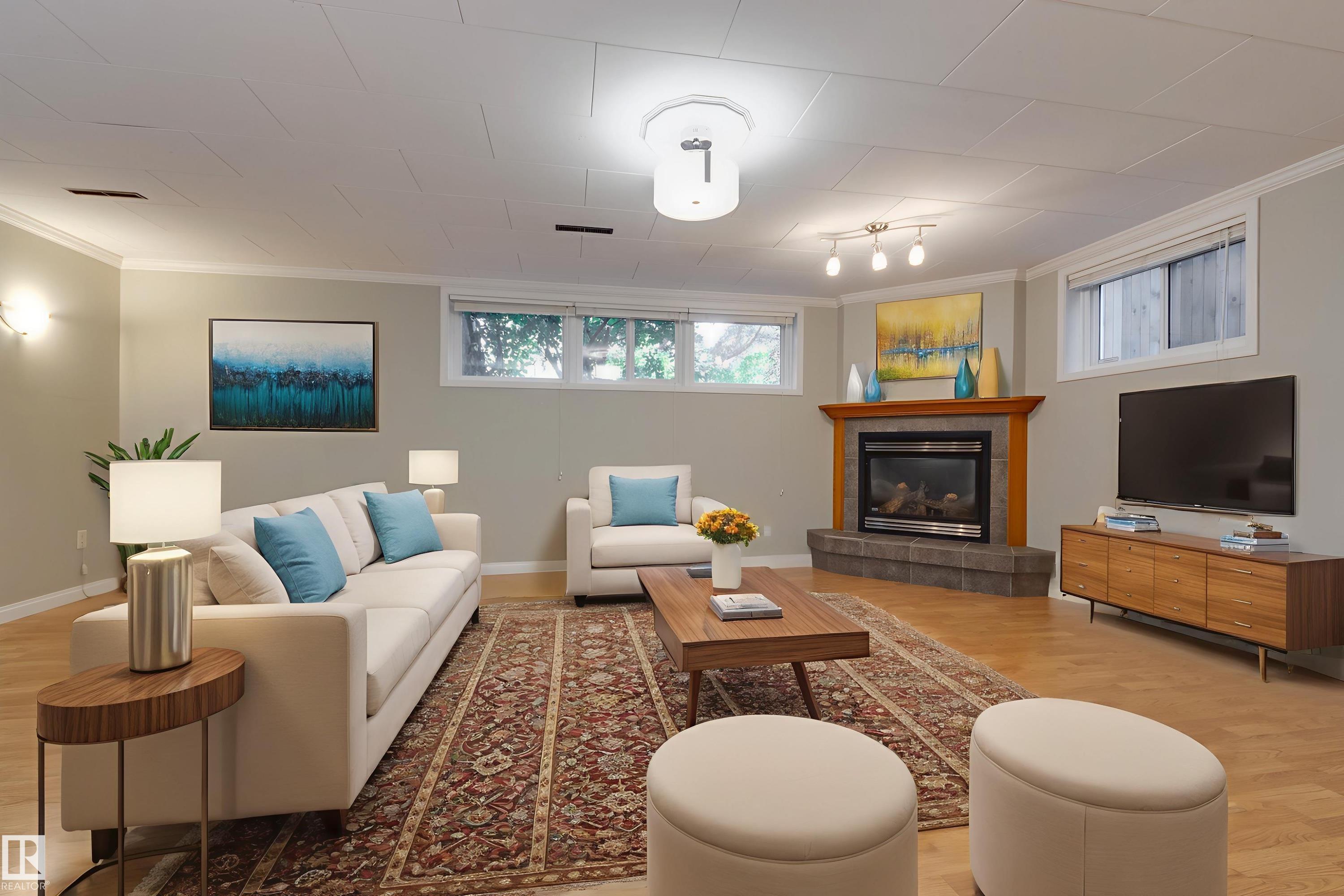 Completely renovated home with impeccable finishes! The open concept living room, dining room and kitchen is well designed and is suited for large or small gatherings. Kitchen reno includes soft close cabinets, backsplash, stainless appliances, under cabinet lighting, quartz countertops, recessed lighting, composite tile flooring. 3 generous bedrooms and a 5 piece bathroom complete this level. Downstairs you’ll find a 4th bedroom, huge rec room, utility, storage and laundry plus an elegant 4 piece bathroom. Improvements include triple pane windows, baseboards, interior doors, trim, sculptured ceilings, fence, laminate on the lower, gas fireplace, furnace & hwt., 100 amp service & panel, hot tub rough in. The backyard orchard includes raspberries, Haskap and an apple tree framing a cute stone patio. Perennial beds throughout front and backyard. Sewer line replaced 2008. Single garage with EV 30 amp rough in, newer garage door & opener, dble. concrete garage pad. Walkable to LRT station & shopping.