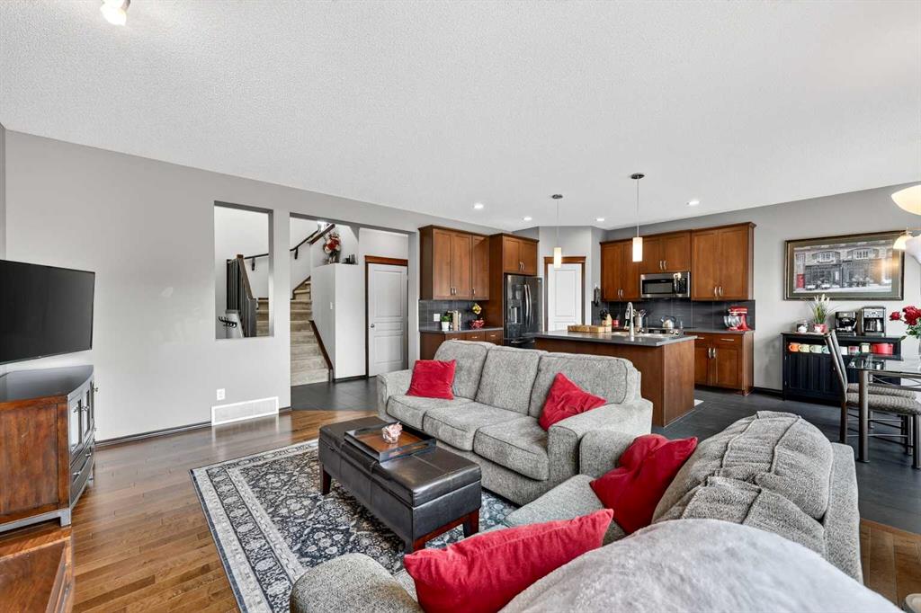 *Open House Sunday Apr 19, 1:30-3:30pm* Welcome to this warm and welcoming 2-storey family home nestled in the desirable lake community of Auburn Bay. This beautifully maintained residence offers 3 spacious bedrooms, 2 full bathrooms, a convenient half bath, upper level bonus room, along with a double attached garage. With energy efficiency in mind, it features solar panels that generate over 7,500 kWh of electricity each year. Also, triple-pane windows with UV protection for superior insulation against both heat and sound (installed 2024 w/ 25 year warranty), black-out shades on all west-facing windows & central air conditioning. This home even provides a comprehensive 8-camera Lorex self-monitoring home security system. As you enter through the grand two-storey high foyer, you’re greeted by soaring 9 foot ceilings that flow throughout the main level. The open concept layout seamlessly connects the living, dining, and kitchen, all brightened by large windows that fill the home with natural light. Ceramic tile flooring runs throughout the main, with a rich hardwood accent in the living area. The heart of the home is the spacious kitchen, complete with abundant cabinetry, a stylish tile backsplash, walk-in pantry, and premium dark stainless steel Frigidaire appliances installed in 2024. A large central island provides extra workspace, a stainless steel sink, plenty of storage, breakfast bar, and elegant pendant lighting. The adjacent living area features a cozy gas fireplace, while the dining space opens directly onto the spacious deck that’s ideal for summer BBQs or watching the kids play in the yard. The deep backyard is nicely landscaped with established trees and bushes, garden beds, fire pit, and a storage shed. A 2-piece powder room and convenient main floor laundry room complete this level. Upstairs, the primary bedroom is a peaceful retreat with a large window, a luxurious 5-piece ensuite bathroom boasting double sinks, a deep soaker tub, a walk-in glass & tile shower, beautiful tile flooring, and an expansive walk-in closet. Two additional good-sized bedrooms share a 4-piece bathroom with tile flooring, a tub/shower with tile surround, and built-in shelving for linens and storage. You’ll also love the sunny bonus room with large west facing windows, flooded with natural light and perfect for a home office, play area, or cozy media space. The unfinished basement offers a blank canvas with roughed-in bathroom plumbing, ready for your personal touch. Located in central Auburn Bay, this home sits peacefully away from highway noise while still benefiting from bus routes and regular snowplowing. It’s a vibrant lake community centered around a stunning 43 acre freshwater lake - offering access to year round fun including swimming, kayaking, fishing, and winter ice skating. With a 5 minute walk to four different schools and numerous parks, plus quick access to the popular Dog Park and scenic Greenway trails, you’re also just a short drive from South Health Campus.