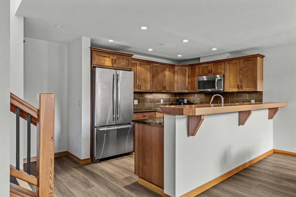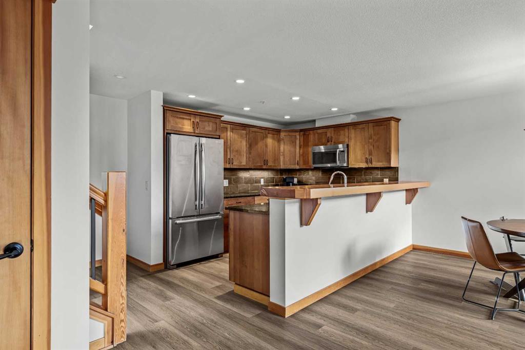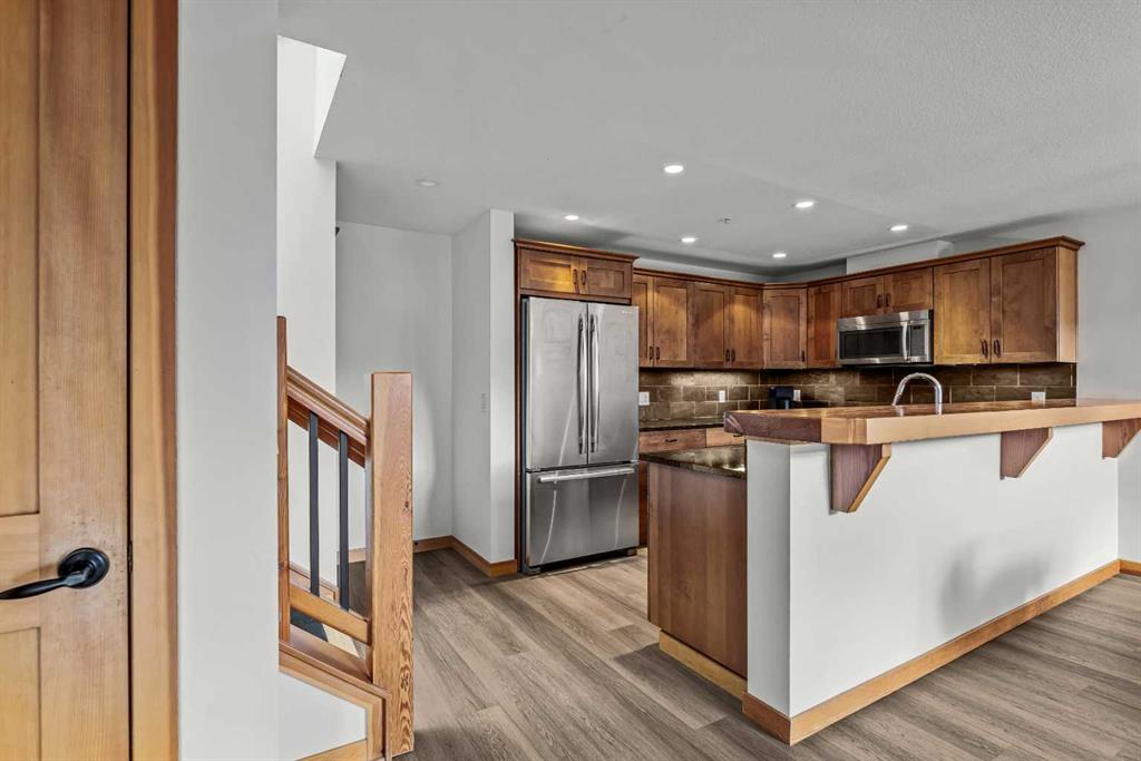 Welcome to an elevated mountain retreat perched on the top floor of Timberline Lodges. Crafted by Alpine Homes, this spacious 2-bedroom + loft, 2-bath residence offers 1,467 sq. ft. of refined living, recently refreshed with brand-new flooring throughout the main level and fresh, modern paint, making it truly move in ready. The open-concept main floor is anchored by a cozy fireplace for the winter months and Air-Conditioning to keep it cool in summer, the unit flows seamlessly through the kitchen and dining area, where expansive windows frame sweeping, exceptional mountain views. A comfortable main-level bedroom and full bath provide flexibility for guests or everyday living. Just a few steps up, the private primary suite features its own ensuite bath and walk in wardrobe, complemented by a versatile loft, ideal for a home office, media room, or additional living space. Multiple decks extend the living outdoors, offering the perfect vantage point to relax and take in the surrounding alpine scenery. Additional highlights include in-suite laundry, generous storage locker, TWO large underground parking stalls, and exclusive access to the Timberline owners’ clubhouse, featuring a swimming pool, hot tub, steam room, fitness center, and theatre. Ideally located close to world-class hiking and outdoor recreation, this home delivers exceptional lifestyle value in a premier mountain setting.