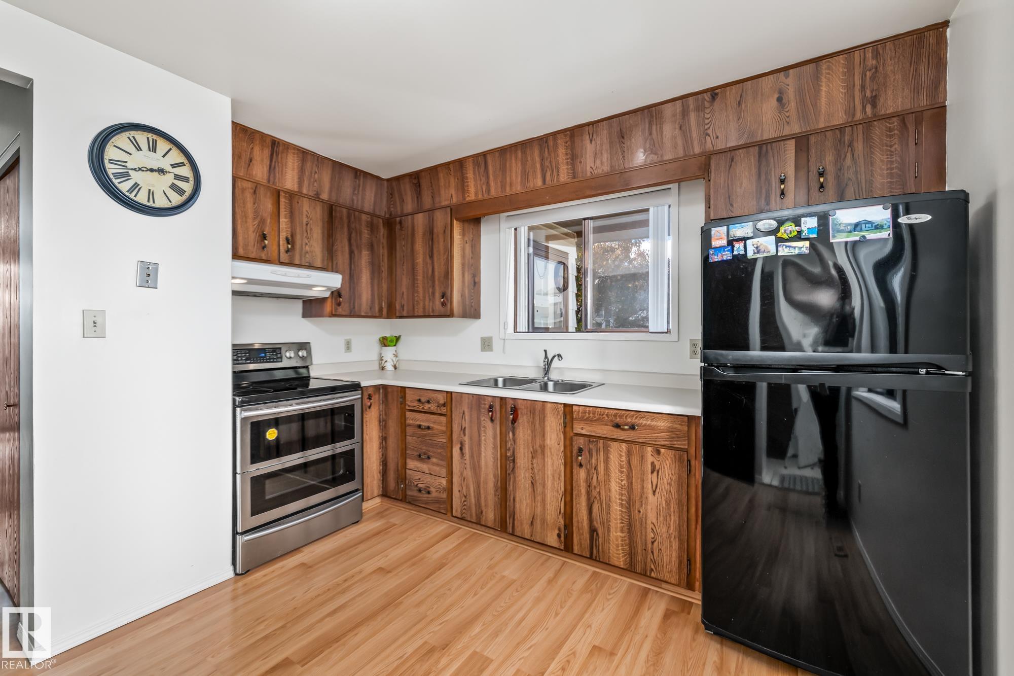 This extremely clean & well-kept 3 bed, 2 full bath home boasts pride of ownership! The main floor features a bright kitchen with a casual dining area, plus a full dining space perfect for hosting. Upstairs, you’ll find a larger primary room with an additional 2 bedrooms and a 4-piece bath. The lower level provides a cozy family room with large windows and a stunning brick-faced wood-burning fireplace, a spacious office/study area and another 3-piece bath. In the basement, you'll find the laundry/utility area, and two large storage closets. Outside, you’ll find a spacious patio area and a beautifully landscaped backyard, perfect for kids or pets! Upgrades include: roof (2015), redone concrete walks, patio and driveway. Close to schools, parks, West Edmonton Mall and with easy access to the Whitemud and Anthony Henday, this home combines comfort, convenience, and location. Lovingly maintained by its long term owner of 30+ years, this home is ready for its new family!