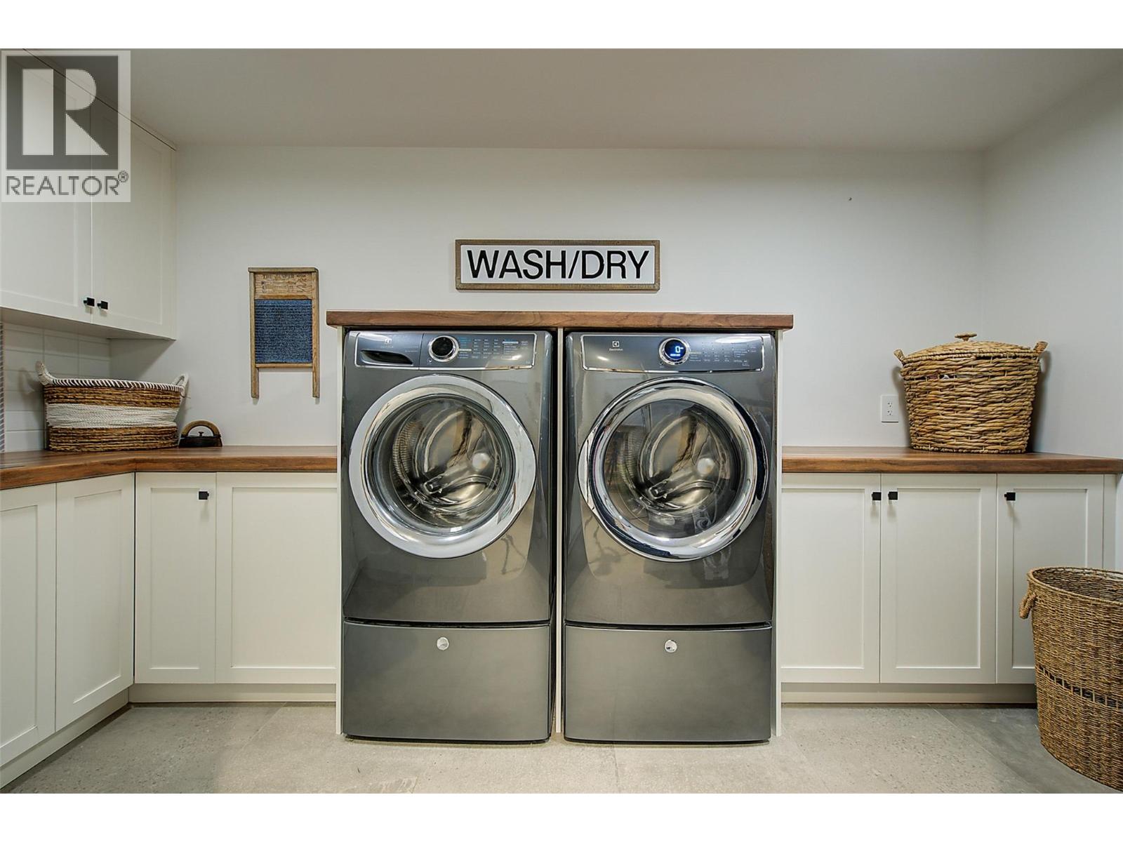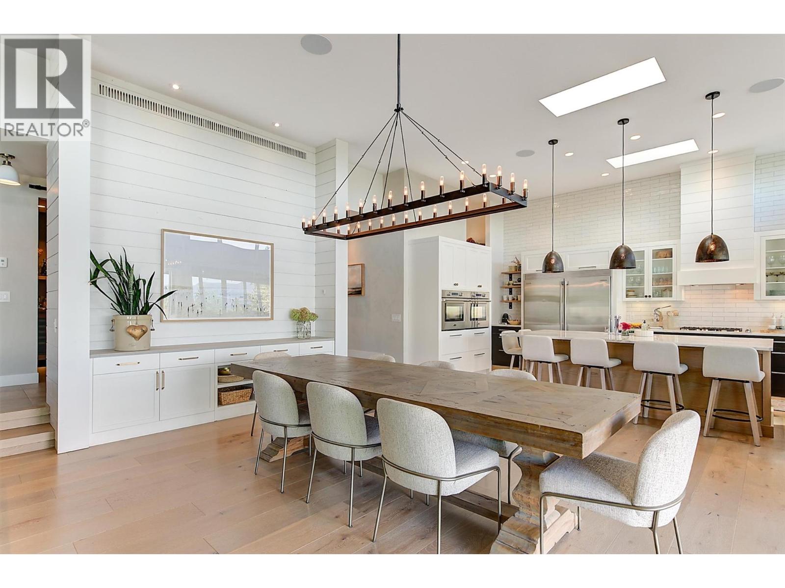 Perched along the beautiful Barnaby Bench just above the Lower Mission, this West Coast contemporary inspired residence is a true architectural statement. Designed & built by award-winning Thomson Dwellings, this home beautifully integrates into its natural surroundings, offering views of Okanagan Lake, city lights & surrounding mountains. Situated on a private 0.77ac estate, the setting strikes the perfect balance of sophistication & comfort. From the moment you arrive along the tree-lined driveway, this estate impresses w/natural stone, cedar accents and a custom carved front door that set the tone for the artistry within. Step inside to cathedral-height ceilings, walls of glass that invite the outdoors in & thoughtfully crafted living spaces. The floor plan offers 5 bdrms & 4 baths, including a main level primary retreat, guest bdrm and home office while the upper level offers 3 additional bdrms. Designed for everyday living & extraordinary entertaining, the home features a chef-inspired kitchen w/marble counters & 6 person island, a sunken Great Room w/12’ ceilings and a dramatic f/p wall and seamless transitions from indoors to out. Expansive terraces flow to the resort-style backyard, a private sanctuary with a custom pool, hot tub, gas fire tables, covered dining & lounge areas and a fully equipped cabana. Every element of this property speaks to quality and intention, blending gathering spaces & private retreats, this residence is more than a home-it’s a lifestyle.