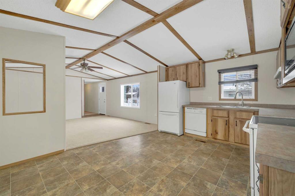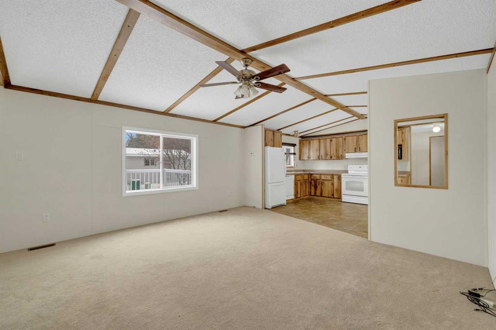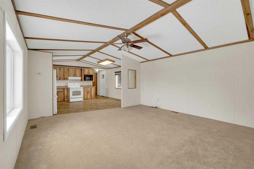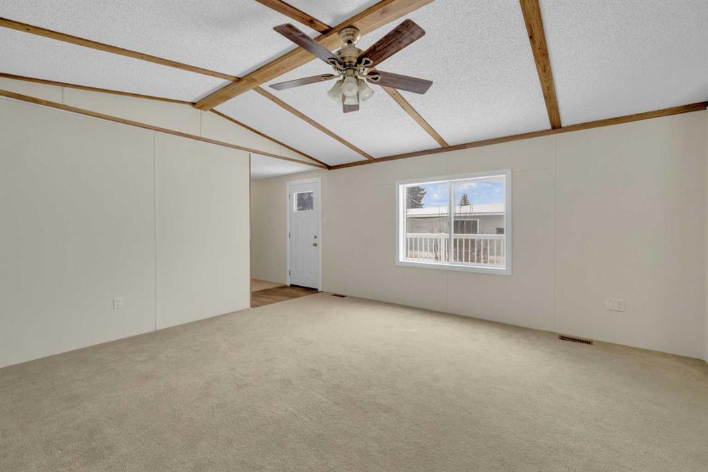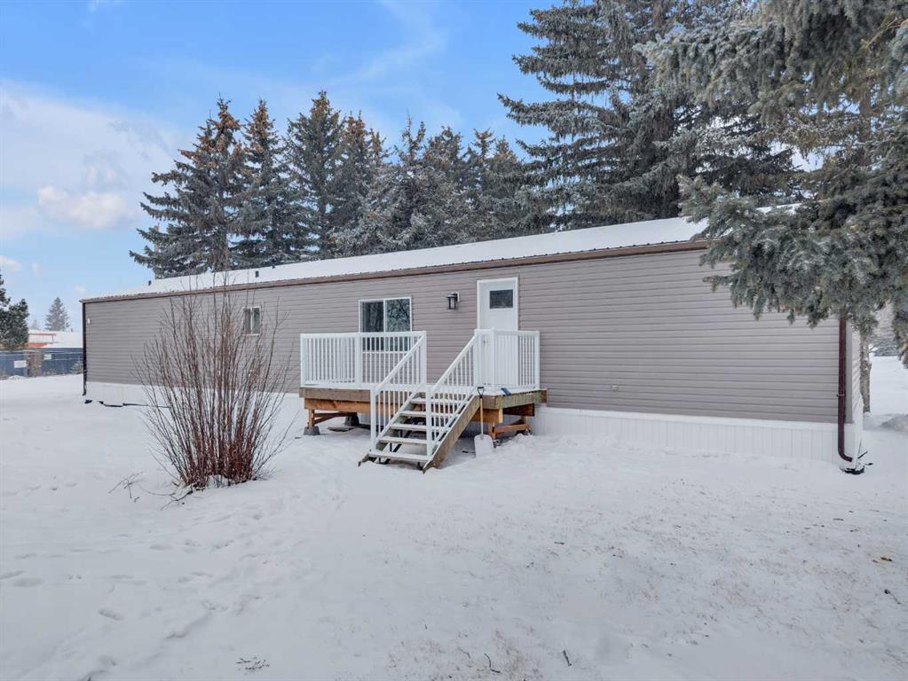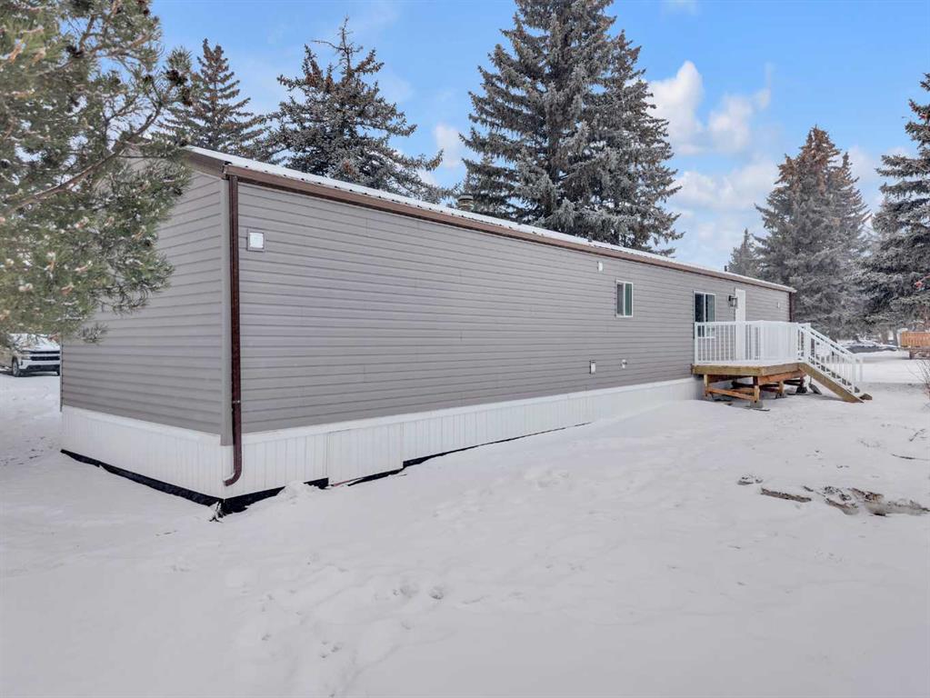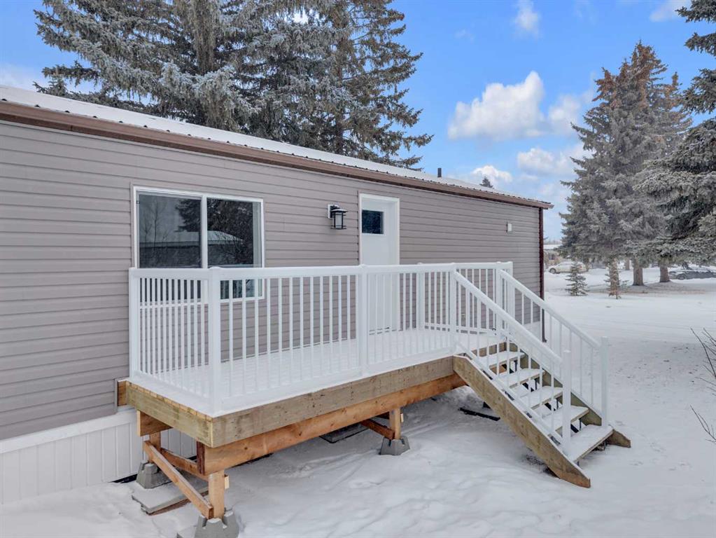 This refreshed 16x76 manufactured home offers 3 bedrooms and 2 full bathrooms, including a spacious primary suite complete with a private ensuite. Recent upgrades provide peace of mind, including NEW insulated skirting, NEW siding, NEW plumbing, NEW belly insulation, and fresh paint throughout. A durable metal roof adds to the worry-free ownership. Two new deck landings offer sturdy, convenient access, and the location is perfect based on the outside loop; end lot - providing added privacy with no neighbors behind and open parking alongside.