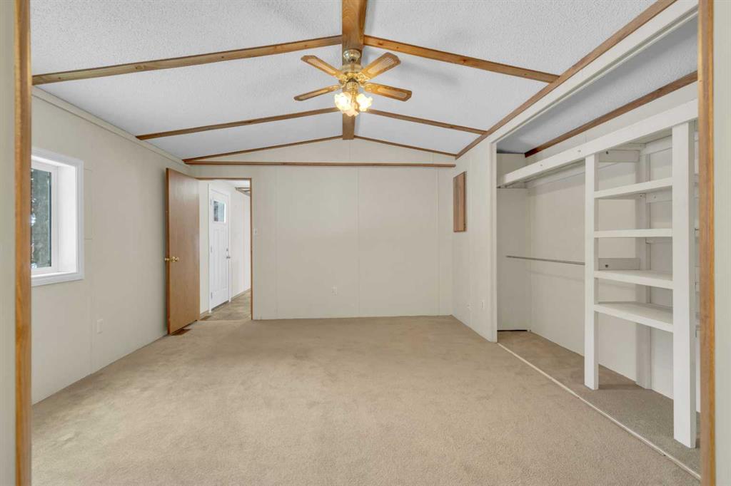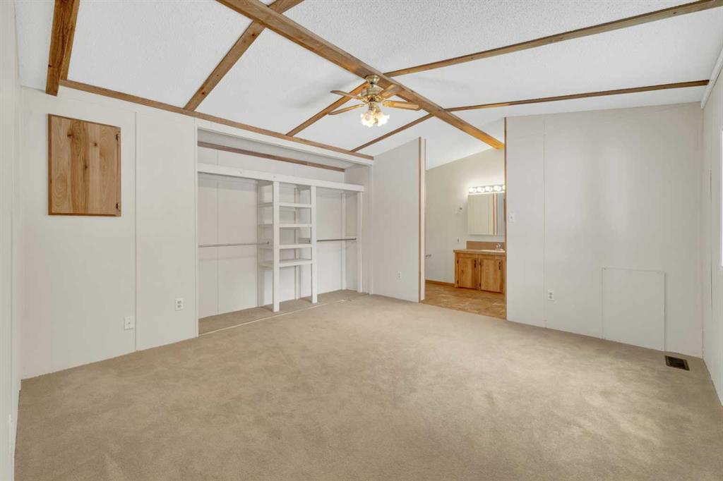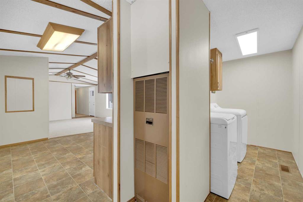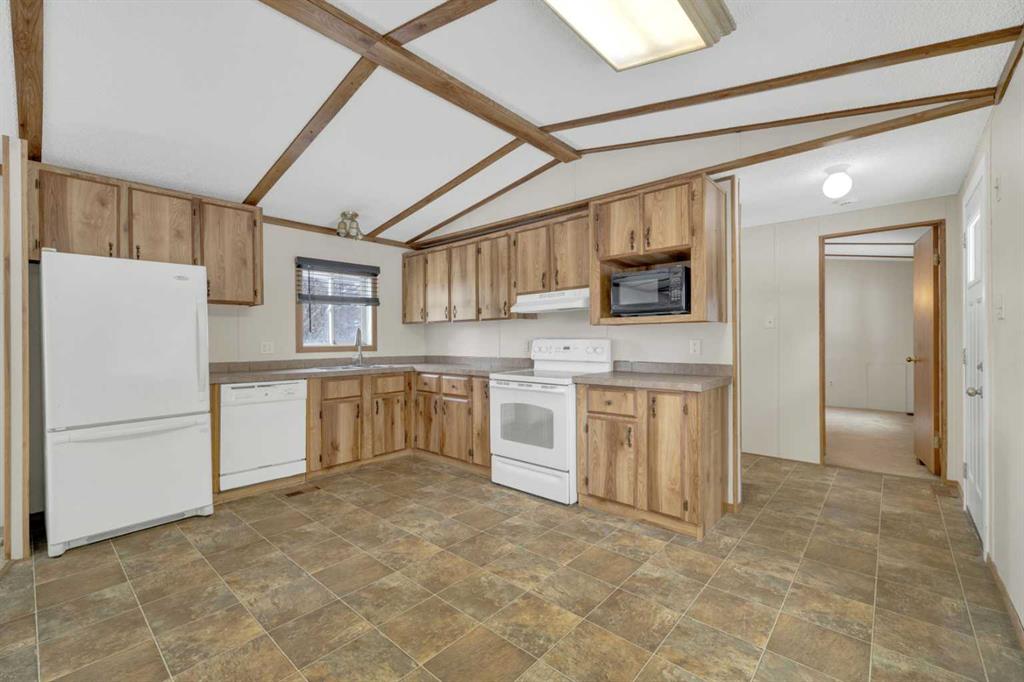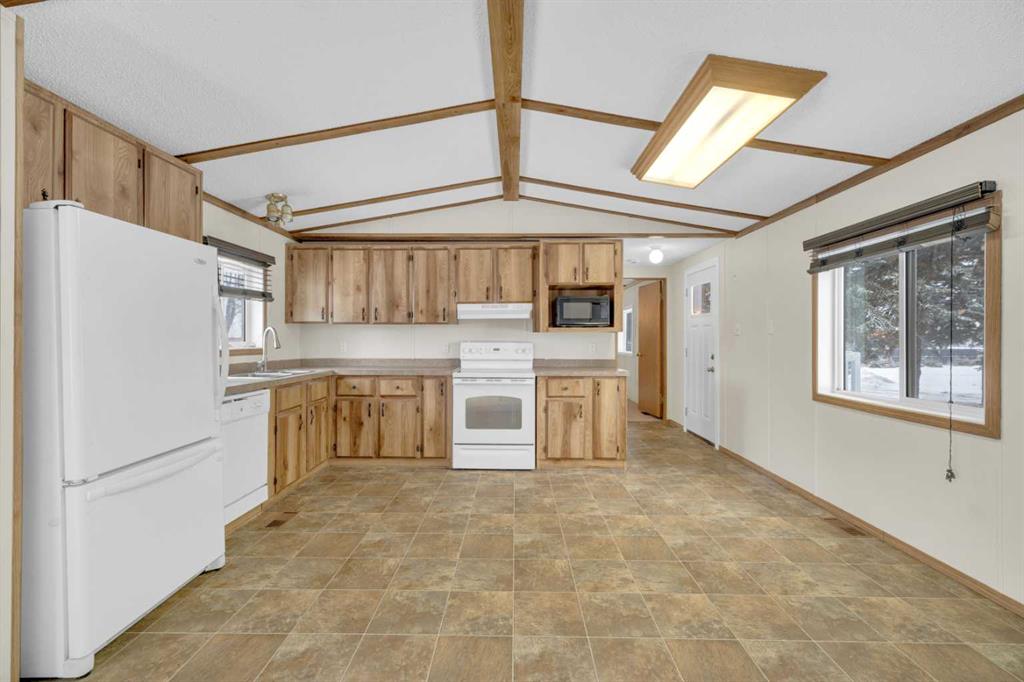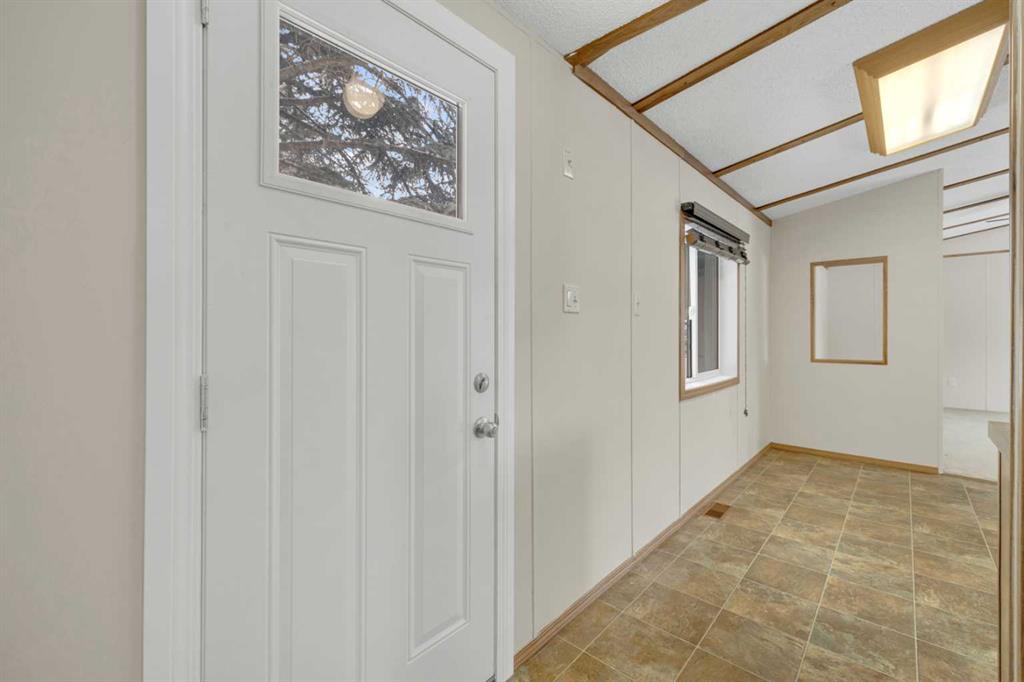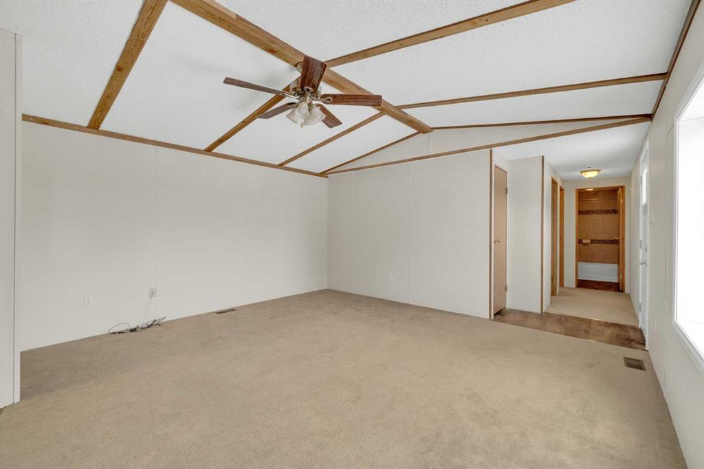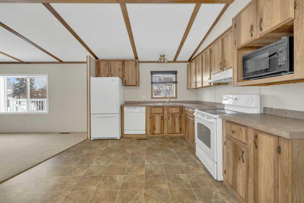 This refreshed 16x76 manufactured home offers 3 bedrooms and 2 full bathrooms, including a spacious primary suite complete with a private ensuite. Recent upgrades provide peace of mind, including NEW insulated skirting, NEW siding, NEW plumbing, NEW belly insulation, and fresh paint throughout. A durable metal roof adds to the worry-free ownership. Two new deck landings offer sturdy, convenient access, and the location is perfect based on the outside loop; end lot - providing added privacy with no neighbors behind and open parking alongside.