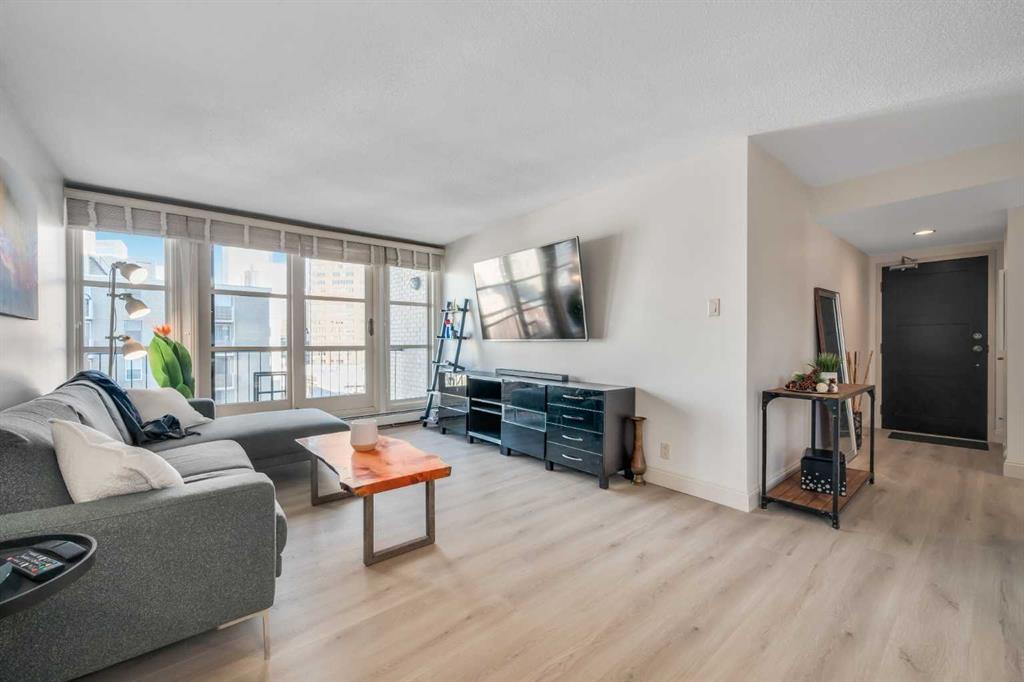 The Ultimate Turn-Key Urban Sanctuary at Centro 733 | 8th Floor Views & All-Inclusive Living. Where sophisticated modern design meets the effortless energy of downtown living in the heart of Calgary’s most vibrant district—the Beltline. This isn’t just a condo; it is a meticulously maintained executive residence that offers an unparalleled lifestyle for the urban professional or a high-yield opportunity for the savvy investor. Positioned on the 8th floor, this bright, north west-facing corner unit is flooded with natural light through expansive windows, framing breathtaking city skyline views that transform into a sparkling backdrop of lights every evening. The thoughtfully designed open-concept layout features two spacious bedrooms and 1.5 bathrooms, maximizing both private comfort and social functionality. The primary suite serves as a quiet retreat, complete with a private 2-piece ensuite for added convenience. The secondary bedroom is perfectly versatile, ready to serve as a guest room, or a dedicated home office for those who work remotely. At the heart of the home lies a stylish gourmet kitchen that will delight any chef, featuring sleek granite countertops, custom cabinetry, a built-in wine rack, and a raised breakfast bar. A newer electric stove complements the high-end stainless steel appliances, while brand-new luxury vinyl plank flooring flows throughout the entire unit, providing a modern, durable, and cohesive aesthetic. Every wall has been freshly painted creating a move-in-ready space that feels brand new from the moment you step through the door. What sets this property apart is the incredible value and simplicity it offers. In an era of rising costs, you can enjoy total peace of mind with a monthly condo fee that is truly all-inclusive. Your heat, water, and electricity are all covered, allowing for predictable monthly budgeting with no hidden surprises—you know exactly what your living costs are every single month. Furthermore, this is a rare "plug-and-play" real estate opportunity. To make this transition even more seamless, the owner can offer the property fully furnished. From the stylish furniture and curated decorations down to the very last kitchen utensil, everything could be included in the sale. For a first-time homebuyer, this means moving in with nothing but a suitcase. For the investor, this unit is primed to launch as a high-end executive rental from day one. Beyond the unit, residents enjoy access to an onsite fitness center, a social room for gatherings, secure storage lockers, and optional private bike storage. The building is pet-friendly. Outside your door, the best of Calgary awaits. You are mere steps from the iconic 17th Avenue, home to the city’s trendiest cafés, award-winning restaurants, boutique shops, and lush urban parks. Whether you are commuting to the downtown core on foot, biking along the extensive pathway system, or enjoying a night out at a local pub, everything you need is within reach. Come on buy!