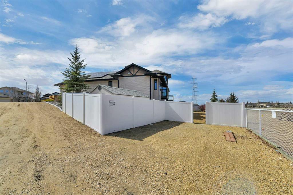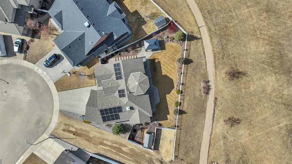 This spacious Executive Hillside Bungalow with a Walk-out basement, is located on a massive Corner Lot at the end of a Key Hole Close. Backing onto a City Reserve adjacent to neighborhood walking trails, this extraordinary home offers a terrific Cityscape View. Step into the spacious Tiled entry which leads to stunning hardwood floors and large windows that bathe the home in natural light. Vaulted ceilings add to the Luxury of this space. Custom Kitchen features a walk-in Pantry, Island with a raised eating bar, a fully tiled back splash, new appliances, an abundance of solid oak Cabinets and a 3- sided Fireplace that separates the Kitchen and Flex or formal dining room. Kitchen dining offers views and easy access to the outdoors on a composite deck for those summer morning coffees or evening meals. Step through French doors into the bright Conservatory which features a 16’ ceiling, cozy fireplace, and massive windows which showcase the view of sunrises or evening sunsets. Too bright, lower the upper power shades! Spacious Primary bedroom also has a private balcony, walk-in closet and a 5 pc. ensuite mere steps away from your main floor laundry. Fully developed Basement offers a large Family room where you can walk out to the professionally landscaped yard to enjoy the covered patio and the hot tub area. Two additional bedrooms with walk-in closets, a bright flex room/office and a 4 pc bathroom add to your lifestyle. The Oversized double Garage will accommodate your full-sized pickup, SUV and toys. This home also features 15x500 watt Solar Panels which augment the electrical grid while dramatically lowering your energy costs. Other Numerous Upgraded features include: new Stainless steel appliances, Triple pane Windows by Green Fox, Glass Deck panels, New Air Conditioning unit, Tankless water system supplying the domestic and under floor systems, water softener, upgraded ceiling insulation, Monitored Security System, Programmable soffit lights. Recent Extensive landscaping added a roman paver's courtyard with gazebo, stairs and improved drainage using French drains. The perimeter garden area features low maintenance shrubbery yet leaving ample space to play yard games or entertain, all framed by concrete curbing. Rolldown shades allow privacy in your hot tub. A dedicated RV Parking adjacent to the alley and a combination of Vinyl and chain link fence add to your privacy. Pick apples off your trees in the fall while enjoying the green spaces and comfortable lifestyle in this unique home and property. You are steps away from EastHill and Lancaster shopping centers to complete your needs.