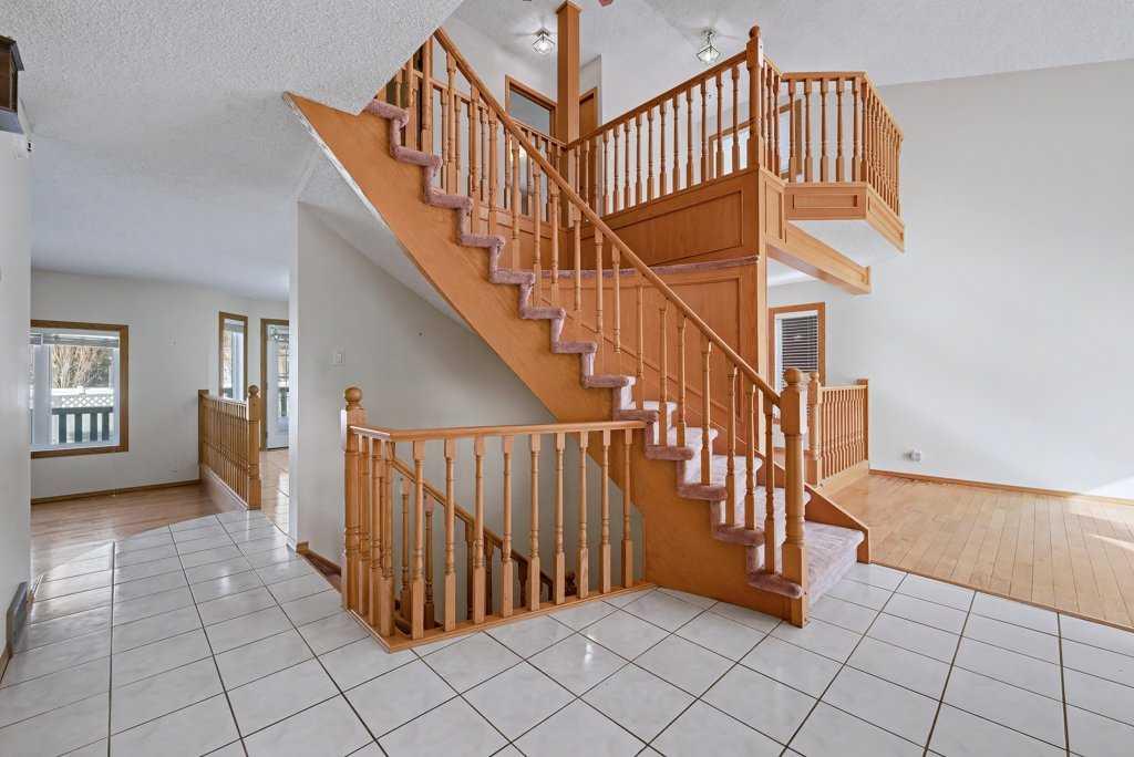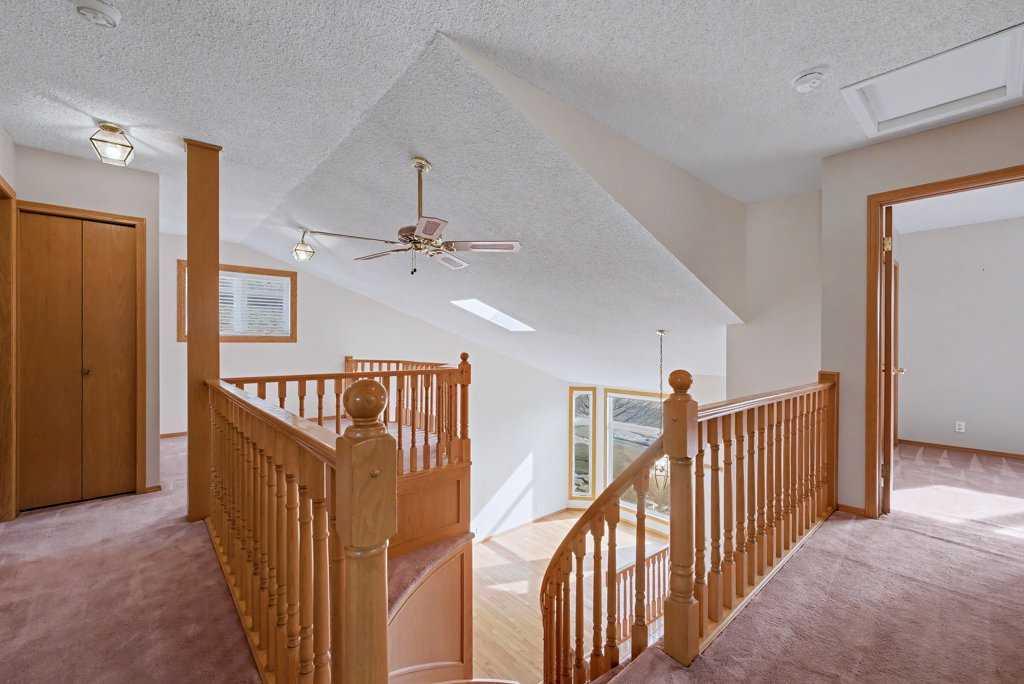 This Executive Home with 4 Bedrooms Up and 3 Bathrooms...is steps from the school! The home is perfect for a larger family needing extra space! The open living-dining room concept features vaulted ceilings to maximize light/space and the grand curved staircase offers such a magnificent "executive" feel to this large home! The kitchen is spacious and opens to the eat-in nook and adjacent great room with fireplace and bar area. The upper level showcases a loft area - perfect for a home office or homework area. With 4 bedrooms up, this home offers space that not all other homes can offer. The master suite is grand in style, with its "spa-like" ensuite bathroom, including a jetted tub and stand-up shower. Main level laundry room. Newer windows throughout. The lower level has 2 furnaces. The large yard offers much opportunity for kids to play.