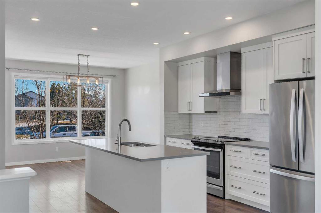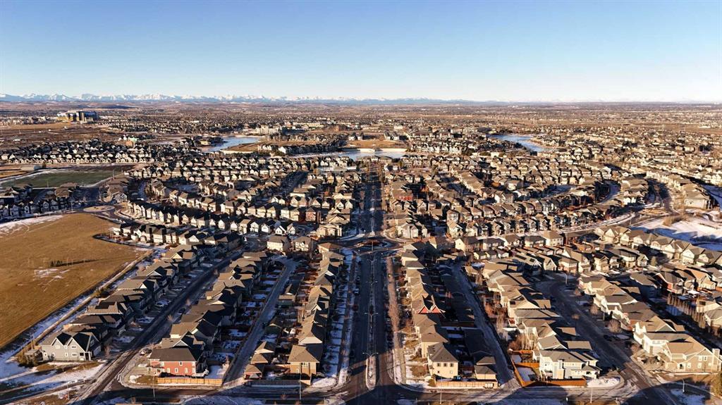 Positioned on a coveted corner lot directly across from green space, a picnic area, and a playground, this beautifully designed Mahogany home offers an elevated lake community lifestyle with comfort and functionality at its core. Oversized windows flood the open main level with natural light, highlighting durable LVP flooring, designer lighting, and a layout built for both daily living and entertaining. A front-facing dining area captures peaceful park views, while the kitchen features quartz countertops, stainless steel appliances, timeless subway tile, and a large breakfast bar island ideal for casual meals and gatherings. The living room overlooks the sunny west-facing yard through corner windows, creating a relaxed space for evenings at home. A conveniently located powder room near the rear entry adds everyday practicality. Upstairs, the primary retreat feels private and calm with corner windows, a walk-in closet, and a stylish 3-piece ensuite. Two additional well-sized bedrooms share a 4-piece bathroom, and upper-level laundry provides added convenience. Outdoor living shines in the west-facing backyard with a spacious 20x20 deck complete with pergola and privacy screens, offering both sun and shade for entertaining or relaxing. A gas line for the barbecue, a grassy play space, a double detached garage with 60-amp service, and a storage shed complete the yard. Central air conditioning ensures summer comfort, while the undeveloped basement offers excellent future potential. Located in the heart of Mahogany, Calgary’s premier four-season lake community, residents enjoy walking access to the main beach, the residents-only Beach Club, and over 20 acres of beaches, wetlands, and pathways, with shops, restaurants, schools, parks, and playgrounds all thoughtfully integrated nearby for a connected and active lifestyle.