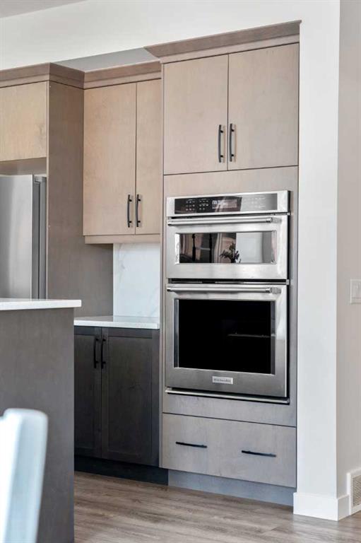 Welcome to 887 Seton Circle, a stunning Jayman Built home, ideally located on a rare traditional homesite in the sought after community of Seton. This highly upgraded home is nearly brand new and features the energy-saving benefits typically found in brand-new construction. TWELVE SOLAR PANELS, a TANKLESS HOT WATER HEATER, smart thermostat, and TRIPLE-PANE windows help reduce monthly utility bills and make the home more environmentally friendly. For those considering an electric vehicle, the garage has been pre-wired for a future charger installation. The gourmet kitchen is a standout feature, designed with KitchenAid appliances including a built-in wall oven and a microwave/convection oven combination. Throughout the home, high ceilings create a sense of spaciousness, with 9-FOOT CEILINGS and 8-foot doors on both levels. Luxury vinyl plank flooring has been installed throughout for easy maintenance, while matte black plumbing fixtures contribute to the home's sleek, modern style. The main floor also includes a two-piece bathroom with a vanity and a functional mudroom with built-in lockers. Upstairs, the primary bedroom is designed as a true retreat. It includes a tray ceiling with LED lighting, custom built-in closet organizers, and a spa-inspired five-piece ensuite bathroom. A large soaker tub provides the perfect space to unwind. Two additional bedrooms share a second five-piece bathroom, and a central bonus room separates them from the primary suite for added privacy. The unfinished basement offers great potential for future development, with bathroom rough-ins and 9-foot ceilings already in place. Additional features include Ring cameras at the front and rear doors, smart light switches and thermostat, a smart garage door opener, a high-efficiency two-stage furnace, and a water softener. Seton’s Urban District is home to a variety of restaurants and shops, the world’s largest YMCA, and Calgary’s South Health Campus hospital. Residents also have access to a 13,000-square-foot Homeowners Association facility, located beside a private park exclusive to Seton homeowners. Community amenities include a splash park, hockey rink, tennis courts, gardens, entertainment space, and more. Come and experience everything this vibrant and growing community has to offer.