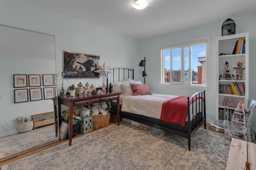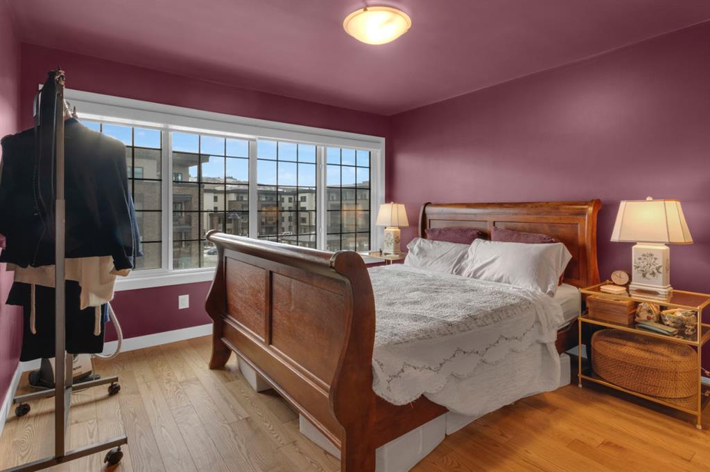 Timeless design and modern comfort come together in this beautifully finished 1,719 sq.ft. three-storey townhouse, showcasing a striking New York–inspired exterior and a thoughtfully designed interior. The lower level boasts the highly sought after double-wide attached garage option and a bright, versatile space ideal for a family room, home office, or flex area. Large windows fill the space with natural light, and engineered hardwood flooring extends throughout all three levels, creating a cohesive and refined feel. The main living area showcases a stunning kitchen that combines modern design with warmth and functionality. Wood cabinetry, quartz countertops, a farmhouse sink, white tile backsplash, and a practical mix of tile and engineered hardwood create a space ideal for both daily living and entertaining. The kitchen flows into a spacious dining area and a sun-filled living room that opens onto a large balcony, extending the living space to the outdoors. The upper level offers convenient laundry, three generously sized bedrooms, including a primary bedroom with a walk-in closet and a beautifully finished four-piece ensuite with porcelain tile flooring. With approx. $60,000 in upgrades, beyond an already high-end build, this home showcases smooth ceilings, quality craftsmanship, built-in ceiling speakers on the main level with included Sonos control system, excellent soundproofing between units, and a separate lower-level entrance. Additional features include central A/C, a 60-gallon hot water tank, a home that has never been smoked in or housed pets, and an outdoor gas line perfect for grilling. The location truly elevates this home, being close to WinSport, Calgary Farmer's Market, and Bowness Park, residents enjoy nearby trails, quick access to Kananaskis, easy downtown commuting, and a variety of shopping, restaurant, and grocery options. This neighbourhood offers the perfect balance of outdoor adventure with everyday convenience, and this home combines modern sophistication, thoughtful upgrades, and an unbeatable location to deliver a living experience that is both comfortable and inspiring.