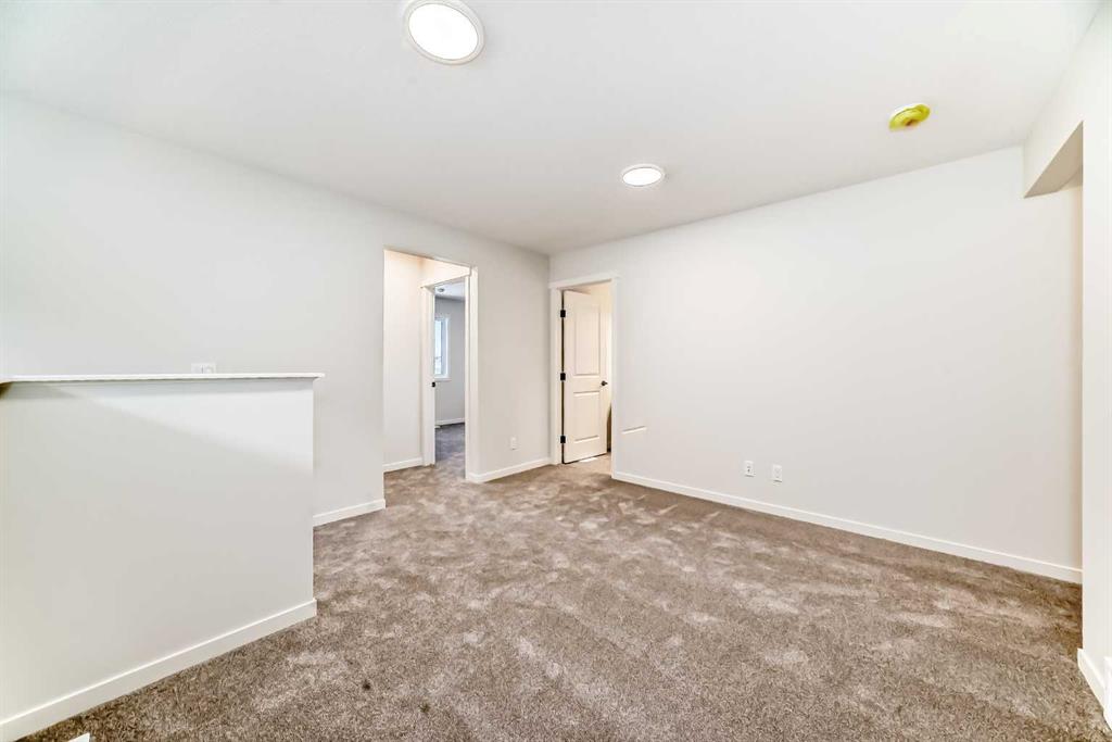 Welcome to the Kalara in Rangeview – a 4-bedroom family home where thoughtful design, modern finishes, and everyday comfort come together at an approachable price point. This beautifully crafted spec home is built for how families really live, offering a smart blend of functionality, flexibility, and style from top to bottom. The open-concept main floor creates a seamless flow between the kitchen, dining, and lifestyle areas—perfect for everything from casual weeknights to hosting friends and family. Large windows and a west-facing backyard flood the main living space with natural light all afternoon, giving the home a warm, inviting feel. Throughout the main floor you’ll find luxury vinyl plank flooring, providing a durable, low-maintenance surface that looks great and stands up to busy family life. At the heart of the home is a stylish, modern kitchen that truly shines. You’ll love the modern grey cabinetry paired with white quartz counters, a stacked subway tile backsplash, and black hardware that adds a clean, contemporary contrast. A sleek chimney-style hood fan, built-in microwave, and pot lights elevate the look and function, while the spacious island offers extra prep space and seating. The walk-in pantry keeps everything organized and close at hand, making meal prep and grocery storage a breeze. A main floor flex room adds valuable versatility—use it as a home office, study space, playroom, or hobby room depending on your needs. Upstairs, a centrally located loft provides even more flexibility, working perfectly as a cozy media area, kids’ hangout, or quiet reading space. The upper floor layout is designed with families in mind, featuring 4 bedrooms up plus the loft, so everyone has their own space. The primary suite is a relaxing retreat, complete with a generous walk-in closet and a gorgeous 5-piece ensuite with dual sinks, separate shower, and soaker tub. The kids’ wing is equally impressive, featuring a 5-piece main bathroom with double sinks—ideal for busy mornings and bedtime routines. Convenient upper floor laundry means no more hauling baskets up and down the stairs. Additional perks include a double front attached garage, providing ample parking and storage, and it’s roughed in for a future EV charger, making this home a smart choice for the future. The 9-foot foundation and separate side entrance offer excellent potential for future basement development (subject to city approval), whether you envision a guest suite, multi-generational space, or an income helper down the road. Located in Rangeview, Calgary’s first garden-to-table community, this home is part of a neighbourhood designed around connection, sustainability, and lifestyle. Enjoy parks, pathways, community gardens, and welcoming gathering spaces, all while being conveniently close to schools, shopping, and the South Health Campus. The Kalara offers the space, style, and community setting to support your family for years to come.