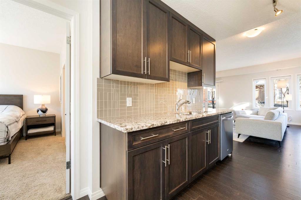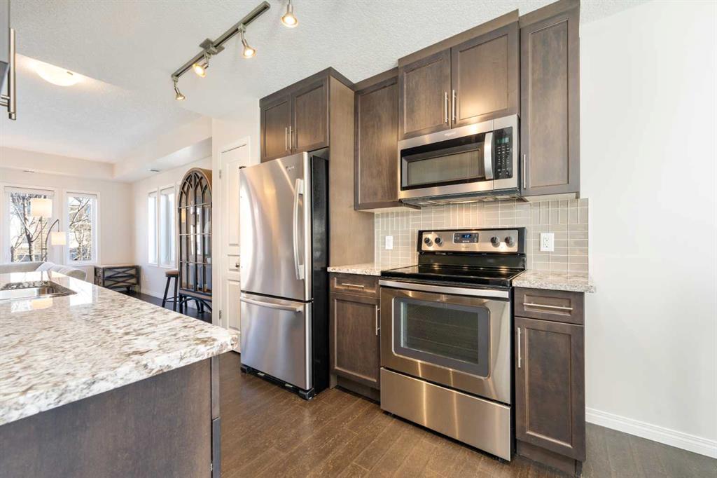 Welcome to this charming 1-bedroom, 1-bathroom end-unit townhouse in the desirable Auburn Bay community of Southeast Calgary. With its bright and open layout, this home is perfect for first-time buyers, downsizers, or investors looking for a well-maintained property in a vibrant lakeside neighbourhood. Step inside to a spacious living room flooded with natural light from the additional end-unit windows, creating a warm and inviting atmosphere for relaxing or entertaining. The galley-style kitchen features 41-inch high cabinets, granite countertops, and stainless steel appliances, providing both style and functionality. Enjoy your meals in the adjacent dining area or take the party outside to your private balcony, complete with a BBQ gas line rough-in, ideal for summer cookouts. The home offers cork and tile flooring throughout the main living areas for durability and easy maintenance, while the bedroom is cozy and carpeted, offering comfort and quiet. The 4-piece bathroom boasts a functional layout and full-sized laundry with convenient access from both the bedroom and the main living area. Storage is never an issue, with plenty of closets throughout, a storage room under the stairs, and additional space downstairs with direct access to the single attached garage. Modern conveniences include air conditioning, and the interior has been freshly painted throughout for a bright, move-in-ready feel. Major updates include a new roof installed in 2025 and a new garage door, providing peace of mind and long-term value. Being an end unit means more natural light and extra privacy, while the building is well maintained with low condo fees, making this a smart and affordable choice. Living in Auburn Bay offers an unbeatable lifestyle. Enjoy 4-season lake access with walking paths, parks, playgrounds, and a vibrant community feel. The area is also conveniently located near shopping, restaurants, schools, and major roadways for easy commuting throughout Calgary. This townhouse combines style, comfort, and convenience in a sought-after lakeside community. With recent updates, abundant storage, and a bright, open layout, it’s a move-in-ready home you’ll love. Don’t miss the opportunity to make this Auburn Bay gem yours!