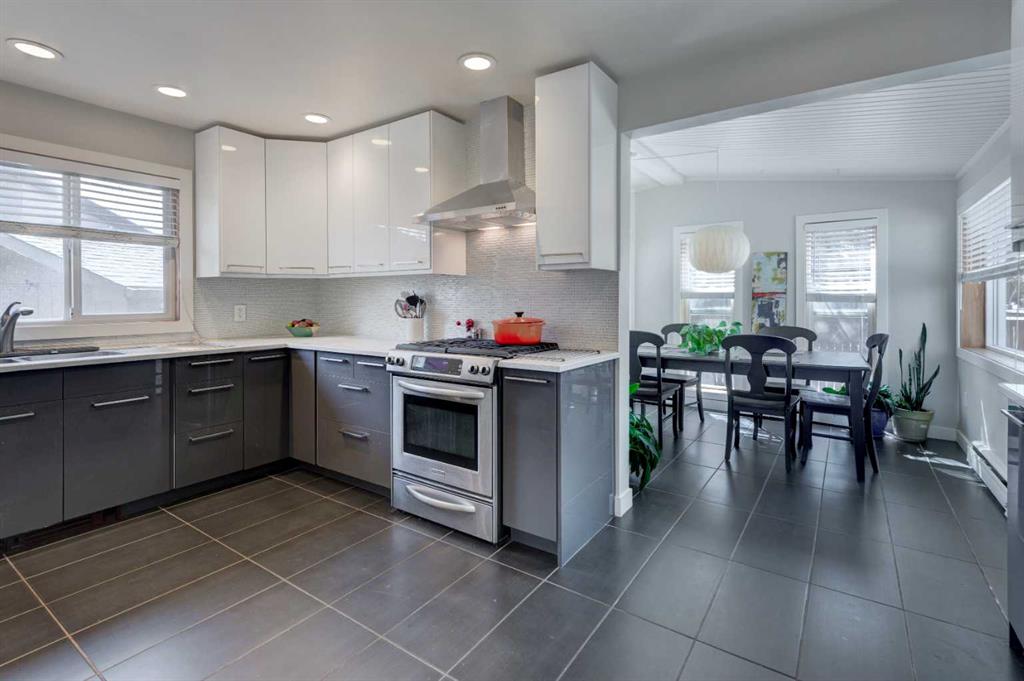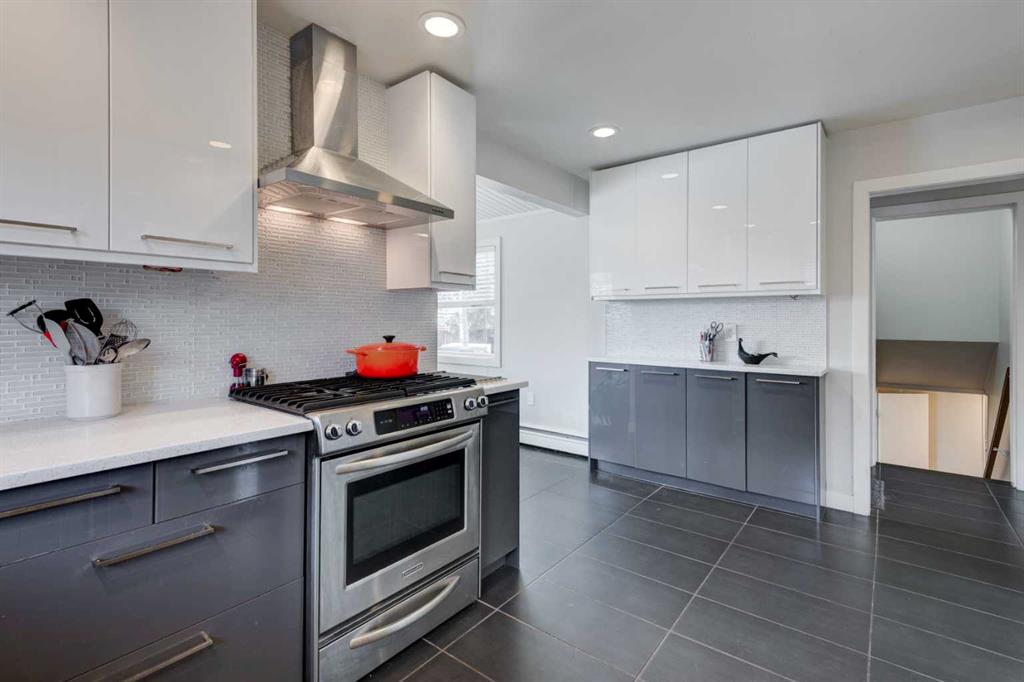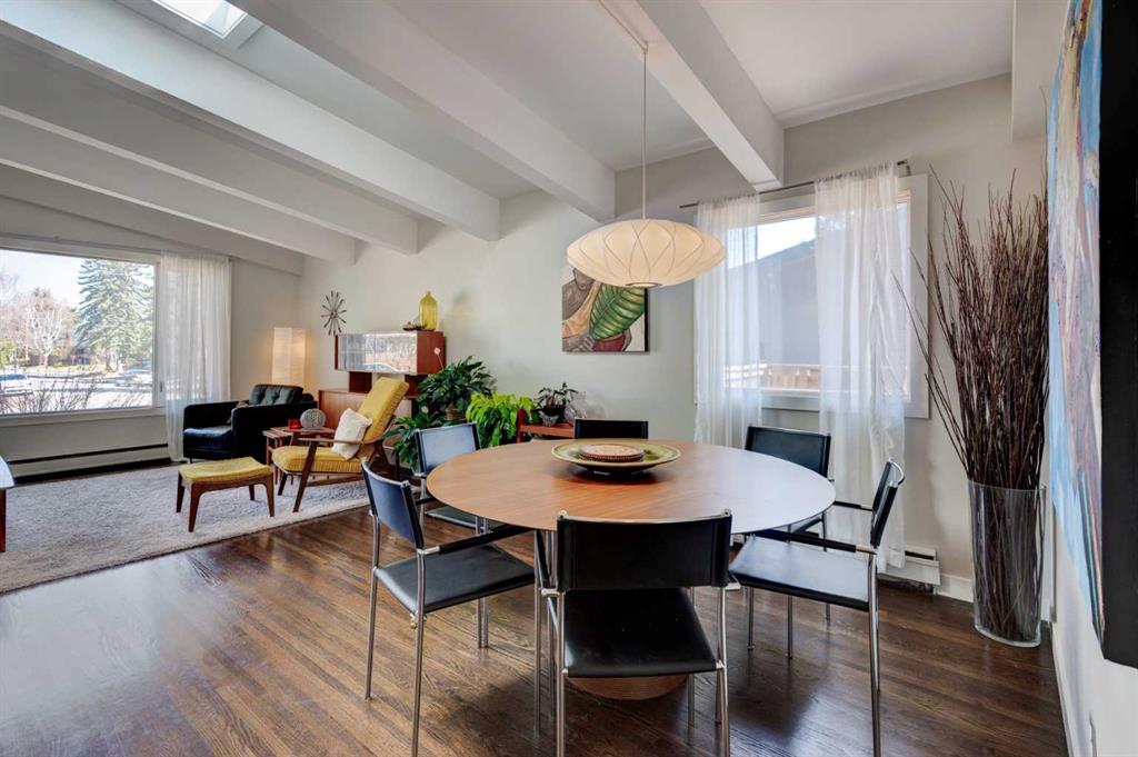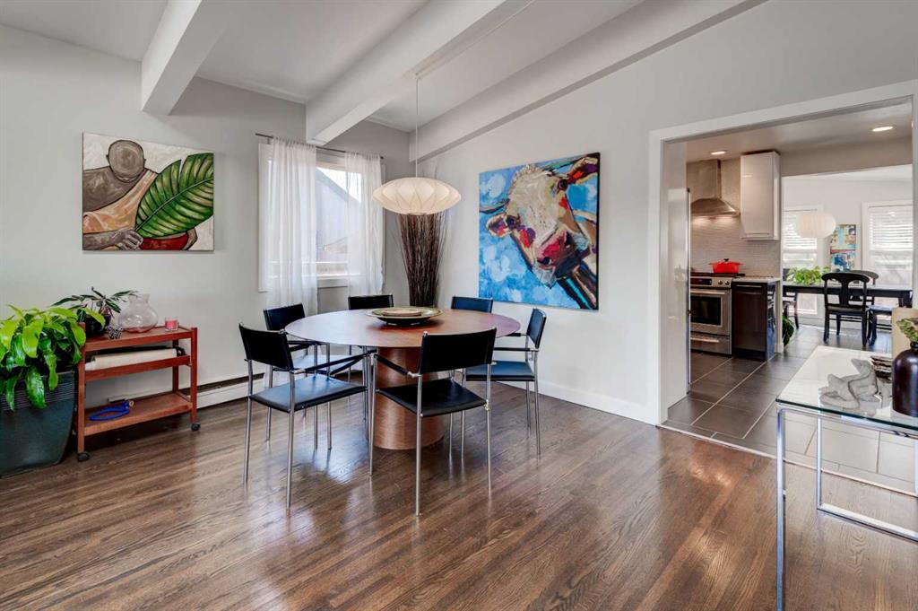 This beautiful family home is situated on a quiet, tree-lined street in Chinook Park, which is one of Calgary’s most sought-after communities. This 4-level split offers an exceptional blend of timeless character and thoughtful updates. The main and upper levels showcase rich hardwood flooring, complemented by elegant ceramic tile in the updated gorgeous kitchen and eating area. Soaring vaulted ceilings in the living and dining rooms create a bright, open ambiance—perfectly suited for both sophisticated entertaining and everyday living. At the heart of the home is the updated modern and sun-filled kitchen. It offers quartz countertops, stainless steel appliances, and loads of cupboards and counter space. The convenience of main floor laundry adds to the home’s effortless functionality. Upstairs, three generously proportioned bedrooms provide comfortable retreats, accompanied by a well-appointed 4-piece bath featuring a relaxing jetted tub. The lower levels expand the living space beautifully, offering a substantial L-shaped family room, a large fourth bedroom, a 3-piece bath, and tons of storage. This floor plan provides room for everyone to have their own space as well as generous areas for gathering. Outdoors, the private, mature yard, is highlighted by established trees and offers room for kids and pets to play. There is also a newer deck and access to the garage. A recently installed boiler (2022) enhances comfort and efficiency, offering added peace of mind. The ideal location is great for commuting in all directions. The neighbourhood offers great schools, quick access to the Glenmore Park pathway system, it is close to Rockyview Hospital, transit, as well as shopping and dining. This is an exceptional opportunity to own a refined home in a terrific community.