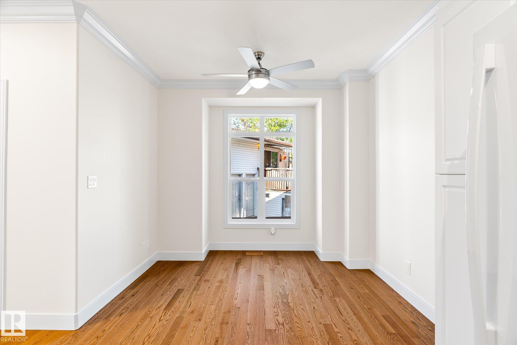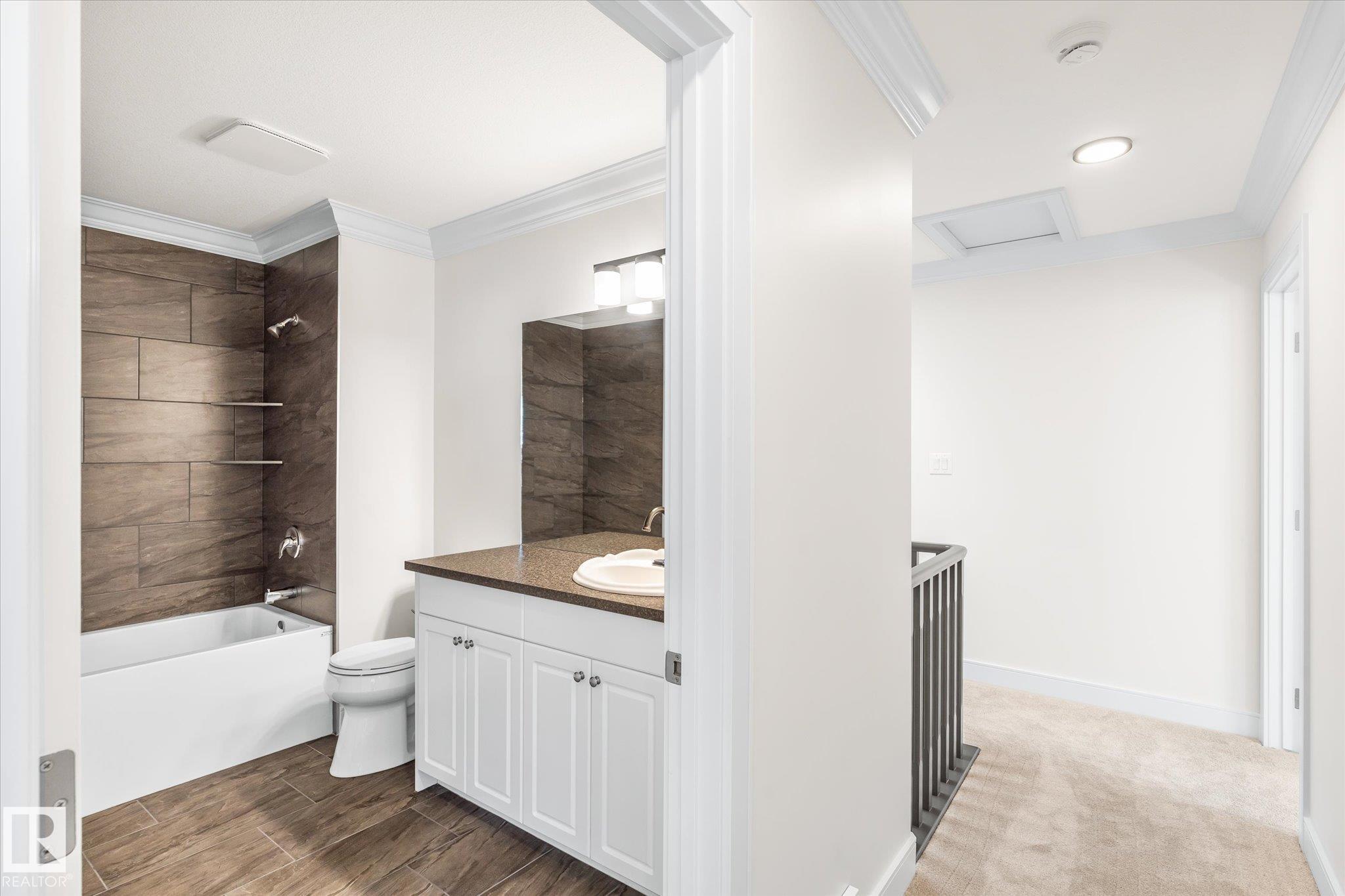 LOCATION! LOCATION! Fully renovated 2 bedroom, 2.5 bathroom townhouse just minutes from downtown and the river valley trails! Stripped to the studs—everything is BRAND NEW: walls, flooring, paint, lighting, kitchen, kitchen appliances, bathrooms, furnace and hot water tank. Enjoy the newly built large front porch & stunning vaulted stairwell with massive skylight. New engineered hardwood on the main floor and beautiful crown molding. The kitchen has all new cupboards, backsplash, countertops, and appliances. New two-piece bathroom on the main floor. The upper level has two bedrooms and a brand new 4 pc bathroom. Huge primary bedroom features dual closets & access to a private newly built rooftop patio! All new carpet throughout! The basement has a large recreation room with big windows, another 4 pc bath, and laundry room. Brand new furnace and hot water tank! LOW CONDO FEES!! Single detached garage. Ideal for first-time buyers or investors! Walk to transit, shopping, & more! Shows 10/10!!