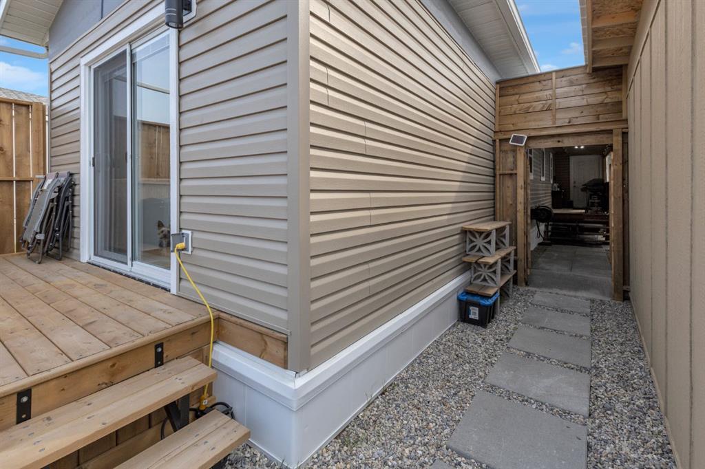 OPEN HOUSE SUNDAY NOVEMBER 9th, 12-2PM! HOME SWEET HOME! AMAZING VALUE! Welcome to this EXQUISITELY, FULLY UPDATED home situated in the FAMILY FRIENDLY mobile home community of Chateau Estates! This isn’t just any mobile home, it’s been completely gutted and FULLY RENOVATED from top to bottom. Stripped down to the metal framing, everything is new: CENTRAL AIR CONDITIONING, electrical, plumbing, soundproof insulation, geothermal wrap, and more. Step inside and you’ll immediately see the care and craftsmanship that went into this home. The open concept layout features gorgeous vinyl flooring and a bright, open concept living/dining area that flows into a dream kitchen. With quartz countertops, plenty of storage, and sleek high end LG ThinQ appliances, this kitchen is both functional and beautiful. The first bedroom makes an ideal kids’ room, guest space, or home office. The bathroom is thoughtfully designed with double vanities, tons of storage, and a combined laundry area with more than enough room for your needs. The primary bedroom is spacious and inviting, easily fitting a king size bed with room to spare for dressers. Built-in wardrobes keep everything organized, and the cozy electric fireplace adds warmth on cooler nights. From here, step out to your private back patio, perfect for relaxing evenings. Best of all, there are no neighbours behind you, so you can enjoy peace and privacy. HIGHLIGHT UPGRADES include: 8 foot rear expansion; 9 foot ceilings; 2x6 construction with R22 insulation in walls; Metal roof & new windows; 2” insulated skirting; New vinyl siding with thermal wrap for energy efficiency. Outside, you’ll find a large covered carport, a 10' x 14' insulated powered shed/workshop, plus an additional storage shed for all your seasonal items. A separate RV parking spot is also available with this property which is adjacent to the community. This home shows like a brand new home with every update already complete. All you need to do is move in and enjoy. Don’t miss out! Book your showing today before it’s gone!