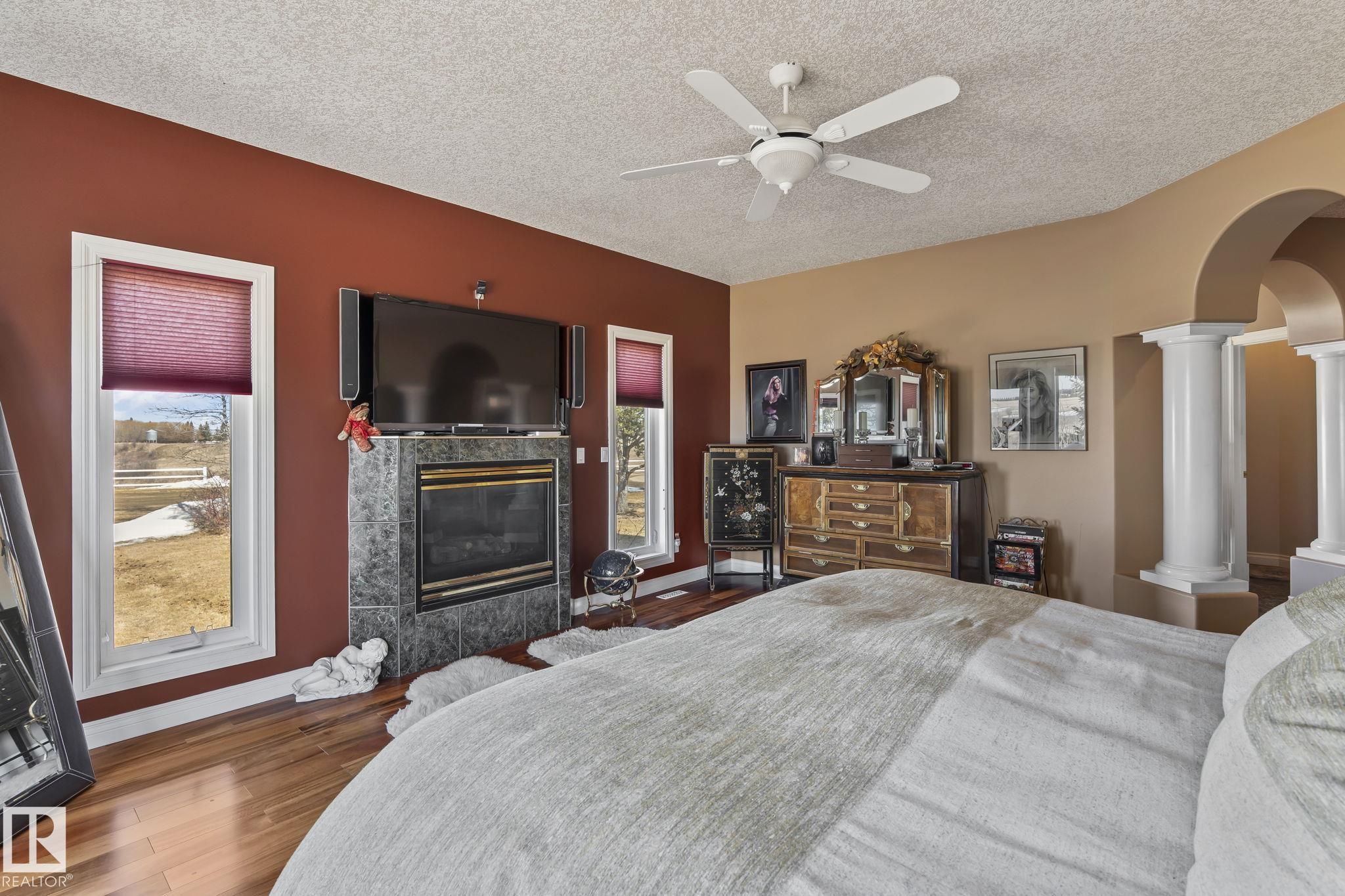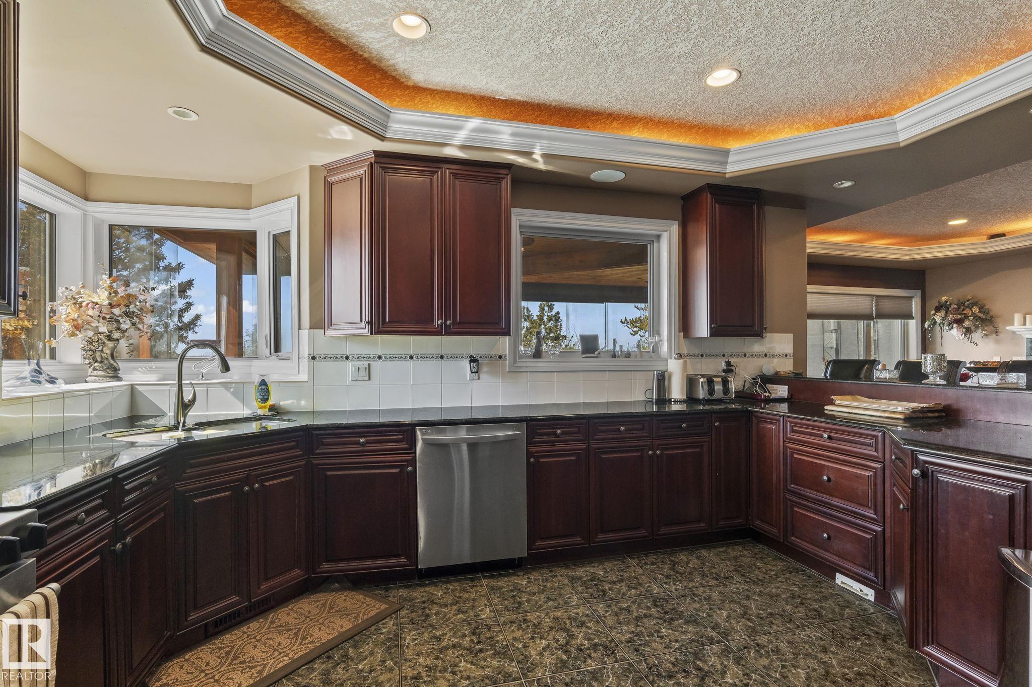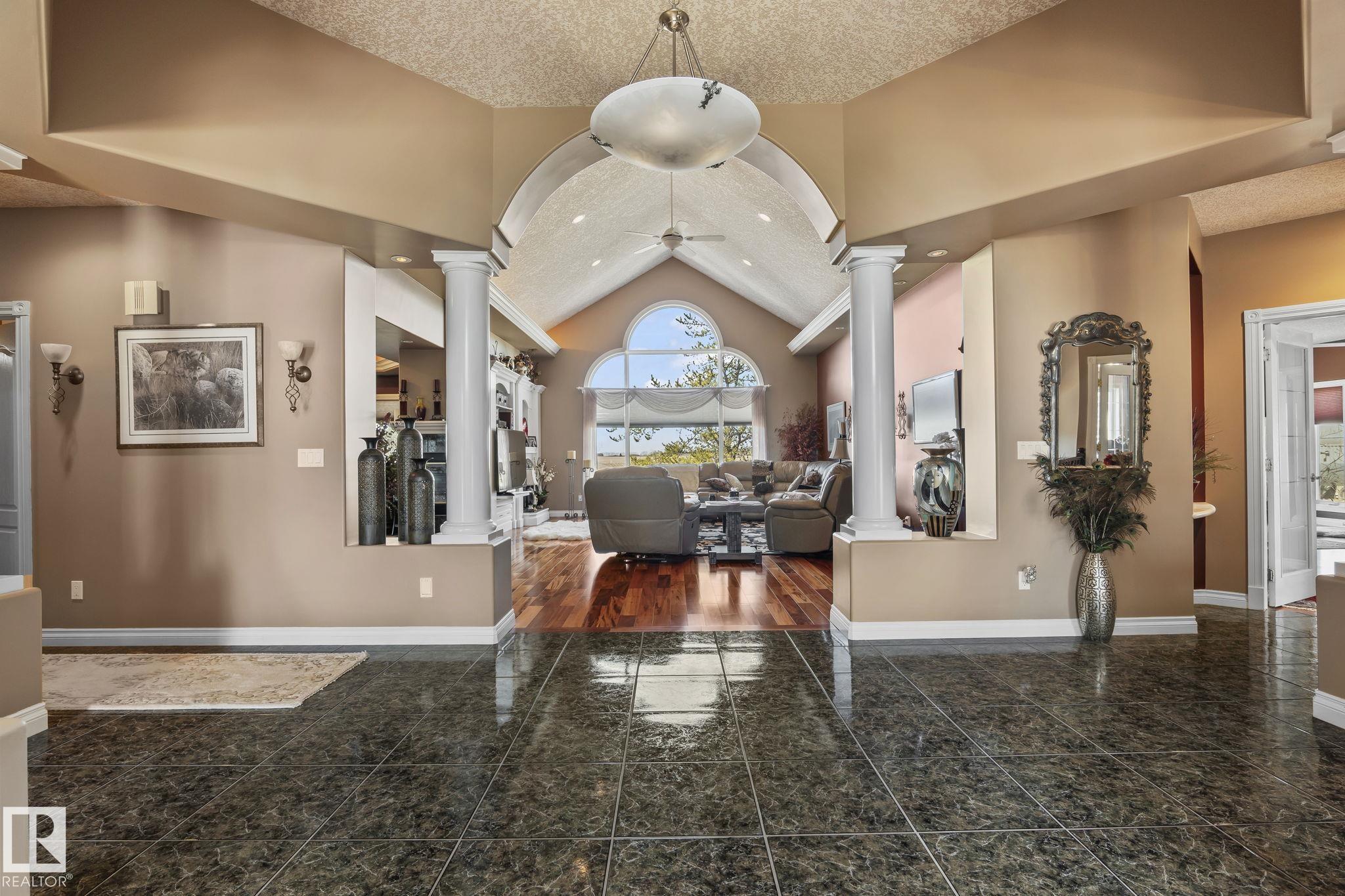 Amazing Property nestled on a exceptional private treed-80 acres setting along Whitemud Creek in city of Edmonton. This extraordinary estate combines Serene natural beauty with great potential for future developments, step away from edmonton INTERNATIONAL AIRPORT. Hillside BUNGALOW offers over 6000 sq feet of exquisitely developed space, featuring a grand VAULTED FOYER and living room with sweeping views of RAVINE, river and endless fields. The primary suite is a retreat with a spa-inspired ensuite and expansive walk-in closet. Sunlit living areas including the kitchen and nook flow onto a spectacular deck and ENCLOSED SUNROOM – evoking the ambience of a Luxury MOUNTAIN CHALET. The walkout lower level includes 3 Bedrm, a home THEATRE, GAMES ROOM, WET BAR, Exercise studio and high end infloor heating. Triple attached garage, drywalled with work benches and a ground flow drain. A 7000 HEATED SHOP with 3phase power provides incredible versatility. This exceptional private property within CITY of Edmonton