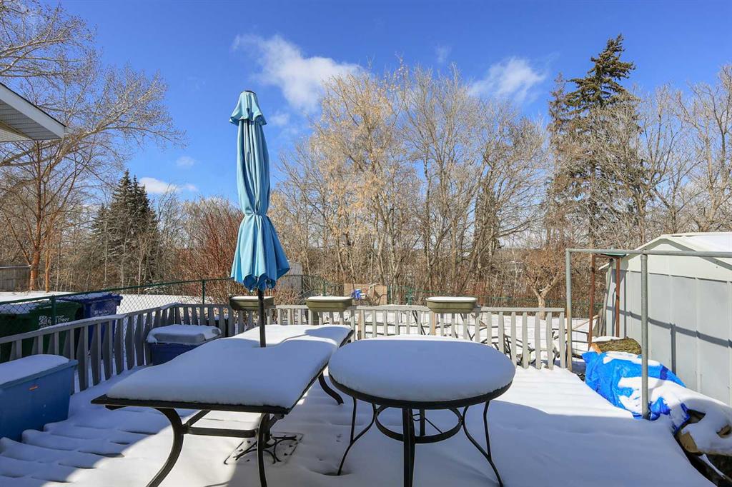 BACKING ONTO A TREED RESERVE WITH NO NEIGHBOURS BEHIND ~ 4 BEDROOM, 3 BATHROOM 2-STOREY WITH OVER 1780 SQ. FT. ABOVE GRADE ~ 22' L X 20' W ATTACHED GARAGE ~ Stucco exterior and a large south facing covered front veranda offer eye catching curb appeal ~ The living room features hardwood flooring and large south facing windows that overlook the veranda and front yard ~ The kitchen offers a functional layout with an abundance of oak cabinets, tons of counter space, full tile backsplash, large windows with treed views, and a counter height eating bar ~ Easily host large gatherings in the dining room with a built in China cabinet, and sliding door patio doors to the multi tiered deck and backyard ~ Conveniently located main floor laundry is just off the kitchen, has built in cabinets, and connects to the 2 piece main floor bathroom ~ A generous size family room with hardwood floors and high ceilings features a cozy brick faced fireplace and another set of sliding patio doors to the deck and backyard ~ The primary bedroom can easily accommodate a king size bed plus multiple pieces of furniture, has a walk-in closet, and a 3 piece ensuite with a walk-in shower ~ 3 additional bedrooms on the upper level are all a generous size with ample closet space (two walk-in closets) ~ 4 piece bathroom with a jetted tub and an oversized vanity ~ The unfinished basement offers plenty of storage space and excellent potential for future development ~ 22' L x 20' W attached garage is insulated, finished with drywall, and has a man door to the side/backyard ~ The fully fenced backyard overlooks mature trees, has fruit trees and shrubs, and plenty of yard space ~ Walking trail that connects to Red Deer's extensive Waskasoo trail system just outside your front door ~ Excellent location; close to multiple schools, parks, playgrounds, Red Deer Poly, Heritage Ranch, Bower Ponds, easy access to downtown, the hospital and highway access ~ With generous space in an established neighbourhood, this home offers a great opportunity to update and make it your own.