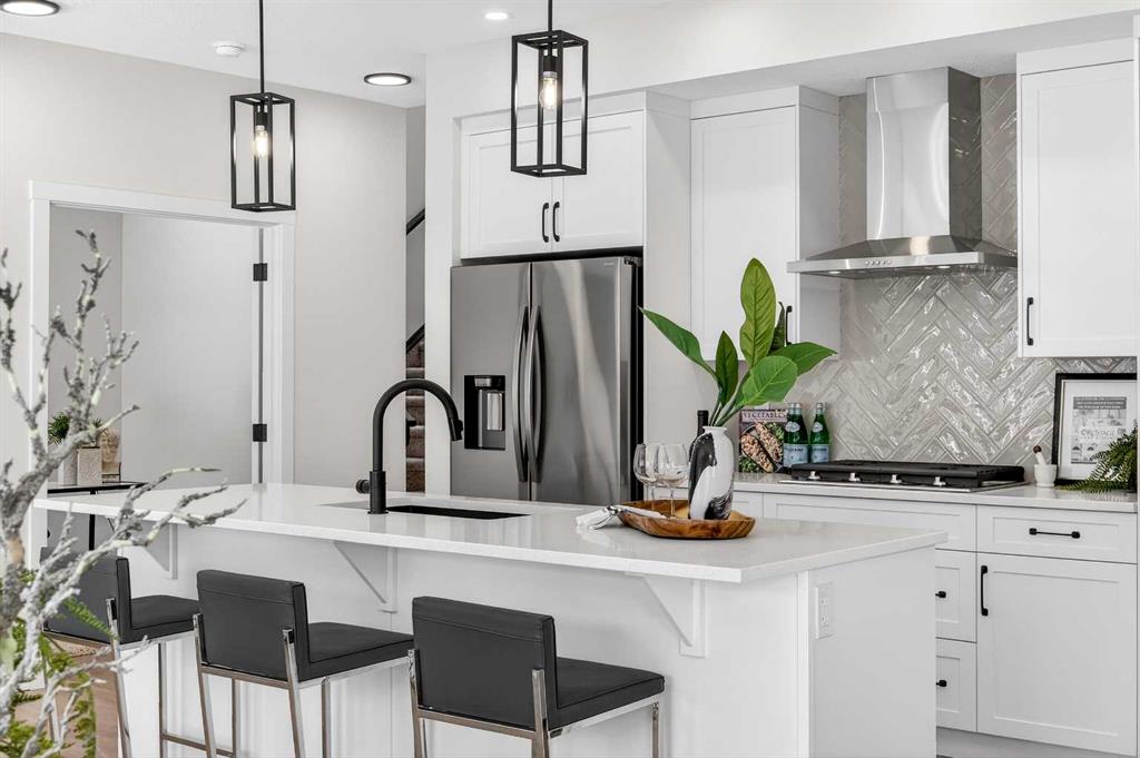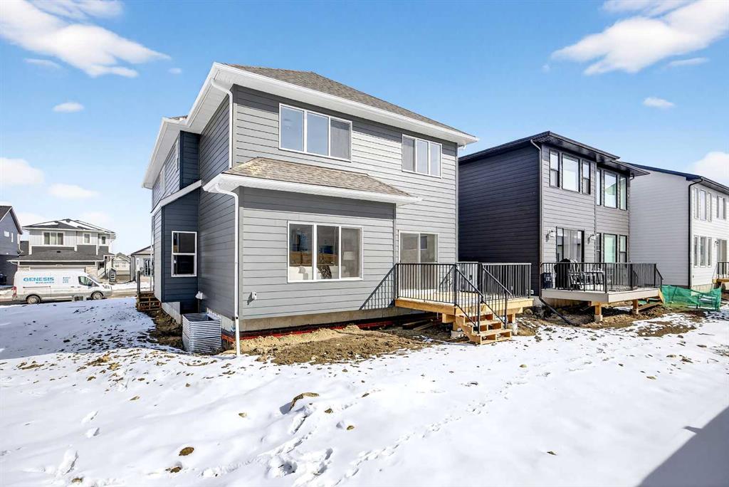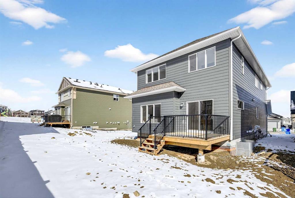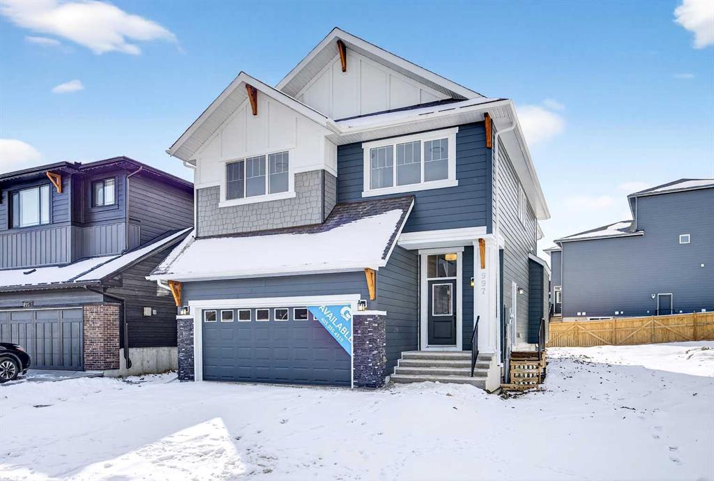 **Move-In Ready** | Arlo Model by Genesis Builders Group Inc | 28 Ft Frontage Traditional Lot | 3 Car Tandem Garage | Open to Below | Loaded Kitchen | Tray Ceilings | Spindle Railing | Gas Stove Line | Gas BBQ Line | Deck | Freestanding Tub | Upper Floor Laundry w/ Waterline for Future Sink | Side Entry | 9’ Basement | Legal Suite Rough-Ins | Expansive Family Living. Welcome to the Arlo, a stunning brand new home crafted by Genesis Builders Group Inc, designed with modern family living in mind. Perfectly positioned on a traditional 28 ft wide lot, this home offers exceptional curb appeal and functionality with a rare three-car tandem garage and spacious driveway. Step inside to a bright and inviting foyer featuring soaring open-to-below ceilings that create a grand first impression. The main floor showcases a versatile flex room—ideal for a home office, playroom, or formal sitting area—while the open-concept layout seamlessly connects the living, dining, and kitchen spaces for effortless entertaining. The kitchen is beautifully appointed with high-end finishes, including sleek cabinetry, a loaded appliance package, and a large central island perfect for barstool seating. A gas line is ready for your future gas stove, and the thoughtful design ensures both style and practicality. The dining area overlooks the backyard and offers direct access to the deck, complete with a gas line for BBQ—perfect for summer gatherings. The living room is warm and welcoming, centered around a modern fireplace that adds both comfort and style. Elegant details like spindle railings and tray ceilings elevate the home’s overall aesthetic. Upstairs, you’ll find a well-designed layout with spacious bedrooms and convenient upper-level laundry, complete with a waterline for a future sink. The primary retreat is a luxurious escape, featuring a spa-inspired ensuite with a freestanding tub—perfect for relaxing at the end of the day. The unfinished 9’ basement includes legal suite rough-ins and a separate side entrance, offering incredible potential for future development—ideal for extended family or a mortgage helper. This thoughtfully designed home combines comfort, style, and future flexibility in one exceptional package. Genesis Builders Group follows the First-Time Home Buyer GST/HST Rebate to eliminate the 5% GST on qualifying new homes (up to $1 million) for qualifying first time home buyers. Don’t miss your opportunity to own in this growing community—book your showing today!