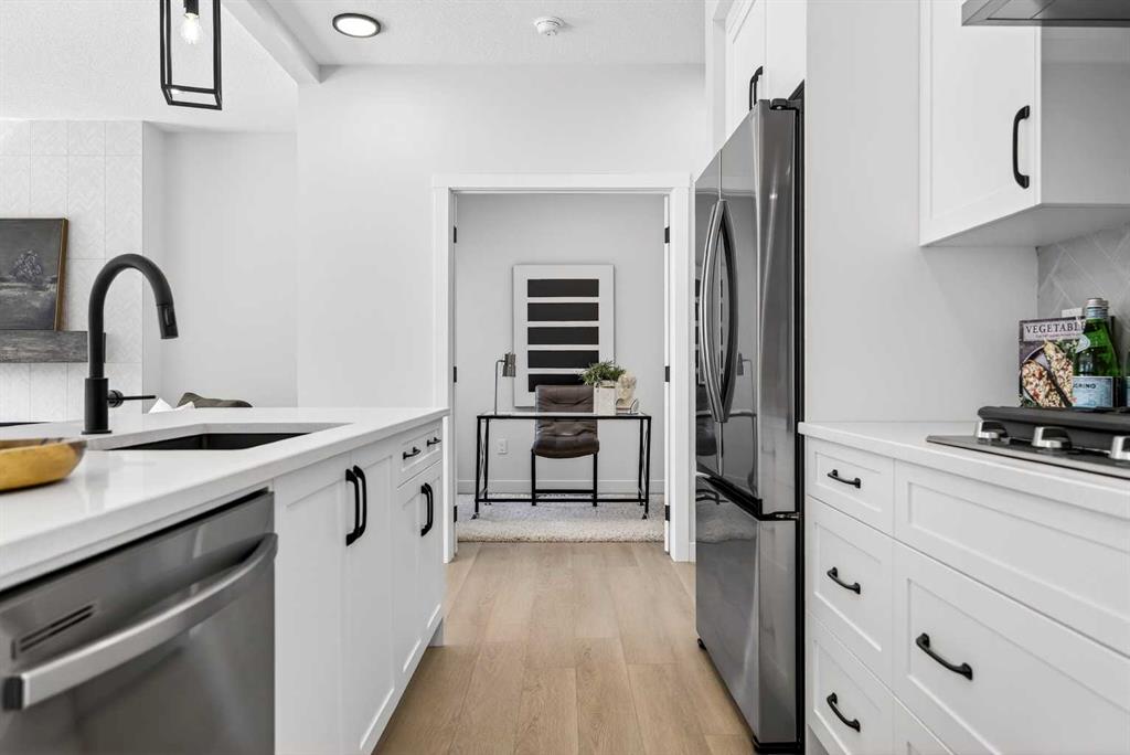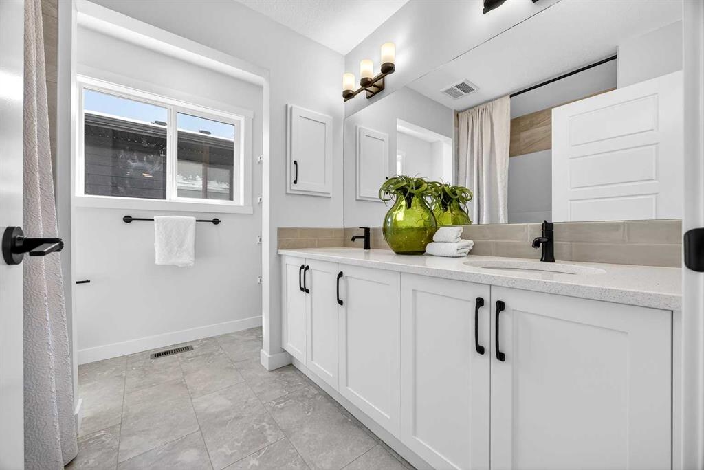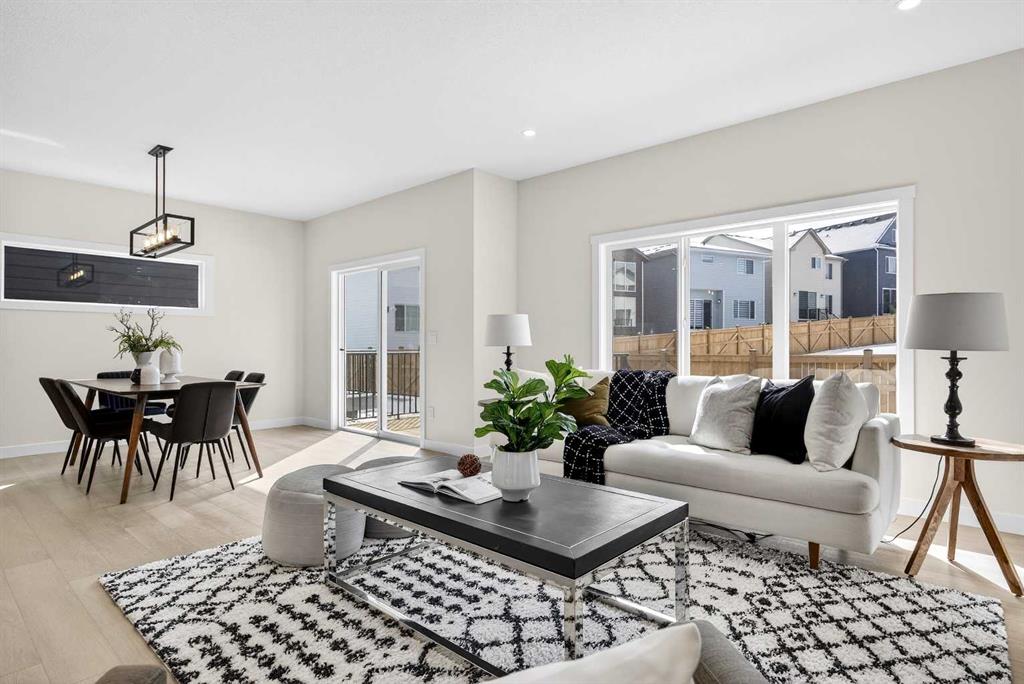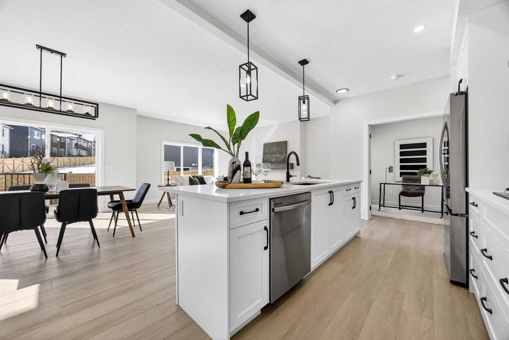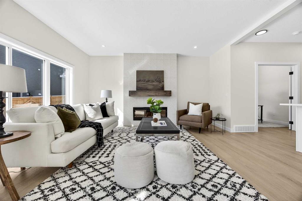 **Move-In Ready** | Arlo Model by Genesis Builders Group Inc | 28 Ft Frontage Traditional Lot | 3 Car Tandem Garage | Open to Below | Loaded Kitchen | Tray Ceilings | Spindle Railing | Gas Stove Line | Gas BBQ Line | Deck | Freestanding Tub | Upper Floor Laundry w/ Waterline for Future Sink | Side Entry | 9’ Basement | Legal Suite Rough-Ins | Expansive Family Living. Welcome to the Arlo, a stunning brand new home crafted by Genesis Builders Group Inc, designed with modern family living in mind. Perfectly positioned on a traditional 28 ft wide lot, this home offers exceptional curb appeal and functionality with a rare three-car tandem garage and spacious driveway. Step inside to a bright and inviting foyer featuring soaring open-to-below ceilings that create a grand first impression. The main floor showcases a versatile flex room—ideal for a home office, playroom, or formal sitting area—while the open-concept layout seamlessly connects the living, dining, and kitchen spaces for effortless entertaining. The kitchen is beautifully appointed with high-end finishes, including sleek cabinetry, a loaded appliance package, and a large central island perfect for barstool seating. A gas line is ready for your future gas stove, and the thoughtful design ensures both style and practicality. The dining area overlooks the backyard and offers direct access to the deck, complete with a gas line for BBQ—perfect for summer gatherings. The living room is warm and welcoming, centered around a modern fireplace that adds both comfort and style. Elegant details like spindle railings and tray ceilings elevate the home’s overall aesthetic. Upstairs, you’ll find a well-designed layout with spacious bedrooms and convenient upper-level laundry, complete with a waterline for a future sink. The primary retreat is a luxurious escape, featuring a spa-inspired ensuite with a freestanding tub—perfect for relaxing at the end of the day. The unfinished 9’ basement includes legal suite rough-ins and a separate side entrance, offering incredible potential for future development—ideal for extended family or a mortgage helper. This thoughtfully designed home combines comfort, style, and future flexibility in one exceptional package. Genesis Builders Group follows the First-Time Home Buyer GST/HST Rebate to eliminate the 5% GST on qualifying new homes (up to $1 million) for qualifying first time home buyers. Don’t miss your opportunity to own in this growing community—book your showing today!