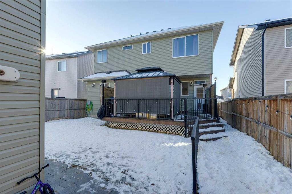 ***$24K PRICE IMPROVEMENT*** Welcome to this exceptional two-storey detached home in the highly sought-after Canals of Airdrie, offering over 2,100 sq ft of living space plus a fully self-contained carriage house(one bedroom/one bathroom/717 sq ft) above a triple car garage—perfect for multi-generational living, guests, or added flexibility. The main home features 4 bedrooms and 3 bathrooms, including a spacious main-level bedroom ideal for a home office or guest room. The entire main level is carpet-free, finished with luxury vinyl plank flooring throughout most of the home for a clean, modern feel. At the heart of the home is a gorgeous chef’s kitchen, complete with a large butcher block island, built-in oven, decorative hood fan, and stainless steel appliances—a dream setup for cooking and entertaining. The living room impresses with its beam ceiling and striking floor-to-ceiling rock fireplace wall, creating a warm and inviting space. Upstairs, retreat to the large primary bedroom (14’ x 16’) featuring a luxurious 5-piece ensuite with double sinks, a walk-in shower with bench, jacuzzi tub, and a spacious walk-in closet. The secondary bedrooms are all generously sized, making this home ideal for families. The carriage house offers its own full kitchen, living room, bedroom, and bathroom, providing incredible versatility—think grandparents, adult children, or long-term guests. Recent updates include new LVP flooring, new fridge, dishwasher, washer & dryer, new toilet in the ensuite, and a new hot water tank in the main house. Located directly across the street from the Canals, you’ll love the scenic pathways and water views, with Ralph McCall School (K–4) and C.W. Perry Middle School (5–8) nearby. Enjoy the convenience of being just a short drive to Tim Hortons, Sobeys, and other everyday amenities.