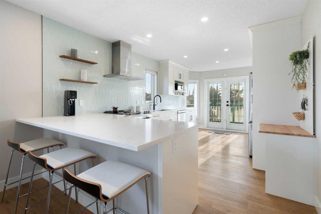 Beautifully renovated 3+1 bedroom bi-level offering 1,990 sq ft of stylish, thoughtfully updated living space — and far from a typical floor plan. Air Conditioning. From the moment you step inside, you’re greeted by soaring ceilings and impressive 12-foot windows that flood the Great Room with natural light. The open-concept design creates a spacious, airy feel with excellent flexibility for furniture placement and entertaining. The chef-inspired kitchen is both functional and eye-catching, featuring a large quartz peninsula, abundant prep space, stainless steel appliances, a chimney-style hood fan, white soft-close cabinetry, a built-in desk area, and a pantry to complete the space. Double window/door to the sunny south-facing back deck — perfect for summer BBQs and relaxing outdoors. The primary suite includes a walk-in closet and a private 3-piece ensuite. Two additional well-sized bedrooms and a 4-piece main bathroom complete the main level. Designer-selected colors and durable neutral vinyl plank flooring add warmth and cohesion throughout most of the main level. The thoughtfully developed lower level offers a large, spacious family room with a cozy gas fireplace, a fourth bedroom, an additional 3-piece bathroom, (laundry area unfinished), and a generous crawl space for extra storage. Outside, the large south-facing backyard features an oversized 22’ x 24’ garage (exterior measurement) and plenty of grassy space for kids, pets, or gardening. Prime Location on quiet street, great corner lot. Move in and enjoy!