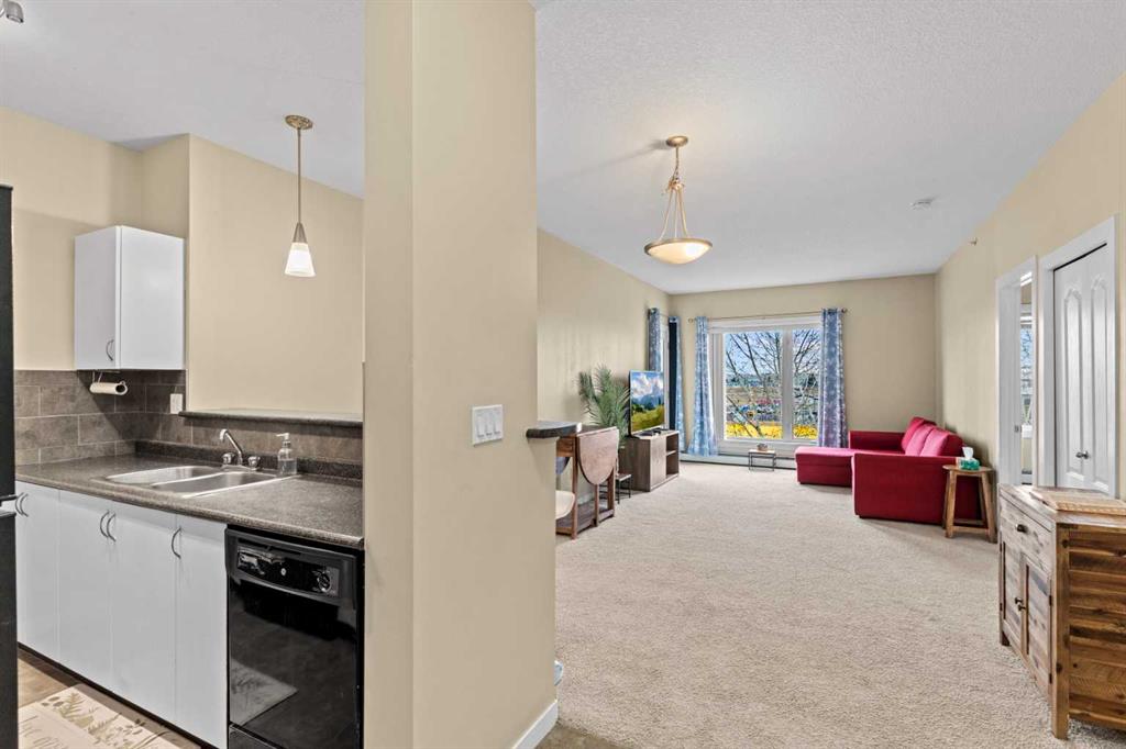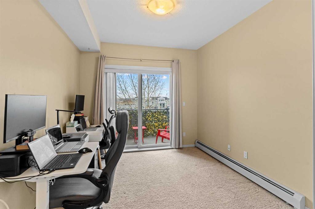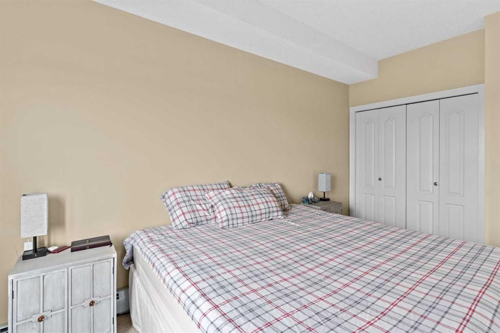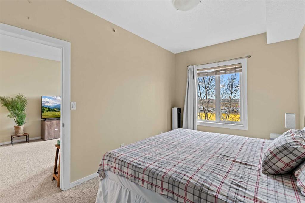 The calm, the light, the sense of space. This is top-floor living done right. Sunlight pours through large west-facing windows, highlighting an open floor plan that’s all about comfort. The kitchen anchors the space with a large eating bar, perfect for morning coffee or catching up with friends over dinner. From here, the layout opens seamlessly to the living area — bright, inviting, and surrounded by mature trees that give a sense of privacy rarely found in condo living. Step out onto your private balcony and take in the uninterrupted west-facing mountain views — your own little escape from the city below. This home offers two generous bedrooms, two full bathrooms, and a flexible den ideal for a home office, guest room, reading nook, or creative space. The primary suite features a walk-through closet and a private ensuite, while in-suite laundry keeps life simple and efficient. You'll love the details that make everyday living easier — titled heated underground parking, bike storage, a welcoming lobby, and plenty of visitor parking for guests. And then there’s the location: steps from the Genesis Centre, East Lake’s scenic walking paths, greenspace, and sports fields. You’re minutes from shopping, dining, schools, and yes — a Tim Hortons right across the street. With direct access to Highway 2 and public transit nearby, this home keeps you connected to Calgary while offering the comfort of a quiet, established community.