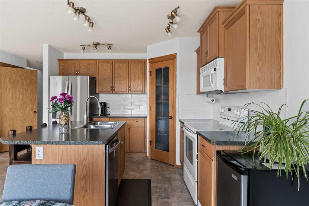 ** OPEN HOUSE SATURDAY, JAN 31 12:00-2:00 PM & SUNDAY FEB 1 12:00-2:00 PM** Welcome to 170 Sagewood Landing SW! This fully developed WALKOUT offers nearly 2,300 sq. ft. of living space on an impressive 5,124 sq. ft. pie lot at the end of a quiet cul-de-sac. With a sunny SE-facing backyard backing onto the pond and pathway system, there are no rear neighbours — just space, views, and direct access to the outdoors. As you enter, an open-to-above foyer sets the tone for the bright and open main floor. Large picture windows along the back of the home flood the space with natural light and frame tranquil views of the pond. The kitchen features newer S/S fridge and dishwasher, updated tile backsplash, great cabinet storage, a generous pantry, and an island that comfortably seats three — perfect for busy school mornings and weekend baking. Adjacent to the kitchen is a cozy dining nook, and a spacious living room. A main floor office adds versatility for working from home or can easily serve as a playroom or an additional bedroom. A convenient 2-pc bath completes the level. Upstairs, new luxury vinyl plank flooring leads you to a grand primary bedroom with a walk-in closet and a 3-piece ensuite with a large soaker tub. Two additional bedrooms and a full 4-pc bath finish out the upper level. The fully developed walkout basement level has 9' ceilings with large windows that offer great views of the expansive backyard and pond. The recreation/games room comes with a gas fireplace to keep you cozy during those winter months! You will also find an additional 3-piece bath, laundry room, and storage. Outside, the backyard is truly an extension of your living space. With room to run and play, plant a garden, add a hot tub, or simply soak in the views, the opportunities are endless! The double attached garage is fully insulated, drywalled, and painted with built-in shelving, and the additional storage shed is perfect for keeping your seasonal items stored. Families will love this location — tucked away on a private street yet close to multiple schools, playgrounds, athletic parks, golf, shops, and restaurants. Notable updates include roof (approx. 12 years old), hot water tank (Dec 2023), water softener (Mar 2023), cabinet hardware, lighting, and custom wooden closet shelving/organizers. A home that gives you space, lifestyle, and room to grow — welcome home!