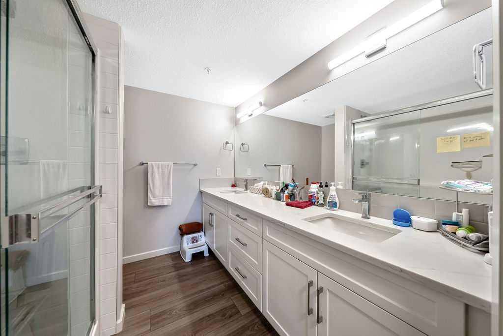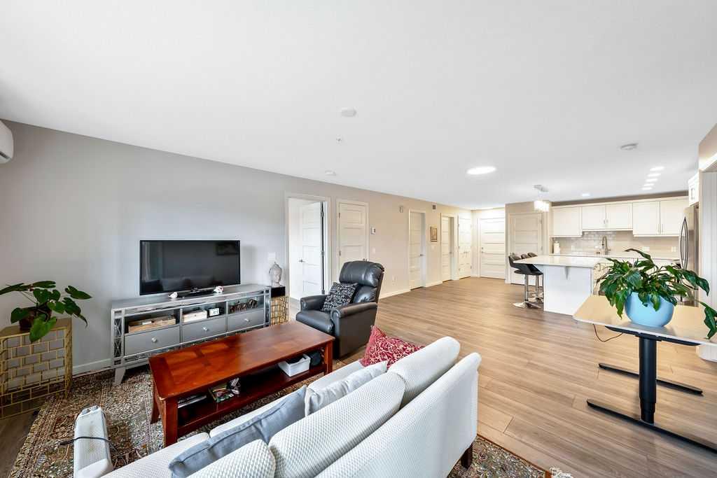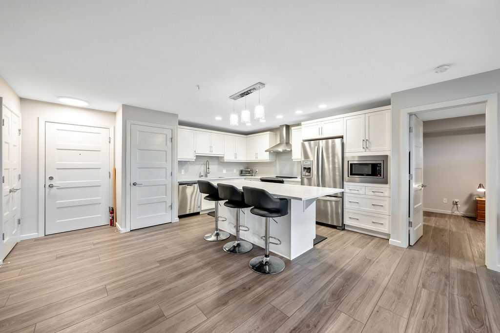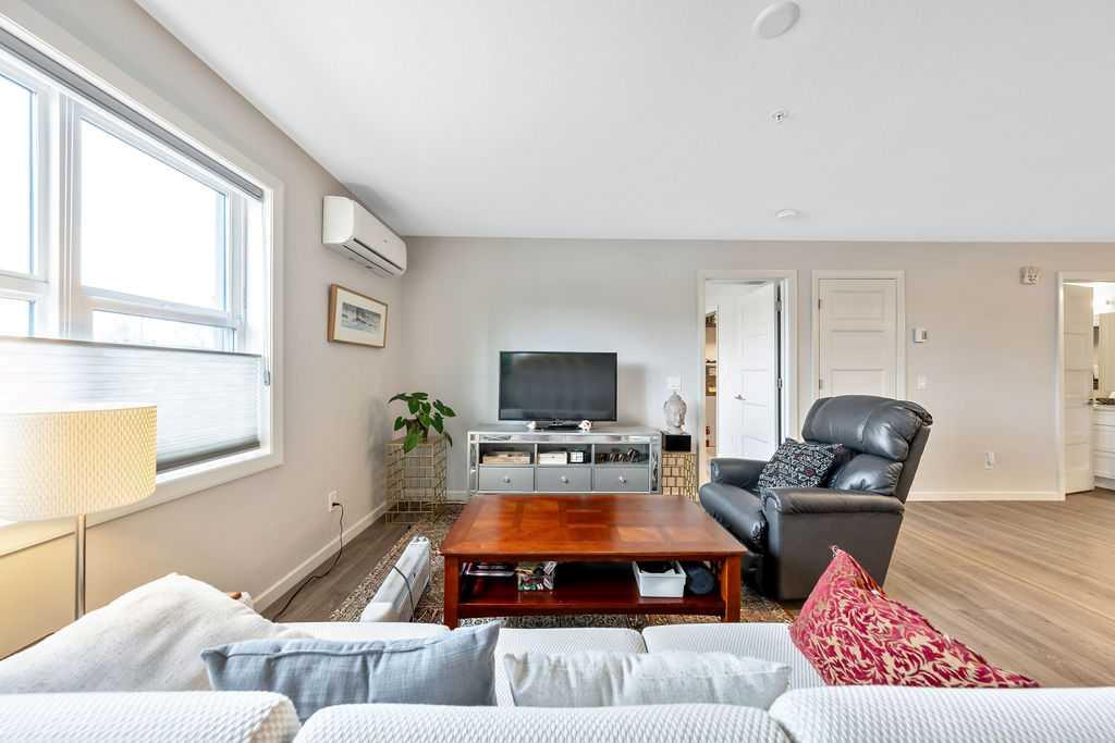 Welcome to Spacious, just like new Condo in a Quiet 55+ Community in the Chateaux. One of Airdries most desirable 55+ condo building. If you’ve been looking for a condo that doesn’t feel like a condo… this is it. This bright and beautifully maintained unit offers an open, layout with large windows. Designed with both comfort and functionality in mind, there’s room here to live, host, and truly enjoy your space. The kitchen is the heart of the home, featuring quartz countertops, upgraded appliances, a built-in microwave, plenty of drawer space, and a pantry. It opens seamlessly into a generous dining and living area, making it perfect for entertaining. Whether it’s a quiet evening or a full house, there’s space for everyone here… and your guests can easily spill out onto the patio with a natural gas BBQ hookup. This well-designed layout includes 2 bedrooms, 2 full bathrooms, and a versatile den that works perfectly as a home office, reading space, or extra storage. The primary bedroom offers a private 4-piece ensuite, while the second bedroom is ideally situated next to another full bathroom, giving guests their own comfortable space. You’ll also appreciate in-suite laundry, air conditioning for the summer, and in-floor heating… comfort in every season. The main floor is excellent for unloading groceries or getting your pet outside when nature calls. Parking and storage are taken care of with a heated underground titled stall and a storage locker, plus the added bonus of convenient access to nearby exterior parking, making grocery runs quick and easy. Located in a quiet, well-managed 55+ building, this complex is known for its strong sense of community and pride of ownership. You’re within walking distance to grocery stores, coffee shops, restaurants, medical services, walking paths, and an off-leash dog park. This is easy living… in a space that still gives you room to breathe.