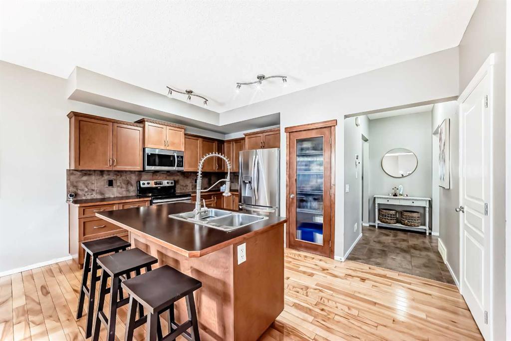 Welcome to the desirable community of Sagewood! This charming and well-kept home offers over 1,550 sq. ft. of developed living space and combines comfort, style, and practicality — perfect for growing families. The main floor welcomes you with a large entry and mudroom off the double attached garage, leading into a bright and spacious living room complete with a cozy fireplace — ideal for relaxing or entertaining guests. The kitchen features ample cupboard space, laminate countertops, and a great layout for everyday cooking. A 2-piece powder room completes this level. Upstairs, discover three generous bedrooms, including a primary bedroom with a 4-piece ensuite bathroom and an additional 4-piece bath for family or guests. Step outside to enjoy the finished back deck, perfect for summer BBQs, surrounded by low-maintenance landscaping in both the front and backyard. The partially finished basement has large windows and offers excellent potential for the new owner to personalize. Additional updates include a new roof (2021) and a new furnace (January 2023). Situated in a quiet, family-friendly community, this home is close to schools, parks, shopping, and public transit. A wonderful opportunity to own a beautiful family home in Sagewood — book your showing today!