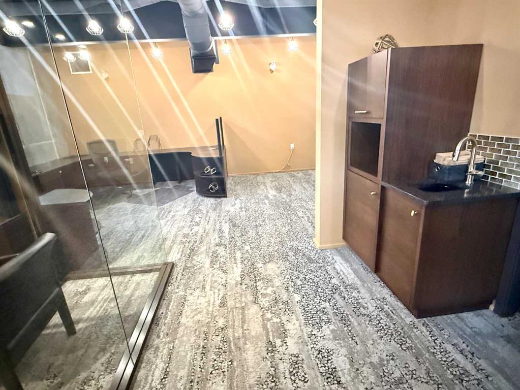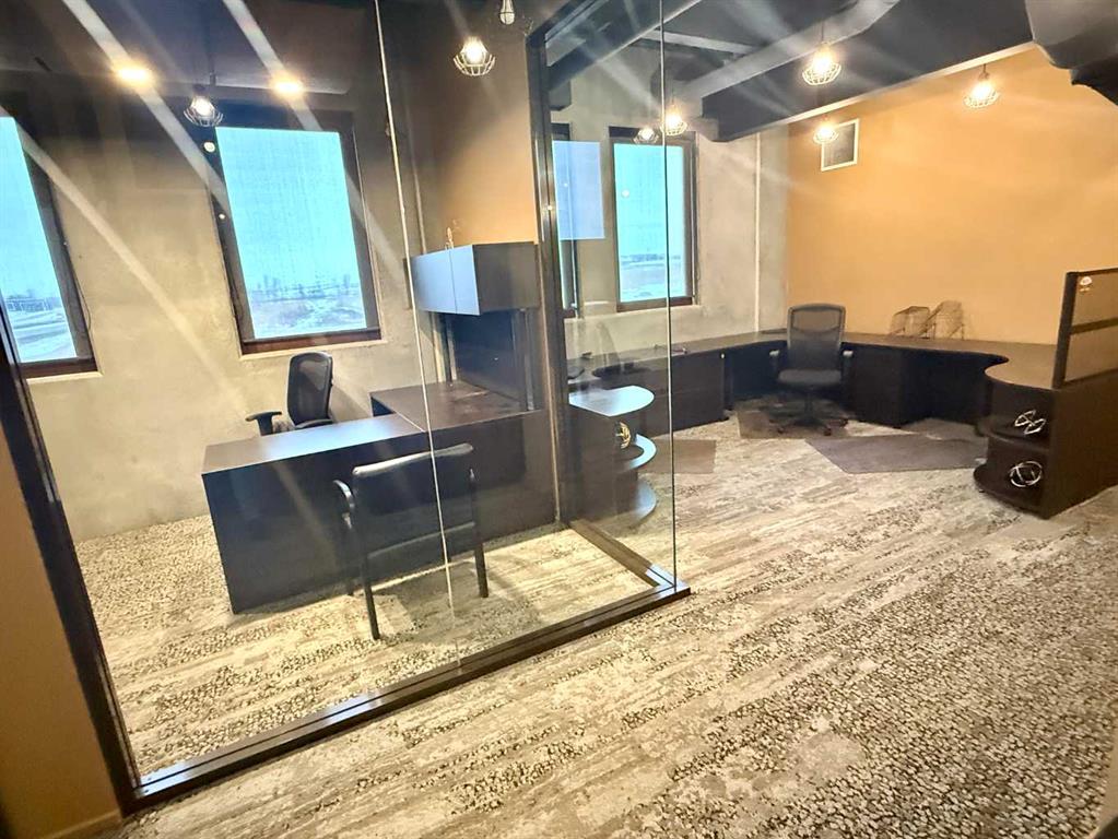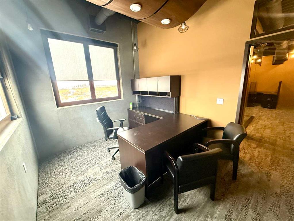 STUNNING OFFICE SPACE FOR LEASE! Featuring Ultra-High end finishes, Glass walls, granite counters, built-in ice machine & more. Featuring Exposure along QE2 and situated on the second floor of the Wood Group Business Centre, this 1111 SQ FT 2-office, boardroom, private bath and spacious reception area screams "Take me now!" Impress your clients and suppliers alike, with award-winning finishes throughout. Make it fun to go to the office, in this efficient CONCRETE BUILDING, with Front and rear parking with a paved lot. Office 1: 9'10"x11", Office 2: 9'10"x12", Boardroom: 11'9"x15'8", Open Office: 25'x9'. Storage mezzanine at the back for file storage. get into this space temporary or on a long term basis with lease rates starting at $16.00/PSF plus NNN costs of $5.00/PSF (includes everything except internet/ phones)