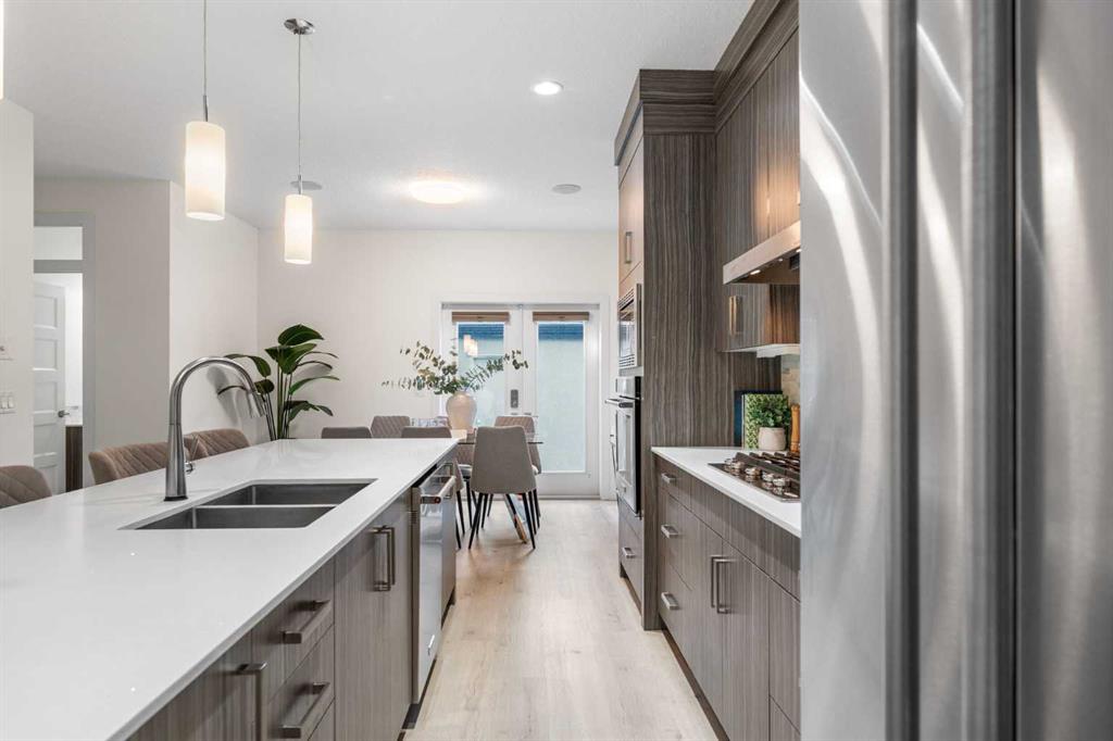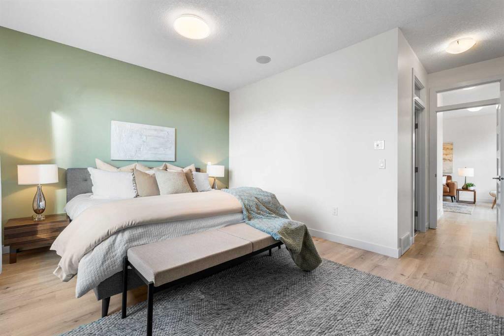 Welcome to this fully upgraded townhouse in Crescent Heights offering 4 bedrooms, 4.5 bathrooms, and over 2,600 SQFT of developed living space. This duplex-size townhouse provides ample living space with the benefit of low maintenance living. As you step inside you are greeted with 9ft ceilings on every level, NEW luxury vinyl plank flooring, and a thoughtful open-concept layout. The main floor showcases a stylish living room with custom wall moulding, a cozy gas fireplace, and a dining room that is great for entertaining. The gourmet chef’s kitchen features floor-to-ceiling cabinetry, sleek quartz countertops, GAS range, built-in stainless steel appliances, large pantry, NEW designer backsplash, and an oversized island. A powder room completes this level. Upstairs, you’ll find two large bedrooms, including one with its own ensuite, PLUS a second full bathroom. The spacious laundry room features a folding station, a sink, and ample storage, all conveniently located on this floor. The entire top level is dedicated to the PRIVATE primary suite, complete with a spacious bedroom, modern accent wall, massive walk-in closet, a luxurious 6pc ensuite with HEATED floors, PLUS a cozy lounge/bonus area with partial CITY SKYLINE VIEWS from your SOUTH and WEST windows. Built-in ceiling speaker throughout. The FULLY FINISHED basement features another bedroom, full 4pc bathroom, rec room, and storage. This property is TURN KEY. Additional upgrades include: Upgraded attic insulation, electronic locks on both front and back doors, new fan timers in bathrooms, AC & furnace servicing with duct cleaning. Added peace of mind with a complete building envelope overhaul. Outside, enjoy your private deck and single detached garage. Low condo fees of only $300/month make this home even more attractive. Nestled on a quiet, tree-lined street, with easy access the Bow River Pathway, Rotary Park, Crescent Heights Park, and the iconic McHugh Bluff lookout. With nearby schools, transit, coffee shops, and trendy restaurants, you’ll have everything you need just steps from your door.
