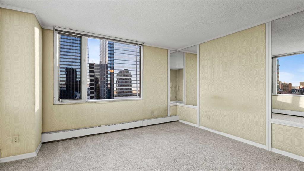 Experience refined urban living at EAU CLAIRE ESTATES, one of Calgary’s most prestigious luxury addresses. This exclusive, impeccably maintained building offers an ELEVATED LIFESTYLE with 24-hour concierge service, on-site management, a beautifully RENOVATED LOBBY, and lush, landscaped courtyards. Residents enjoy premium amenities including a private outdoor PUTTING GREEN, fully equipped FITNESS CENTRE, INDOOR SWIMMING pool, hot tub with change rooms, secure bike storage, and the rare convenience of an underground CAR WASH bay. With only two residences per floor, privacy and tranquility are paramount. This expansive 1,756 SQ.FT. two-bedroom, two-bathroom residence is perched on the 10th floor and showcases sweeping, UNOBSTRUCTED VIEWS through wall-to-wall windows—an outlook you’ll never grow tired of. The home offers a versatile, open layout and presents a fantastic opportunity to personalize the space and create a custom luxury retreat tailored to your style. Perfectly positioned just steps from the BOW RIVER, Prince’s Island Park, and Calgary’s extensive river pathway system, this location seamlessly blends nature with downtown convenience. Enjoy easy access to shopping, the Plus-15 network, and a short stroll to the iconic Peace Bridge, connecting you to Kensington’s vibrant cafés, boutiques, and dining scene. A rare opportunity to design your dream home in one of Calgary’s most sought-after luxury buildings — this is Eau Claire living at its finest.