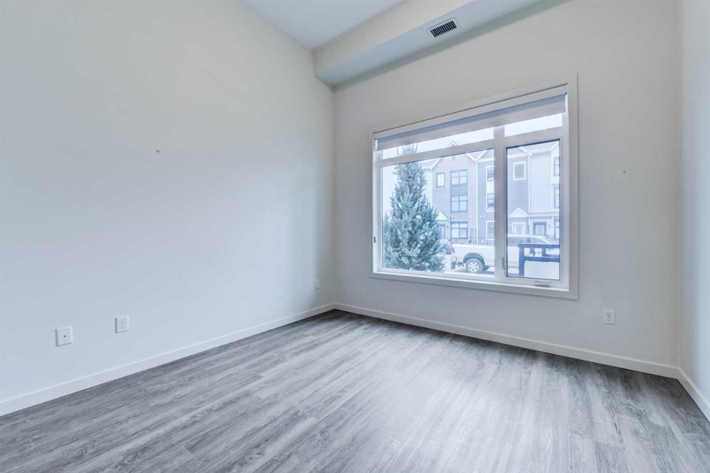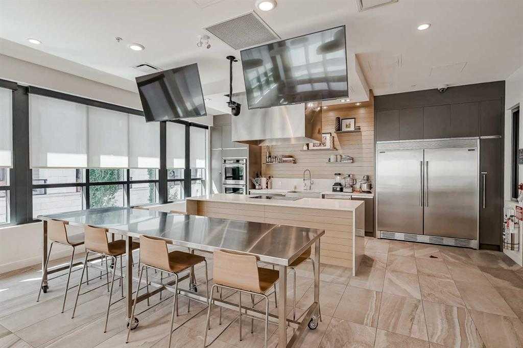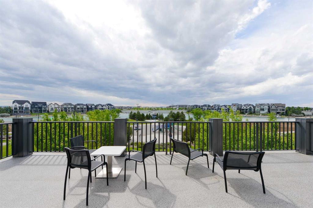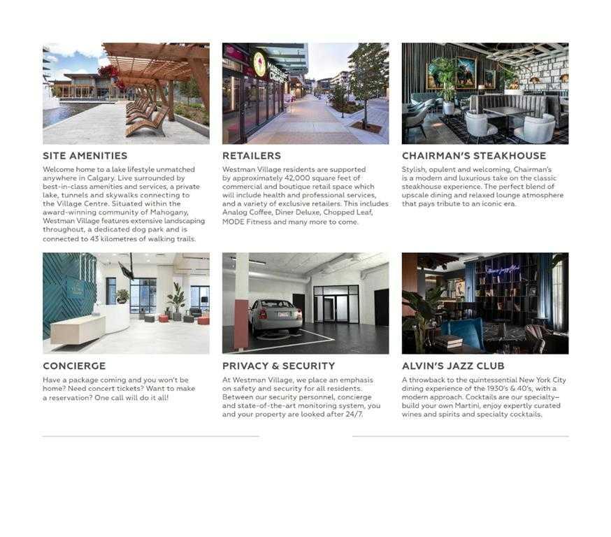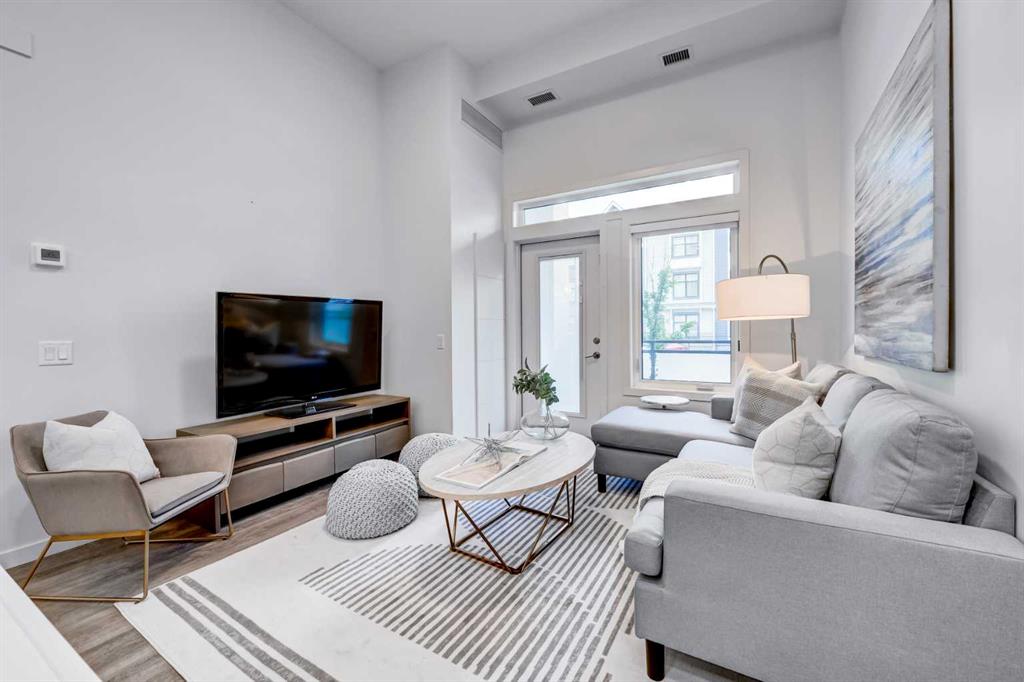 Discover the ultimate resort-style living in Westman Village, Calgary’s most sought-after lakeside community. Nestled in the exclusive 55+ building, this south-facing, nearly 1,000 sq. ft. ground floor home offers 2 bedrooms, 2 bathrooms, 2 TITLED parking stalls, soaring 12-foot ceilings, and a private exterior door for easy access for visitors or dog walks. This home offers an elevated lifestyle for those looking to downsize without compromise. The unit and building are wheelchair accessible with wide hallways & doorways. From the moment you enter this sun-soaked home, the soaring ceilings and bright, modern finishes create a warm and inviting atmosphere. The open-concept kitchen is beautifully designed with sleek cabinetry, quartz countertops, and high-end finishes, making it as functional as it is elegant. The spacious living and dining areas are ideal for entertaining or quiet evenings at home. The spacious primary bedroom can easily fit a king-sized bed. The large primary ensuite features a large walk-in shower and modern finishes, and the double closets offer ample storage. The second bedroom and bathroom are on the opposite side of the unit and provide the option for a den, media room or office space. A true standout feature of this home is the massive outdoor patio that offers 232 feet of additional living space and direct access for your visitors. For added convenience, this unit includes two storage spaces, one in the parking stall and a 6x6 storage unit with easy elevator access. The 40,000 sq. ft. Village Centre is connected via a +15, 2nd-floor indoor walkway with a party/social room, a billiards room, a fully equipped wood working shop, an art room, a golf simulator, a theatre, a fitness center, and more. The Village Centre includes Concierge services (7am to 11pm) and 24/7 security. If you're looking for a welcoming, low-maintenance, & upscale place to call home, this is your chance to experience the best in 55+ living!