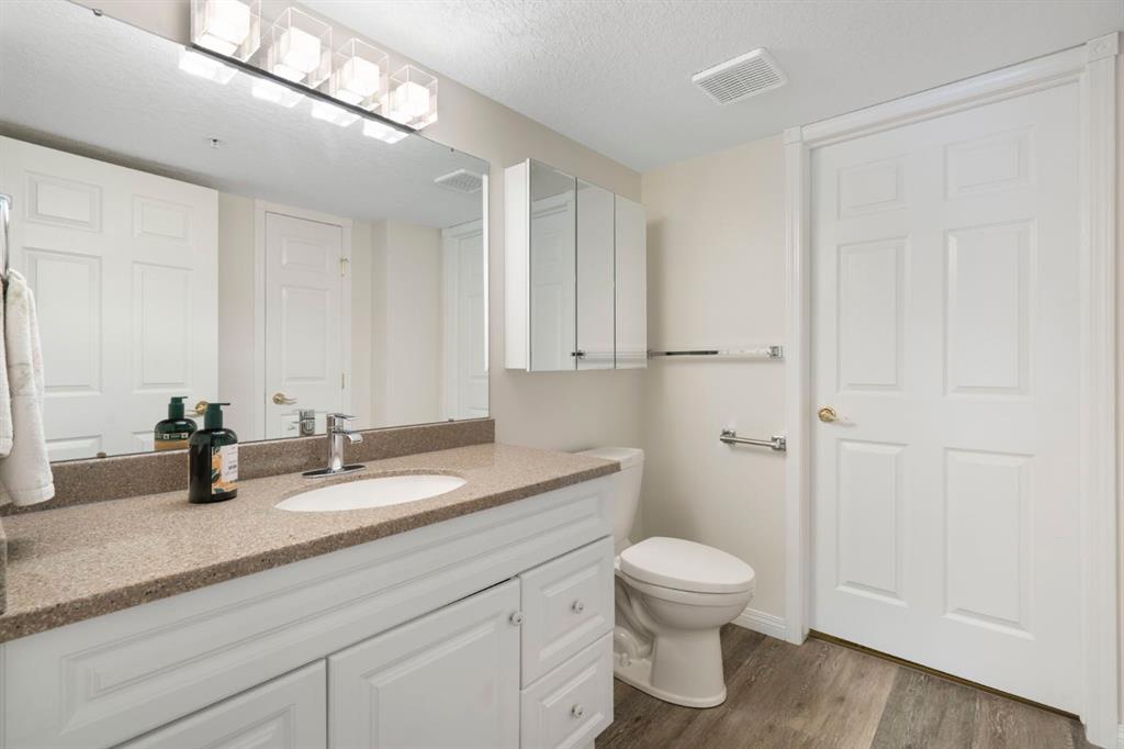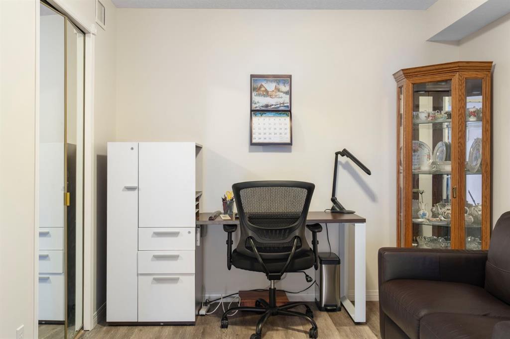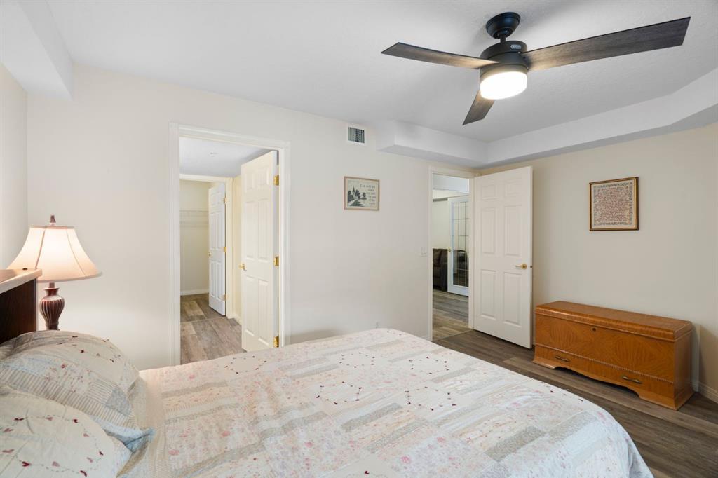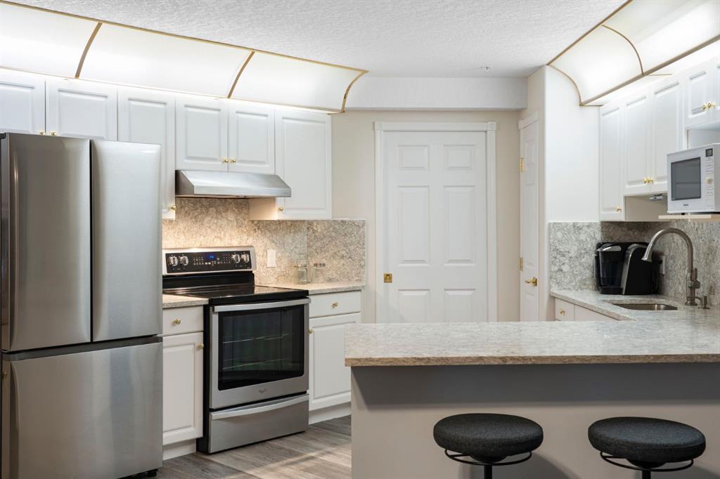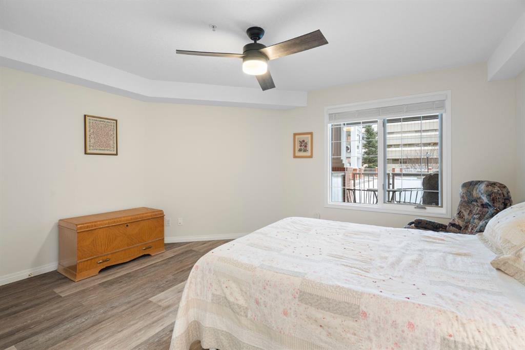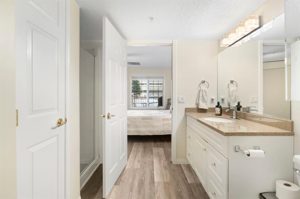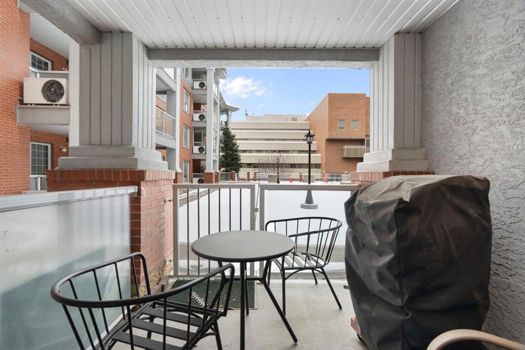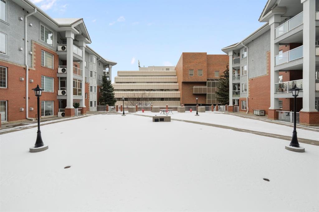 Located in one of the most desirable 55+ complexes the south has to offer, this amenities-loaded building provides a unique lifestyle that you'll be sure to enjoy... welcome to Sierra's of Heritage. This unit offers 2 bedrooms, 2 bathrooms, 2 parking stalls, an out-of-unit storage locker, a full-sized kitchen, direct access to the west-facing courtyard, and upgrades throughout! This complex conveniently INCLUDES ALL UTILITIES in the condo fee as well as the cost of all your luxurious amenities. At the entrance, you're welcomed with updated paint (2024) on the walls, ceiling, baseboards, and trim, vinyl flooring, a front closet, and a spacious open-floor concept. The large kitchen has been upgraded with newer appliances (2024) and newer quartz countertops with a matching quartz backsplash (2024). With plenty of cabinetry and a generous pantry, you'll be able to bring all your cooking appliances with you for this transition. Some of the cabinets have also been upgraded with roll-out drawers for easy access and convenience. Walking through your large pantry, you have an additional stand-up freezer and access to your laundry room with a side-by-side washer/dryer. Off the kitchen, you have a dining space that's open to your living room, featuring a gas fireplace and access to your ground-floor patio that has direct access to the west-facing courtyard! With this ground-floor unit, you no longer need to trade your backyard for a balcony; this unit provides the luxury of an outdoor living space that you can walk right onto and enjoy.Off the living space, you have the multi-purpose secondary bedroom or den/office, featuring french doors and a closet. Nearby, you also have an updated 4-piece bathroom and linen closet. The primary bedroom features a west-facing window, enough room for a king-sized bed, and a 4-piece ensuite with a proper walk-in closet. Both toilets have been upgraded to chair height. This unit eliminates the need to compromise. Offering a full-size kitchen, pantry, proper laundry room, courtyard access, and 1,160 sq/ft of living space, this is a great place to call home. The building amenities include a pool, hot tub, gym, library, craft room, theatre room, pool tables, poker table, dart board, car wash, bike storage, and an amazing woodshop.