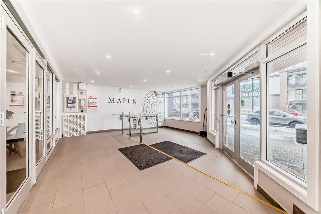 Welcome to this bright, ground-floor 1 bedroom condo in the Maple, a 55+ community in Calgary’s University District. Offering 537 ft² of open-concept living, the home features 9-foot ceilings, durable vinyl plank flooring, and large triple-pane windows that bring in abundant natural light. The kitchen includes quartz countertops, stainless steel appliances, and a central island providing additional workspace. The living area opens directly to a south-facing patio, offering easy outdoor access without reliance on elevators. The bedroom is complemented by a modern 3-piece bathroom, in-suite laundry, and barrier-free accessibility throughout. Parking is included with a titled stall in the underground heated parkade. Residents can enjoy access to Cambridge Manor, which offers optional dining, fitness facilities, salon services, social programming, and priority access to higher levels of care. Steps from shopping, transit, the University of Calgary, Foothills Hospital, and the growing amenities of University District, this home offers independent living with valuable support options close at hand.
