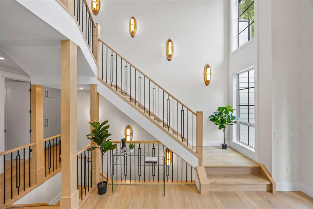 Brand-New 4900+ Sq Ft Custom Build in Varsity—Facing Green Space, Backing Treelined Pathways, and Built to the Highest Standards. This is the home Varsity has been waiting for — a fresh, full-scale luxury build on a flat, pie-shaped lot that faces onto open green space and backs directly onto the treelined pathway system. With over 4,900 sq ft, this home offers the perfect balance of thoughtful design, uncompromising finishes, and unbeatable location. From the moment you walk in, you feel the volume and elegance: 9’ ceilings on all three levels, wide-plank engineered hardwood floors, clean lines, custom feature walls, and natural light pouring in from oversized windows. The layout is ideal for family living, featuring 5 bedrooms (including 2 stunning primary suites), 4.5 spa-style bathrooms with heated floors, a private main-floor office, and an open-concept living/dining area built for entertaining. The heart of the home is the kitchen: JennAir appliances, a massive island, custom cabinetry, and direct access to a large deck and professionally landscaped backyard. Upstairs, a serene primary retreat features a steam shower, walk-in closet, and upper laundry. The fully finished lower level includes a home theatre, wet bar, bedroom + bath, and a second laundry room. Luxury features include: 200-amp electrical service, central A/C, built-in speakers, security camera system, heated double garage with epoxy floors and EV charger, irrigation system, and a fully fenced yard. Every detail was chosen for comfort, performance, and long-term living. Located in the heart of Varsity Village, you're steps from schools of all levels, the University of Calgary, and the shops and cafes of University District. Homes like this rarely come available—especially brand new and on a lot like this. Book your private tour today and experience the finest new construction Varsity has to offer.