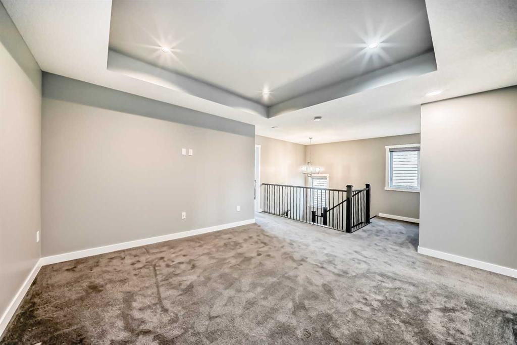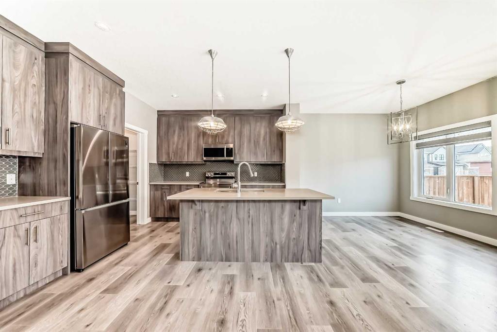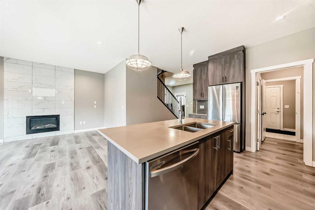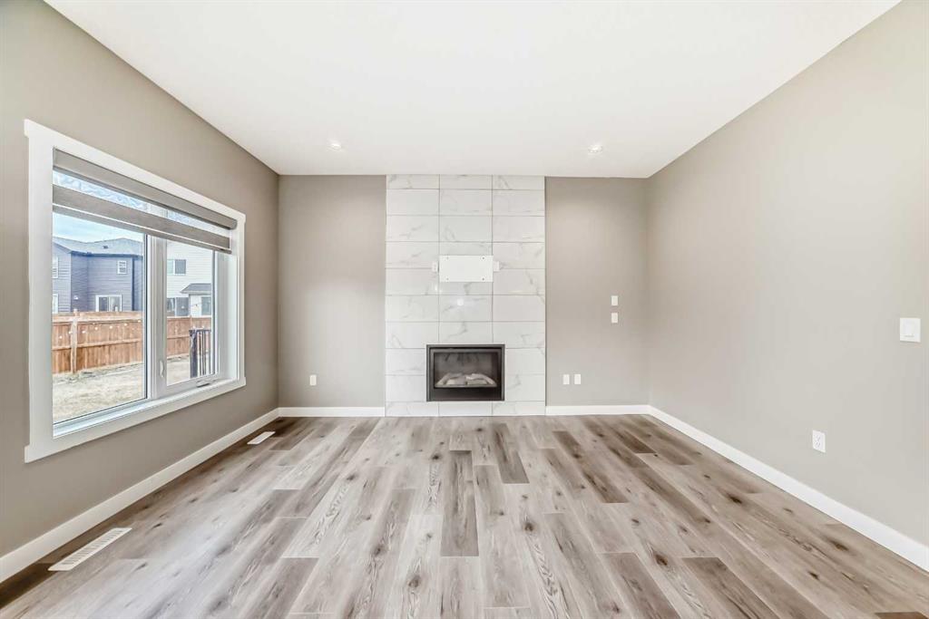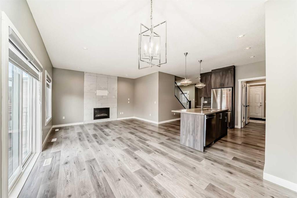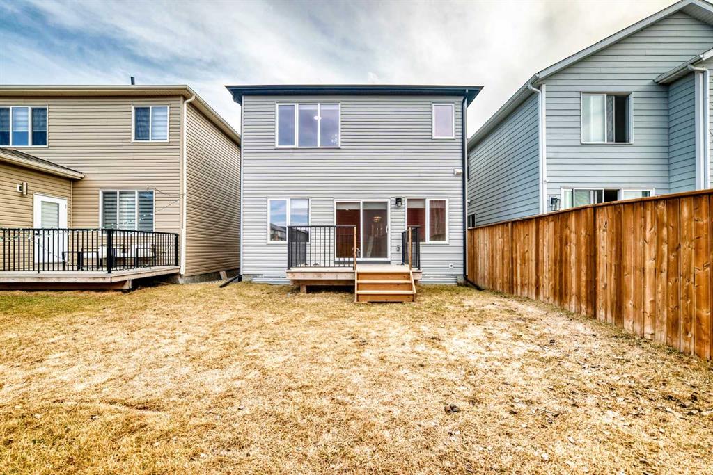 BETTER THAN NEW! Welcome to this beautiful 2-story detached home with 3 bedrooms and 2.5 baths in desirable Legacy SE Calgary. FRESH NEW PAINT throughout! PREMIUM HARDIE BOARD SIDING ON FRONT EXTERIOR. This home features many upgrades including high ceilings, LVP flooring, upgraded lighting, window blinds and quartz countertops throughout. . Entrance way is welcoming with tiled front entry with a bench and 9ft ceilings on the main floor. The main floor consists of a powder room, mudroom with closet and shelves, a WALK THROUGH PANTRY with ample storage space leading to the kitchen. The stunning kitchen entails full height kitchen cabinets, stainless-steel appliances, quartz countertops, full tile backsplash, and an island for additional seating. The living room has a decorative TILED GAS fireplace and open concept living and dining complete the main floor. The stairs leading to second floor consist of an upgraded BLACK SPINDLE RAILING giving it an open feel. Upstairs is a large bonus room with beautiful TRAY ceiling. The Primary bedroom is set aside from the 2 other bedrooms and also beautifully designed with Tray ceiling and an elegant 5 pc bathroom with private toilet, upgraded dual vanities, a soaker tub, stand-up glass tiled shower, and a walk-in closet with plenty of space! The upper floor also provides for two more south facing sun filled spacious bedrooms, a laundry room with Samsung washer/dryer, linen closet for storage and a full 3-pce bathroom. The unfinished basement is ready for your future development and has a ready made SEPERATE SIDE ENTRANCE. In the spacious yard , you’ll find a 10x 8 DECK ready for your summer bbq get- togethers and 3 sided fence. Legacy is a well located, family friendly neighborhood close to several amenities including bus stop & childrens play park half a block away, Shops, grocery stores, banks, main highway, hospital etc. Book your showing today with your favorite realtor. You’ll love it!