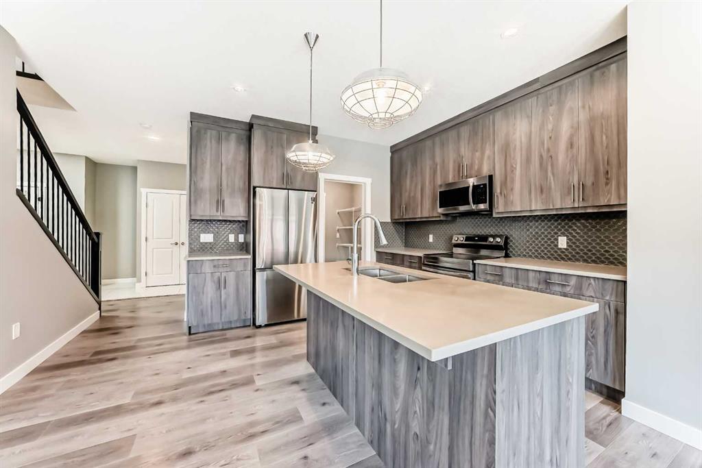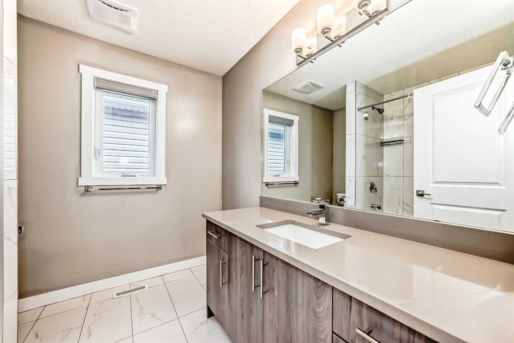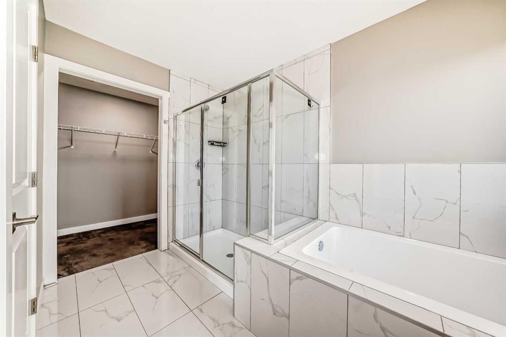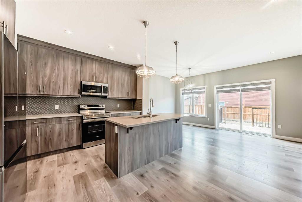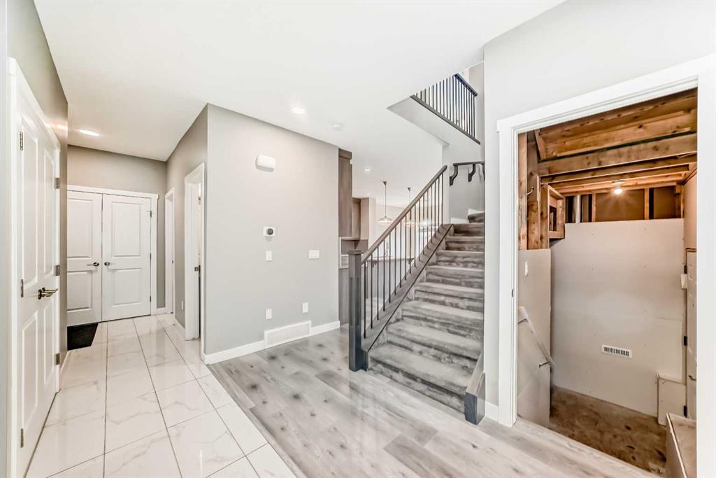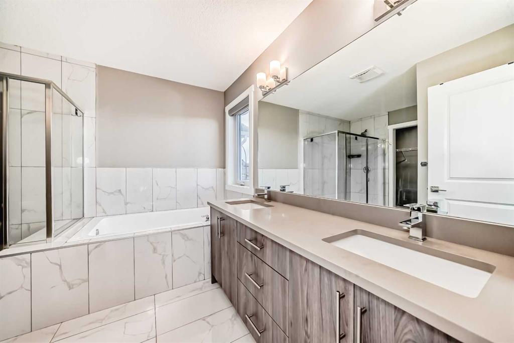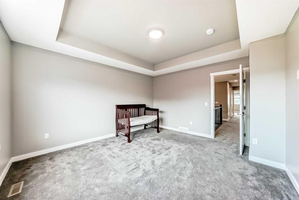 BETTER THAN NEW! Welcome to this beautiful 2-story detached home with 3 bedrooms and 2.5 baths in desirable Legacy SE Calgary. FRESH NEW PAINT throughout! PREMIUM HARDIE BOARD SIDING ON FRONT EXTERIOR. This home features many upgrades including high ceilings, LVP flooring, upgraded lighting, window blinds and quartz countertops throughout. . Entrance way is welcoming with tiled front entry with a bench and 9ft ceilings on the main floor. The main floor consists of a powder room, mudroom with closet and shelves, a WALK THROUGH PANTRY with ample storage space leading to the kitchen. The stunning kitchen entails full height kitchen cabinets, stainless-steel appliances, quartz countertops, full tile backsplash, and an island for additional seating. The living room has a decorative TILED GAS fireplace and open concept living and dining complete the main floor. The stairs leading to second floor consist of an upgraded BLACK SPINDLE RAILING giving it an open feel. Upstairs is a large bonus room with beautiful TRAY ceiling. The Primary bedroom is set aside from the 2 other bedrooms and also beautifully designed with Tray ceiling and an elegant 5 pc bathroom with private toilet, upgraded dual vanities, a soaker tub, stand-up glass tiled shower, and a walk-in closet with plenty of space! The upper floor also provides for two more south facing sun filled spacious bedrooms, a laundry room with Samsung washer/dryer, linen closet for storage and a full 3-pce bathroom. The unfinished basement is ready for your future development and has a ready made SEPERATE SIDE ENTRANCE. In the spacious yard , you’ll find a 10x 8 DECK ready for your summer bbq get- togethers and 3 sided fence. Legacy is a well located, family friendly neighborhood close to several amenities including bus stop & childrens play park half a block away, Shops, grocery stores, banks, main highway, hospital etc. Book your showing today with your favorite realtor. You’ll love it!
