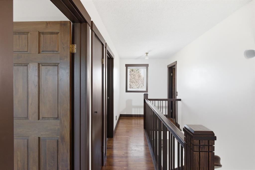 A thoughtfully, well-designed two-storey home with numerous improvements and upgrades is now available in the very desirable SE community of Bonavista Downs. This is a unique home in that it features two garages. The first is a front-facing, single (21’x12’), attached, insulated and heated garage with upgraded wiring, and finished interior which includes shelving. The front rubber-paved driveway offers additional parking. The second is an oversized double (25’ x 28’), heated, detached garage accessed from the paved alley, and has a finished interior which includes shelving, cabinets, and a workbench and is wired for 220 volts. Three bedrooms, 3.5 baths and 2,250 sq. ft. of living space on three levels. Upon entering the tiled foyer, the natural light flowing in from the upgraded triple pane windows on all sides is remarkable. Motorized window blinds allow you to control the light factor. The main floor is comprised of living room, dining room and kitchen and has warm hard wood floors throughout. To the left is the living room with woodburning, stone surround fireplace and enough space to experiment with various furniture configurations. The rear deck is accessed via French doors in the living room. To the right of the foyer is the dining room with ample room for entertainment and is adjacent to the kitchen. Cream cabinetry and plenty of it in the kitchen is a beautiful contrast to the dark granite countertops and tiled backsplash. Gleaming stainless appliances and a pantry add to the efficiency. A 2-pc. bath completes the main level. Moving upstairs, there is a combination of hardwood and laminate flooring. The primary bedroom is large and sunny with the benefit of a newly added walk-through closet and 4-pc. ensuite (double vanity). Two additional bedrooms, both with generous-sized closets, share a 4-pc. bath. The basement has been attractively finished and features a large, carpeted rec room with a second woodburning fireplace (both fireplaces passed WETT inspection in 2023). Across from the rec room is a tiled home office and tucked back of that is the laundry room with upgraded plumbing, venting and wiring; storage area and an upgraded 3-pc. bath. The house, attached garage and detached garage all have well-insulated (R40) attics. In 2023 the furnace was upgraded to a high-efficiency model with smart thermostat, a tankless water heater was installed and the humidifier was replaced. Both front and back yards are landscaped with lawn and mature trees. The back yard is fenced and has sprinklers installed. A bonus is your own hot tub. Well situated and close to Stoney, Deerfoot and Macleod Trails and Anderson Road. Proximity to shops and restaurants on both Macleod Trail and 130th Avenue; the Bow River; numerous schools (public and Catholic); churches; playgrounds; dog parks; Fish Creek Provincial Park and South Health Campus. This home has obviously been well tended as evidenced by the many upgrades and enhancements. Don't miss out on this outstanding opportunity.