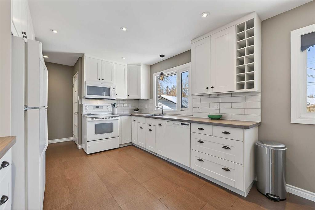 Stress-free living starts here, with a long list of major updates already taken care of. A newer (2016) roof, brand new windows, a new furnace and hot water tank, plus updated sewer and water lines means the heavy lifting of homeownership has already been done, leaving you free to focus on making the space your own. Inside, natural light pours through large south-facing windows, reflecting beautifully off the original hardwood floors and creating a warm, inviting main living space. The updated kitchen offers a modern touch, while the adjoining eating area gives you clear sightlines to the backyard, perfect for keeping an eye on kids as they play. Step outside and enjoy a quiet, family-friendly cul-de-sac where kids can safely ride bikes, explore nearby parks, or play with neighbours. The pie-shaped lot provides a spacious backyard ideal for gatherings, while the oversized single garage keeps vehicles and gear organized. Upstairs, generous bedrooms are centered around a well-appointed 4-piece bathroom, with the option to easily convert to a 5-piece layout thanks to the already upgraded shower and toilet. Downstairs, unwind in your own private retreat featuring a cozy fireplace, a large rec room for family time or workouts, and even a sauna to support your health and wellness goals. All of this within walking distance to schools, off-leash parks, and local shopping. A well-cared-for home in Southwood where the big-ticket items are done, so you can simply move in and enjoy. Don't wait, call today for your private viewing!
