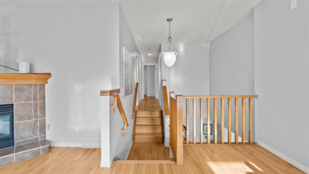 Welcome to this well-maintained 2-storey home in the family-friendly community of Coventry Hills, offering 1,815 sq ft of thoughtfully designed living space above grade and an unfinished basement ready for future development. The main level features a bright and inviting open-concept layout, ideal for both everyday living and entertaining. The kitchen is the heart of the home, complete with ample cabinetry, generous counter space, a centre island, corner pantry, and stainless steel appliances. Overlooking the living area, the kitchen flows seamlessly into the spacious living room, where a cozy gas fireplace creates a warm and welcoming focal point. Large windows throughout the main floor allow natural light to fill the space. A separate dining room provides a dedicated space for family meals and gatherings, with direct access to the back deck—perfect for summer BBQs and outdoor entertaining. The main level is completed by a convenient laundry room, powder room, and a practical layout that supports busy family life. Upstairs, the home truly shines with a large and sun-filled bonus room, offering exceptional flexibility as a media room, play space, or home office. The upper level also features three generously sized bedrooms, including the primary retreat with a walk-in closet and a private 4-piece ensuite, complete with a relaxing corner soaker tub and separate shower. Two additional bedrooms and a full bathroom provide comfortable accommodations for family or guests. The unfinished basement offers endless potential to expand your living space and customize to suit your needs, whether you envision a recreation room, additional bedrooms, or a home gym. Ideally located close to schools, parks, shopping, and major roadways, this Coventry Hills home delivers space, comfort, and future potential in a well-established north Calgary community.