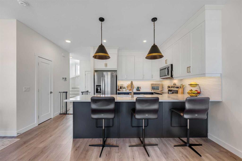 Nestled in the welcoming community of Legacy, this home is thoughtfully designed. The OPEN PLAN main floor with 9' knockdown celings and wide plank HARDWOOD FLOORS blends STYLE with FUNCTIONALITY! Just steps to the YELLOW PARK, and backing onto a GREENBELT, finds this home situated in a truly special location. Step into the spacious foyer with a handy built-in storage bench, a welcoming area to greet family and friends. A GOURMET kitchen with plenty of soft close cupboards and drawers, quartz countertops, undermount sink, under cabinet lighting, fully tiled backsplash is highlighted by a large walk-in pantry! The spacious family and dining rooms with large windows, overlooks the FENCED and LANDSCAPED backyard, opening onto a GREENBELT. A 2 piece powder room, well tucked away for privacy, and a mud room from the garage entrance completes this floor. Up the elegant extra wide staircase (easier to move furniture in and out), you will be greeted by the upper family room, 3 bedrooms, 2 bathrooms and a spacious laundry room with an extra large linen closet. The undeveloped basement awaits your creativity and personal taste. Upgraded LEVER DOOR HANDLES and DELTA TRINSIC series plumbing fixtures (champagne colour) throughout. All window coverings are INCLUDED. This warm and cozy 3 bedroom, 2.5 bath home with a DOUBLE ATTACHED GARAGE, CENTRAL AIR CONDITIONING and FIBRE CEMENT SIDING is waiting for you. Township Shopping Centre provides a variety of shops, restaurants and services. Quick access to South Health Campus and Fish Creek Provincial Park. This community offers extensive green spaces, playgrounds and a protected environmental reserve. CHECK OUT THE 3D VIRTUAL TOUR!