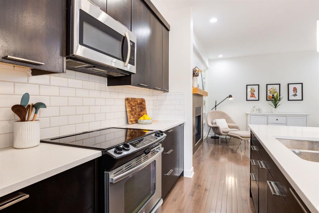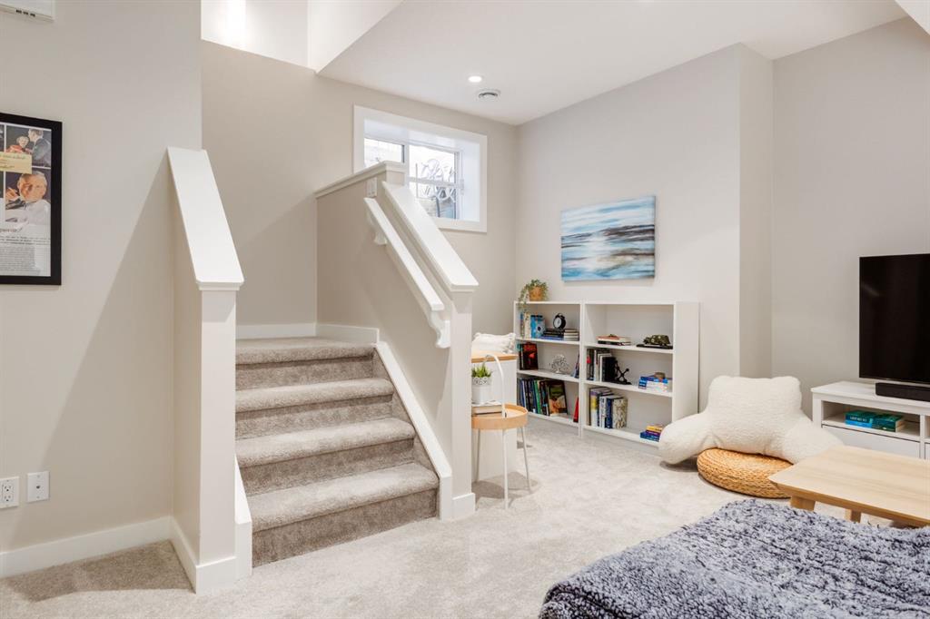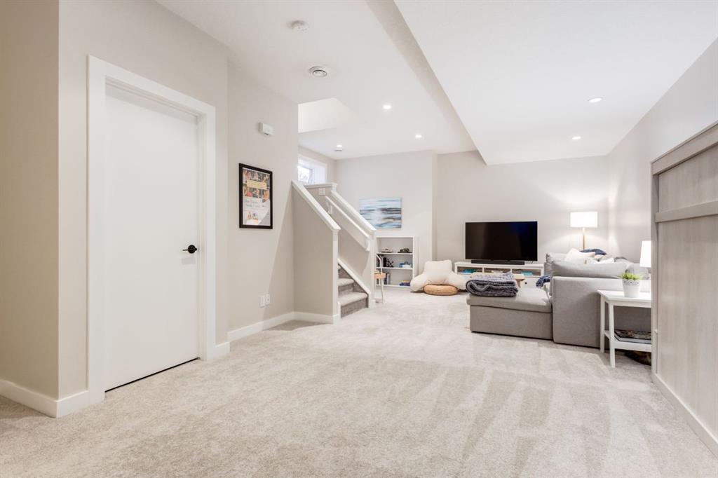 Welcome to this beautifully updated, open concept home located in highly coveted Killarney, and ideally situated across from a massive green space. Showcasing a fully enclosed west yard that boasts a sprawling patio that is drenched in sunlight for most of the day and creates the perfect place to relax and unwind with family, friends, and pets. As you enter the home, you are greeted by a bright front entryway that is flooded with natural light through your west facing windows and door. The main floor highlights include beautiful hardwood flooring and an open concept layout that is perfect for all occasions. The expansive kitchen has been upgraded to include beautiful quartz countertops, stylish pendant lighting, stainless steel appliances, a classic Subway tile backsplash, and stunning full-height cabinetry a pantry and tons of additional storage space. The living room boasts south facing transom windows, a cozy gas fireplace with stylish tile surround, a bespoke wooden mantle, and custom built-in bookshelves symmetrically flanking the fireplace. The main floor also features a designated dining space with views of the park through large, west facing windows. Upstairs features your expansive primary suite with room for king-sized furniture, park views with mature trees out your windows, and a large walk-in closet. The luxurious upstairs 5 piece bathroom has been tastefully updated to include dual vanities, tons of storage, a spacious stand-up shower, and a large separate soaker tub. The large second bedroom is located down the fall from the primary bedroom providing a thoughtful layout with excellent privacy. Downstairs features high-ceilings, a large media space, a flex space for an additional office, a Murphy bed and full bathroom for your guests, and ample storage. This home truly has everything you need to enjoy a vibrant inner-city lifestyle and comes complete with a single detached garage. Situated across from a green space and the Killarney Aquatic Centre, this home provides incredible access to public transit, all the amenities you need and affords a quick commute downtown, to the mountains, to 17th AVE, Killarney off-leash dog park and more.